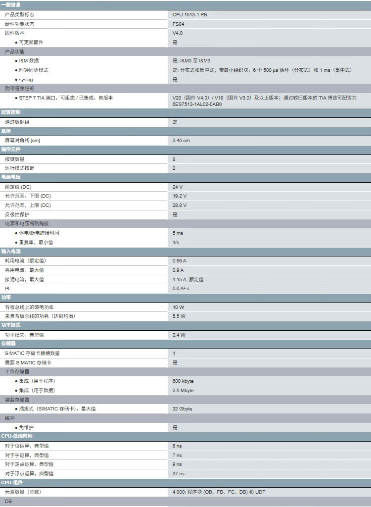 Siemens PLC programmable controller SMARTIC S7-1500 CPU 1513-1 PN, central processing unit 6ES7513-1AM03-0AB0