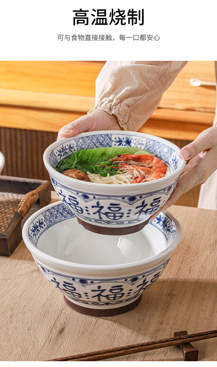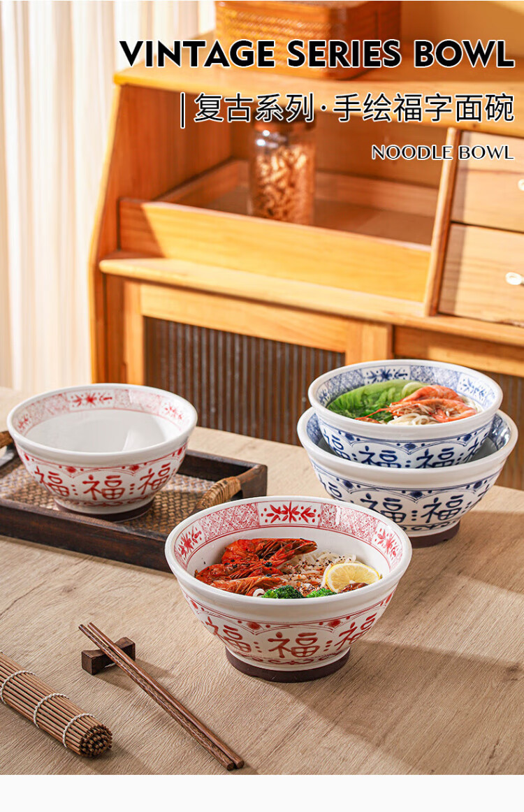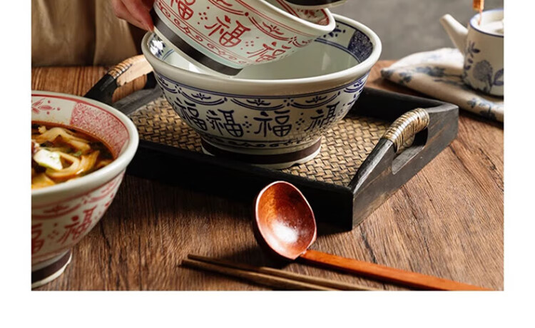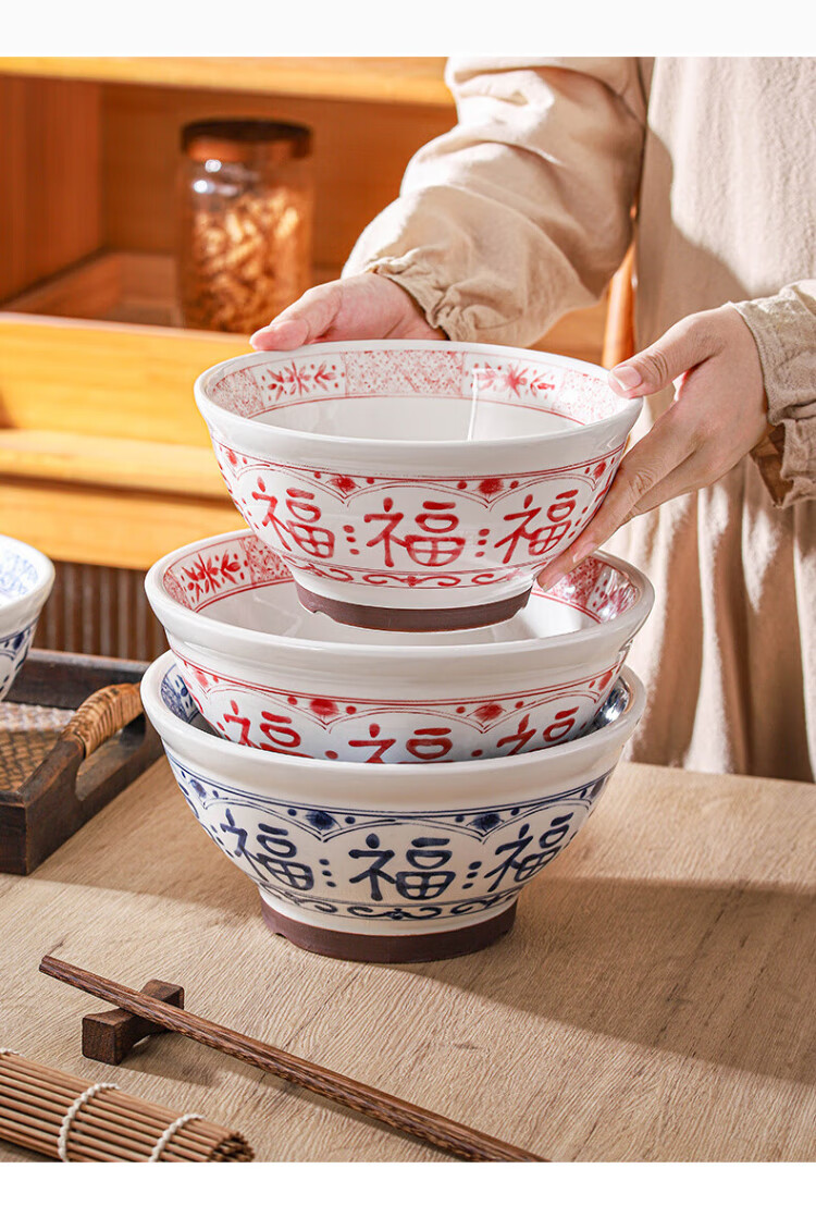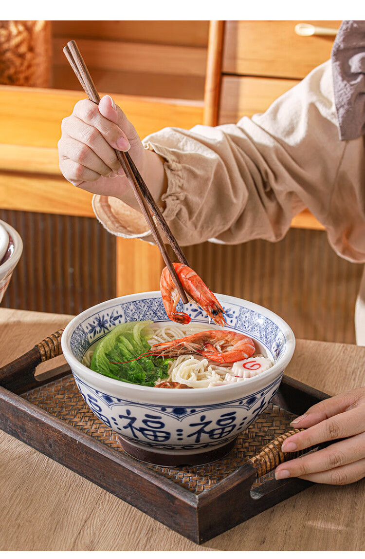 Dining general large bowl noodle bowl household underglaze color anti-scalding ramen bowl bamboo hat bowl Japanese instant noodle bowl new tableware soup basin
