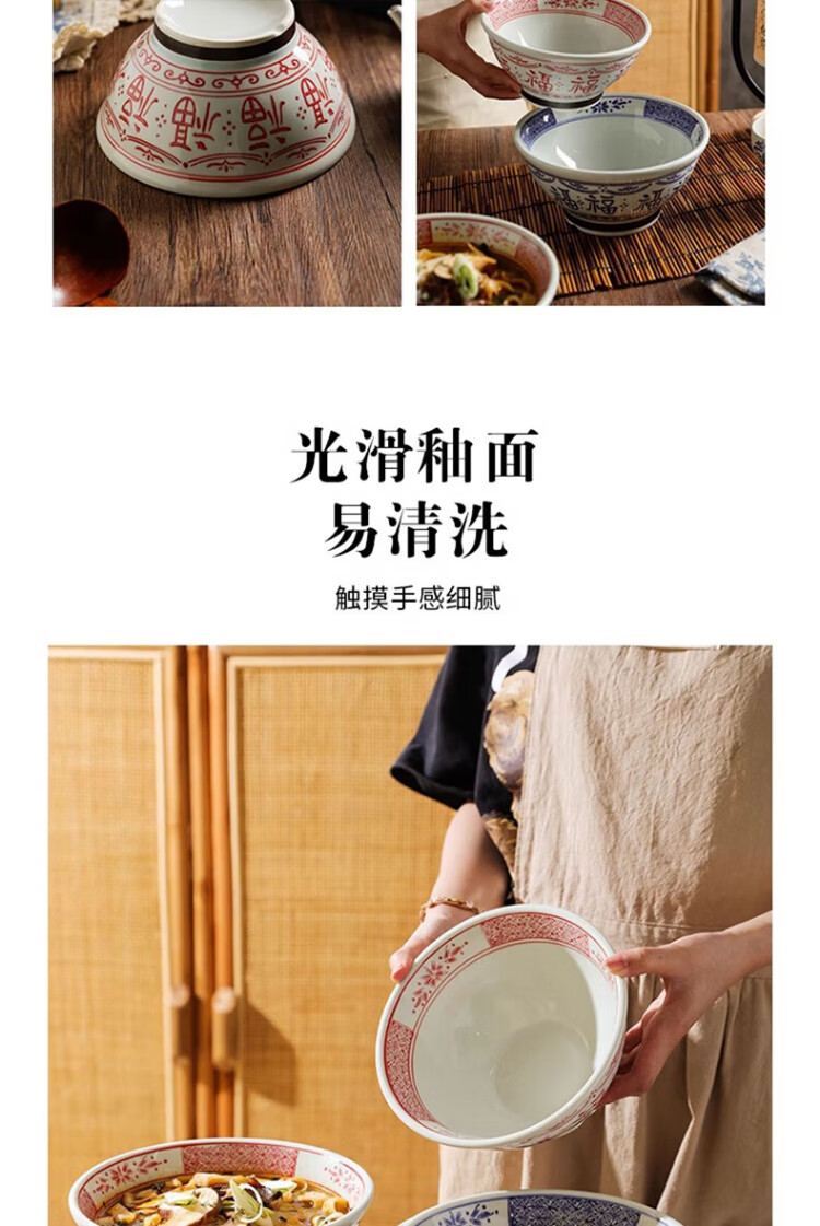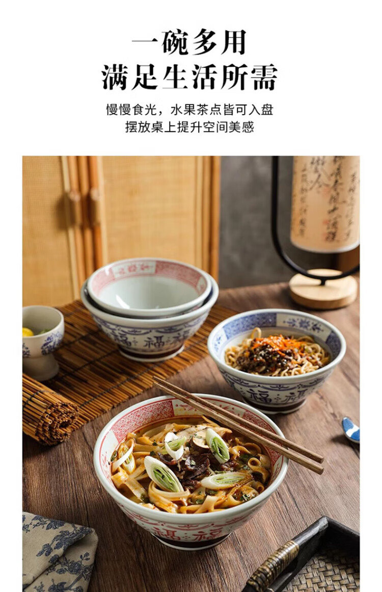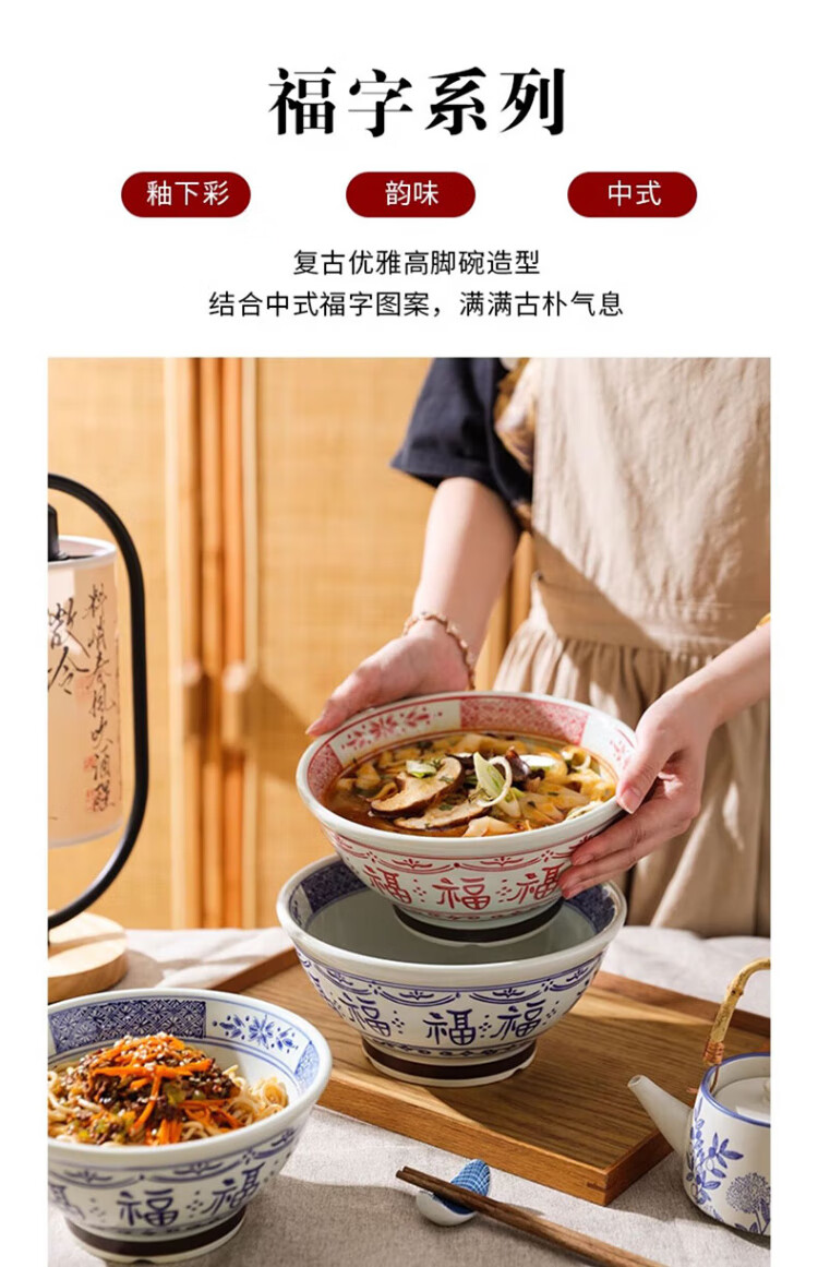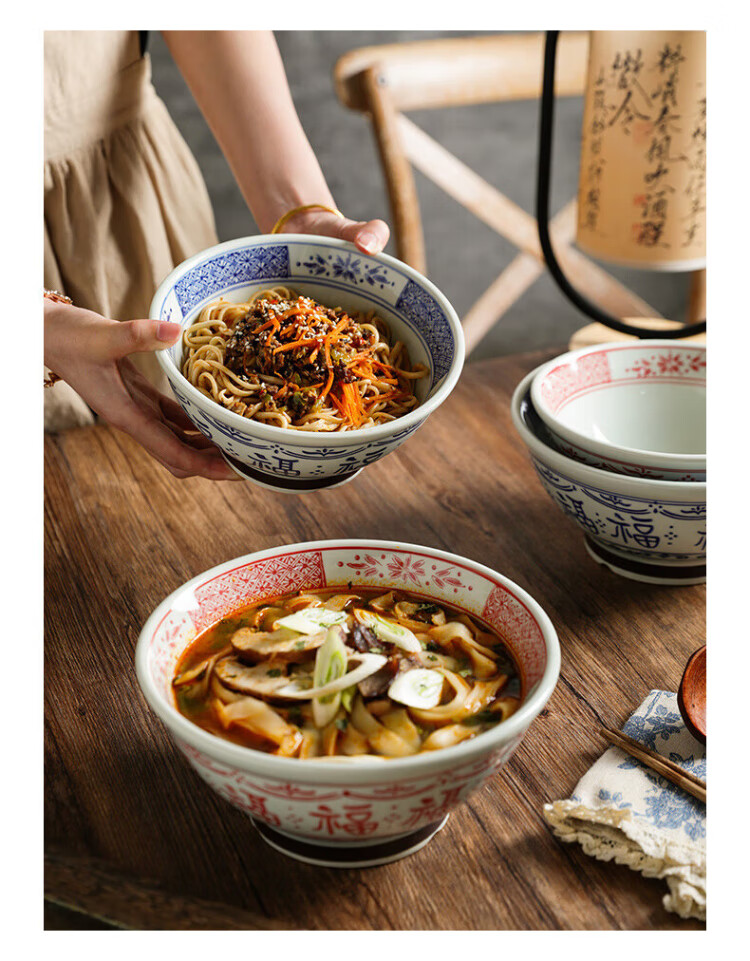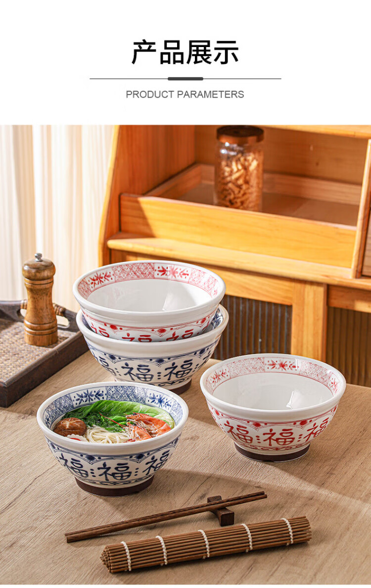 Dining general large bowl noodle bowl household underglaze color anti-scalding ramen bowl bamboo hat bowl Japanese instant noodle bowl new tableware soup basin