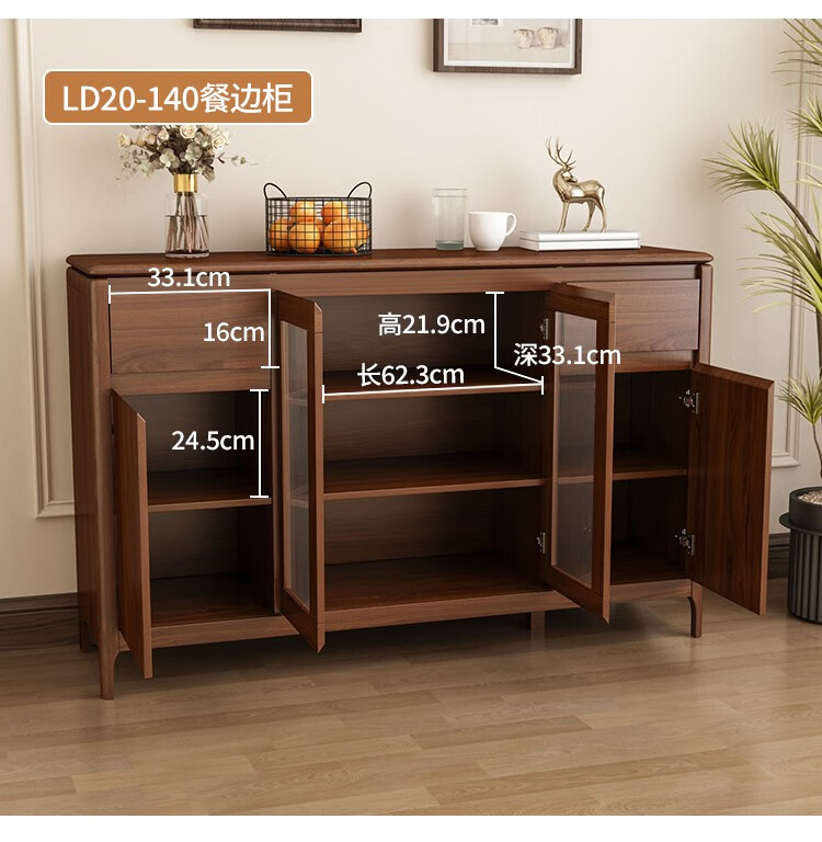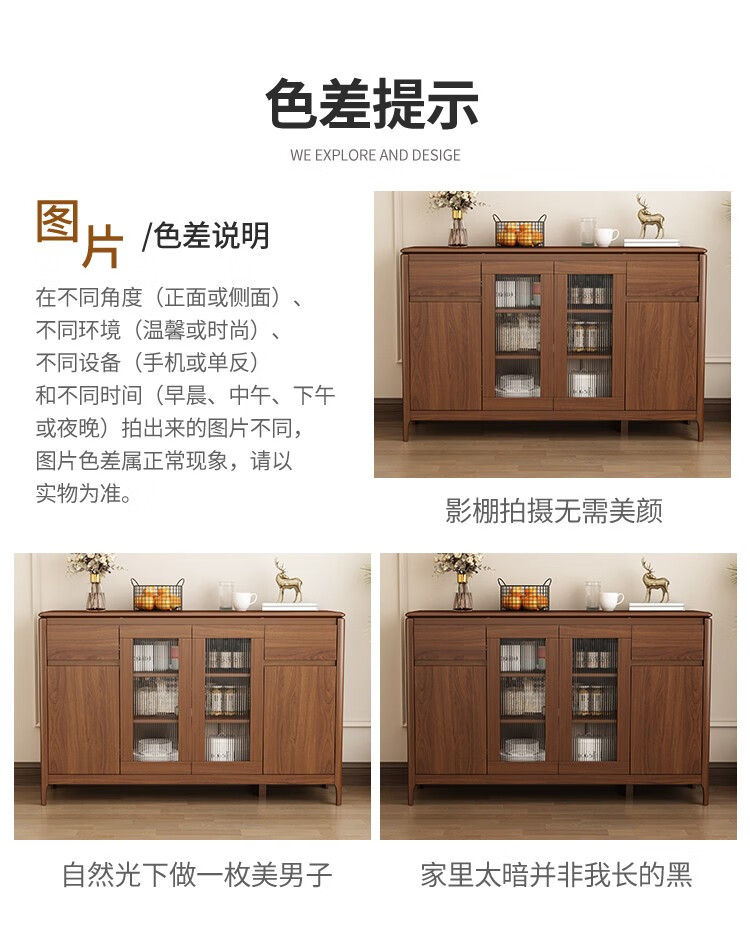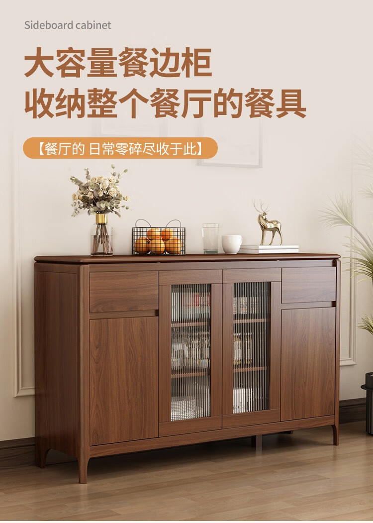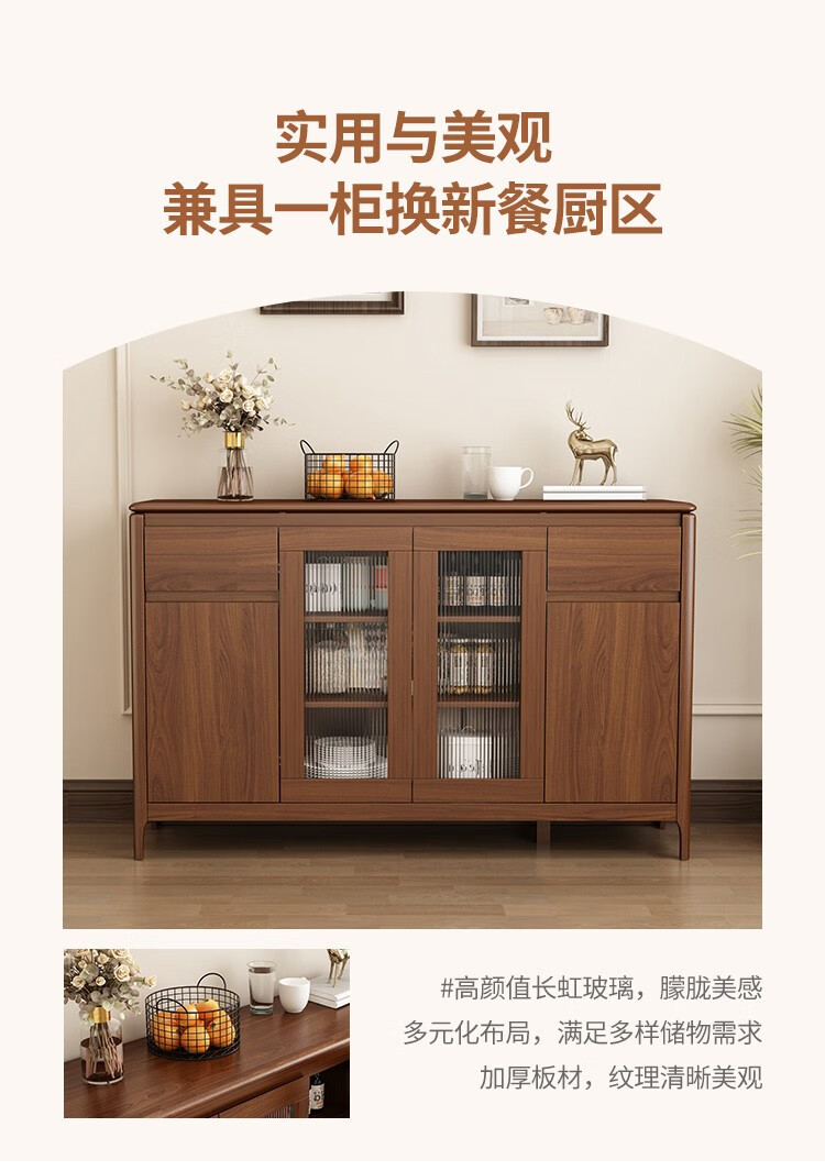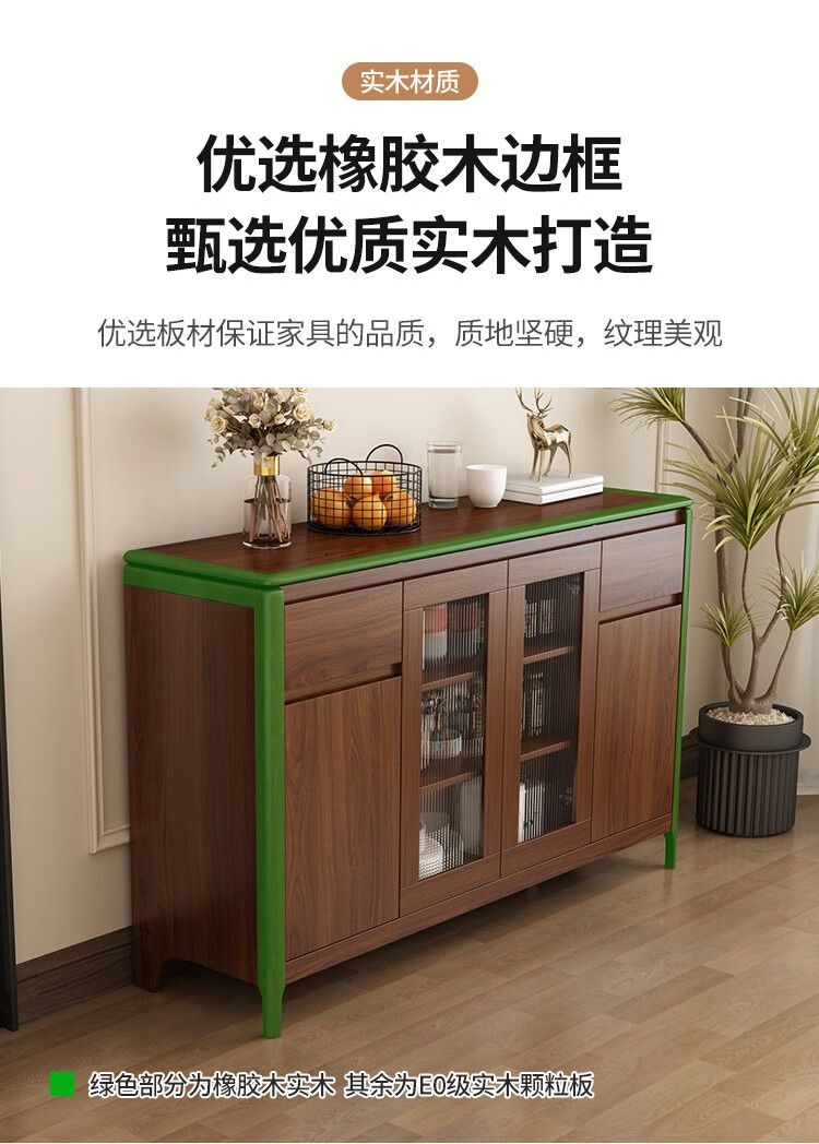 Qiuke solid wood sideboard against the wall integrated living room tea cabinet kitchen storage cabinet 2025 new modern simple storage cabinet