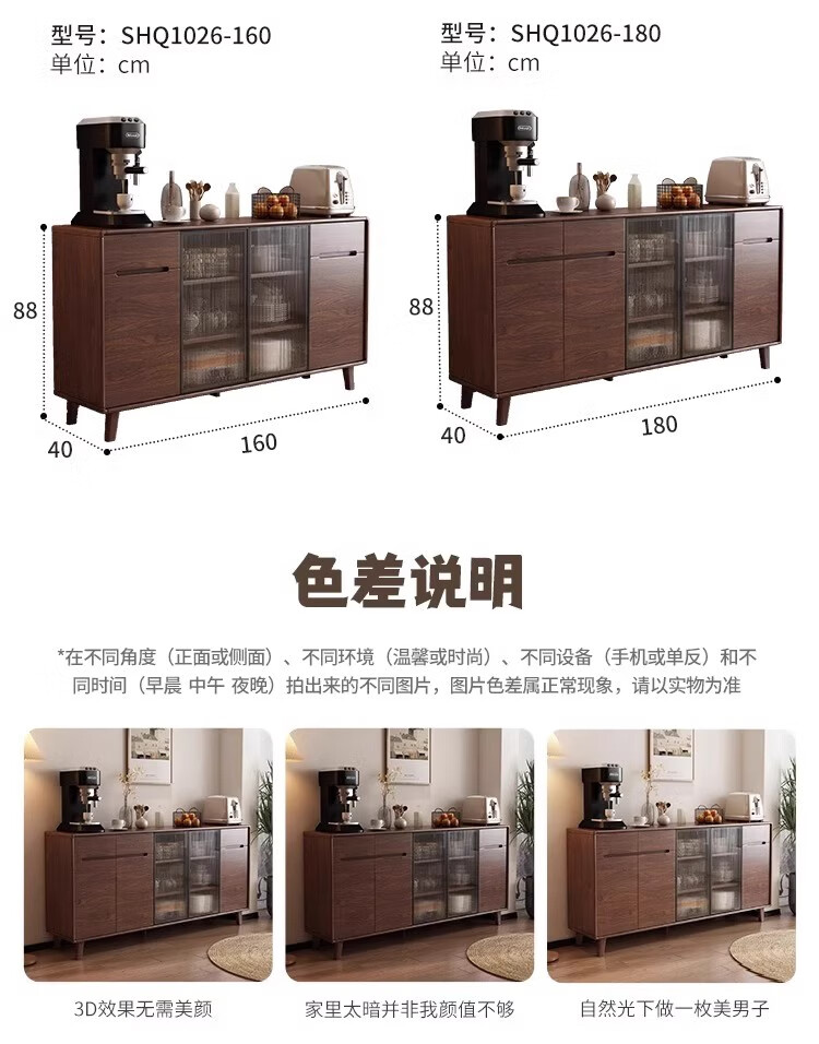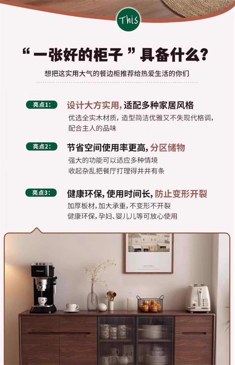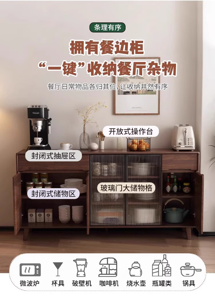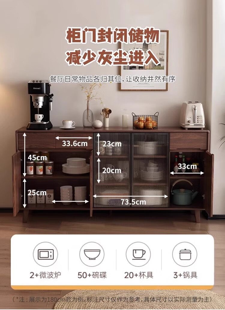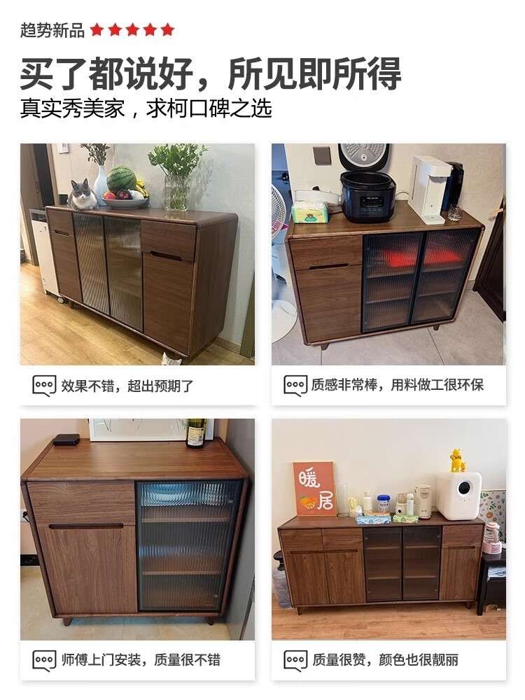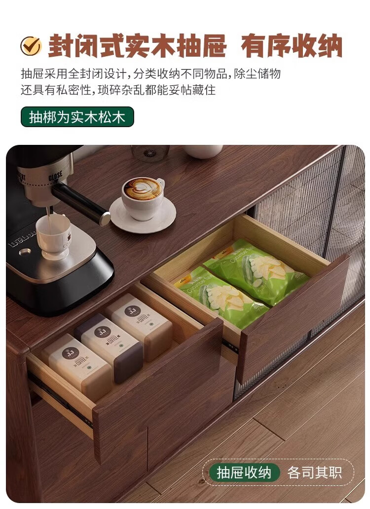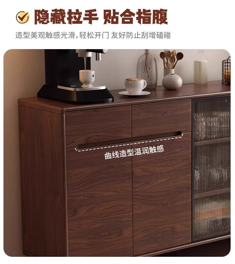 Qiuke solid wood sideboard integrated wall cabinet tea cabinet side cabinet living room storage cabinet walnut cabinet kitchen cabinet