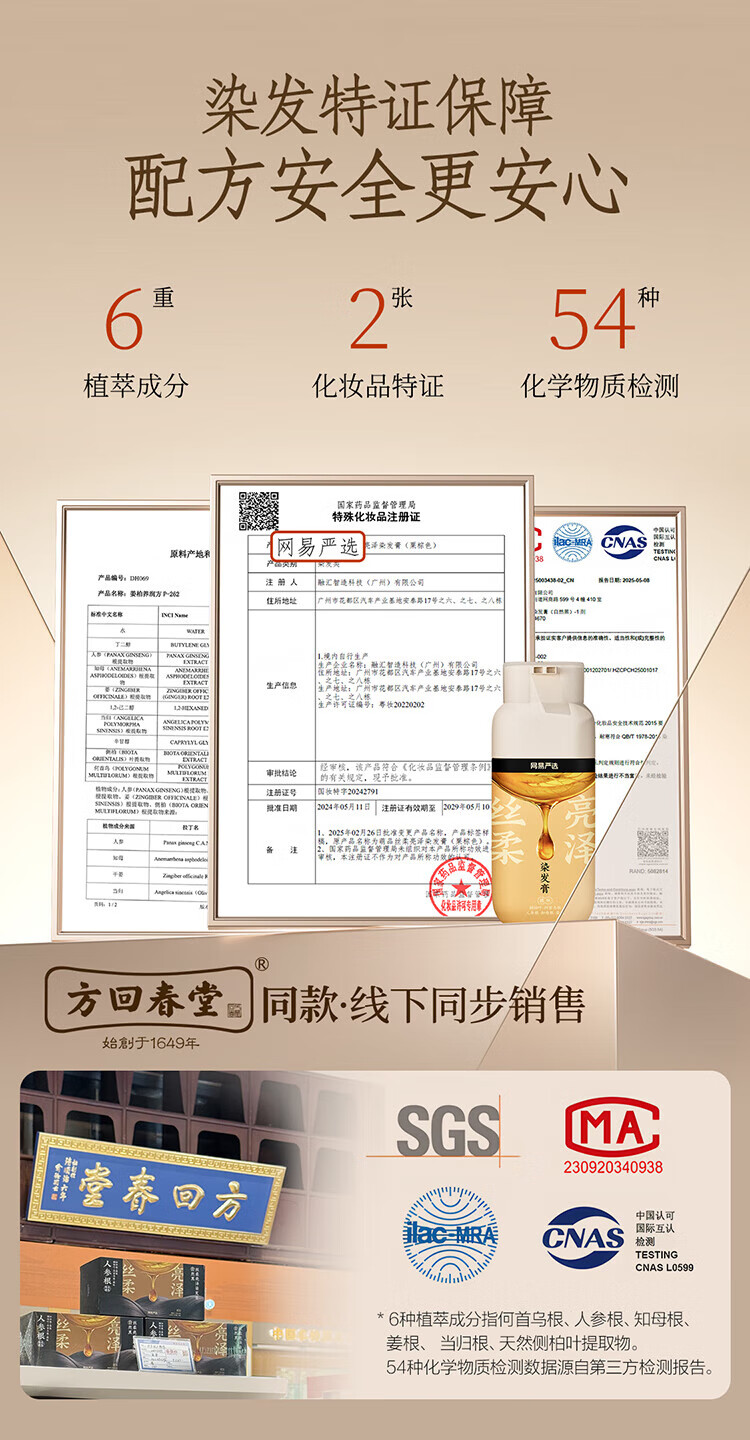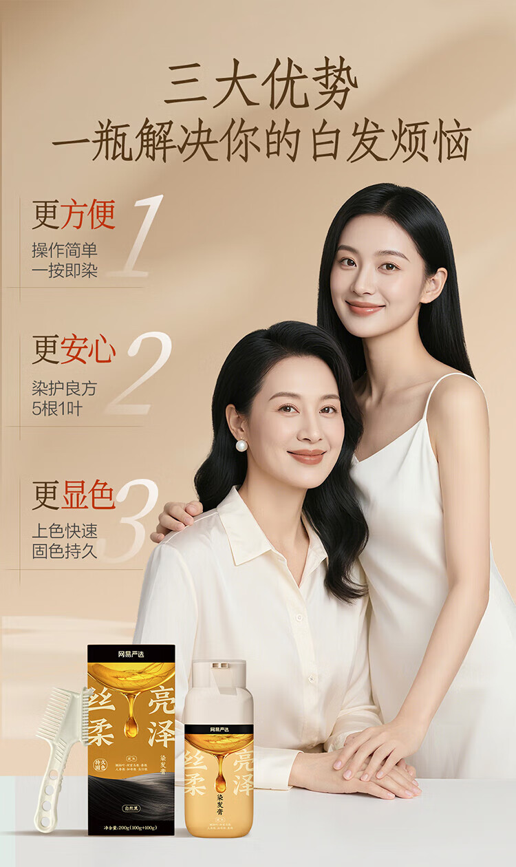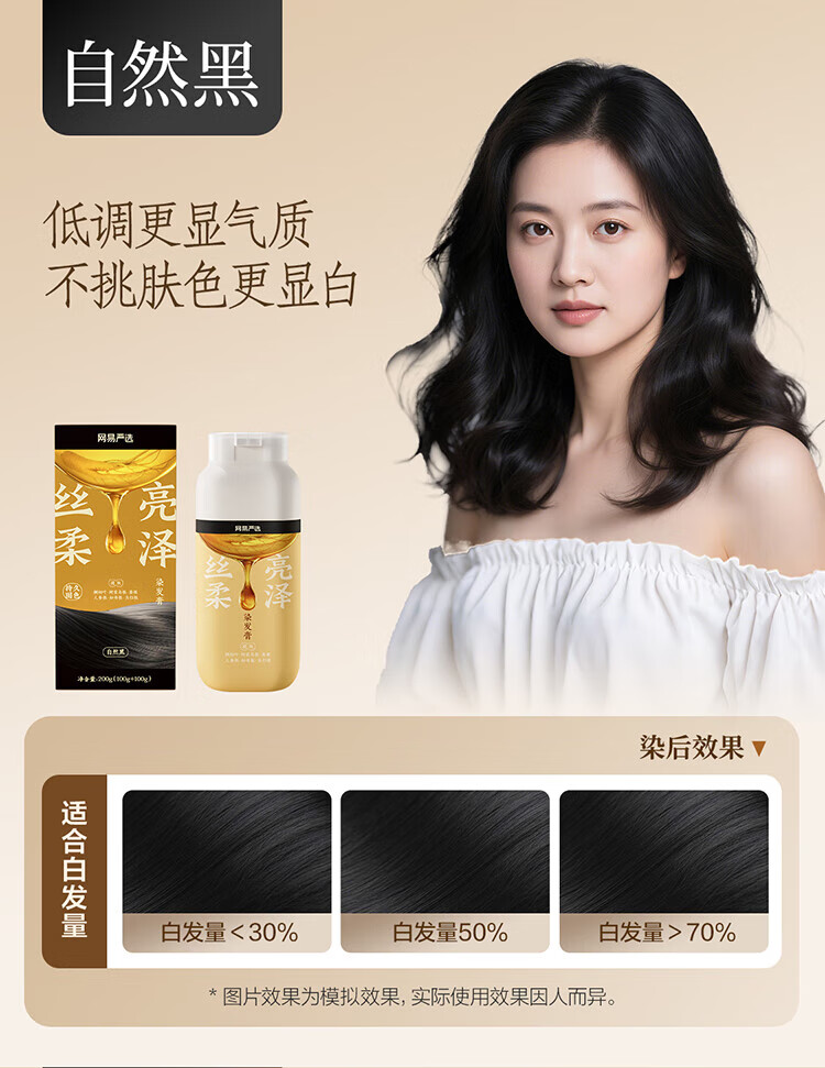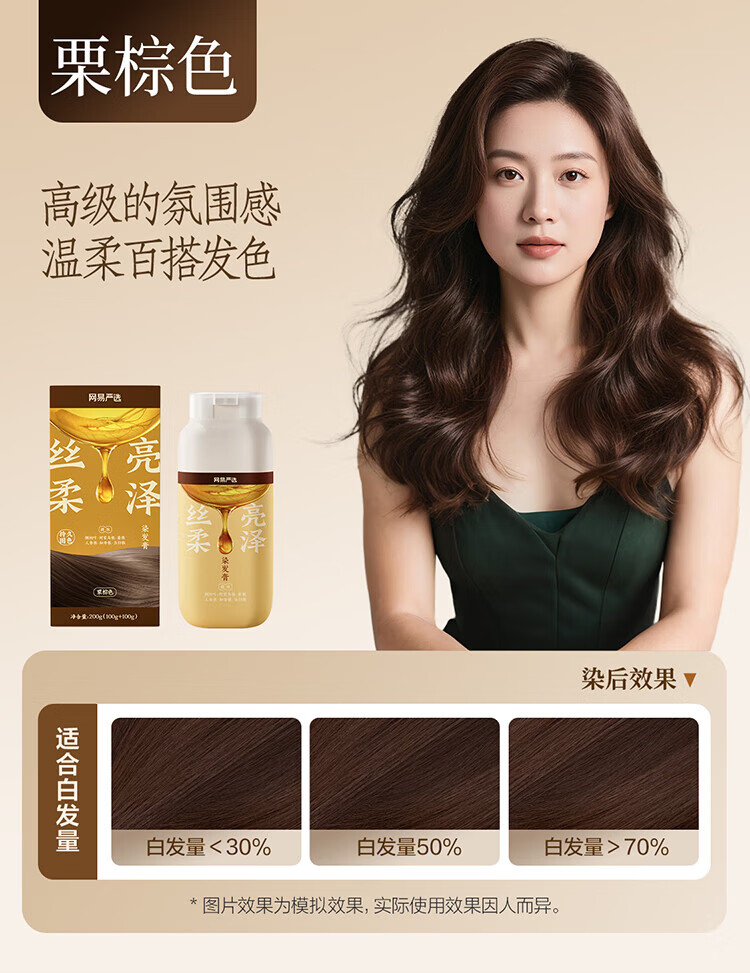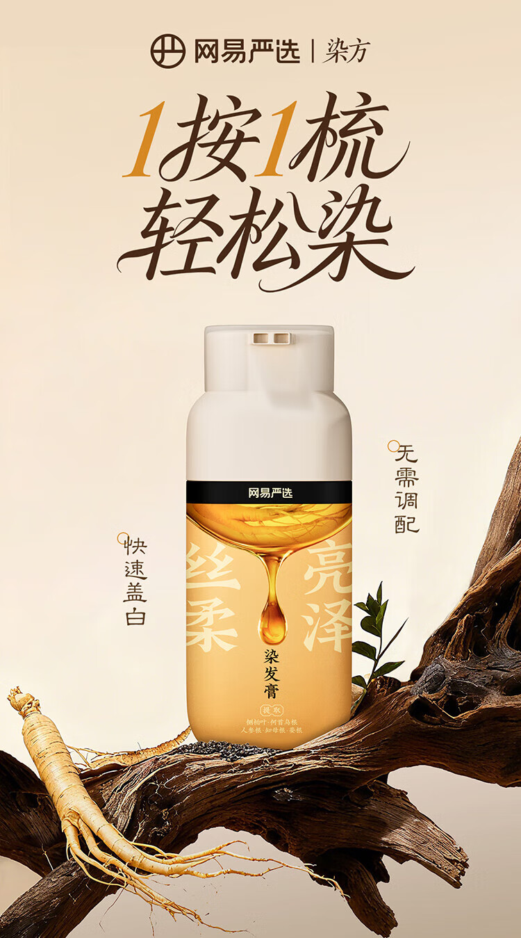 NetEase carefully selected the same style as Chen Long's one-comb dyed ginseng root hair dye to cover gray hair with zero irritation and easy dyeing, mocha brown*1 bottle