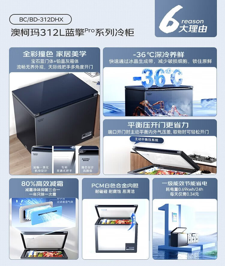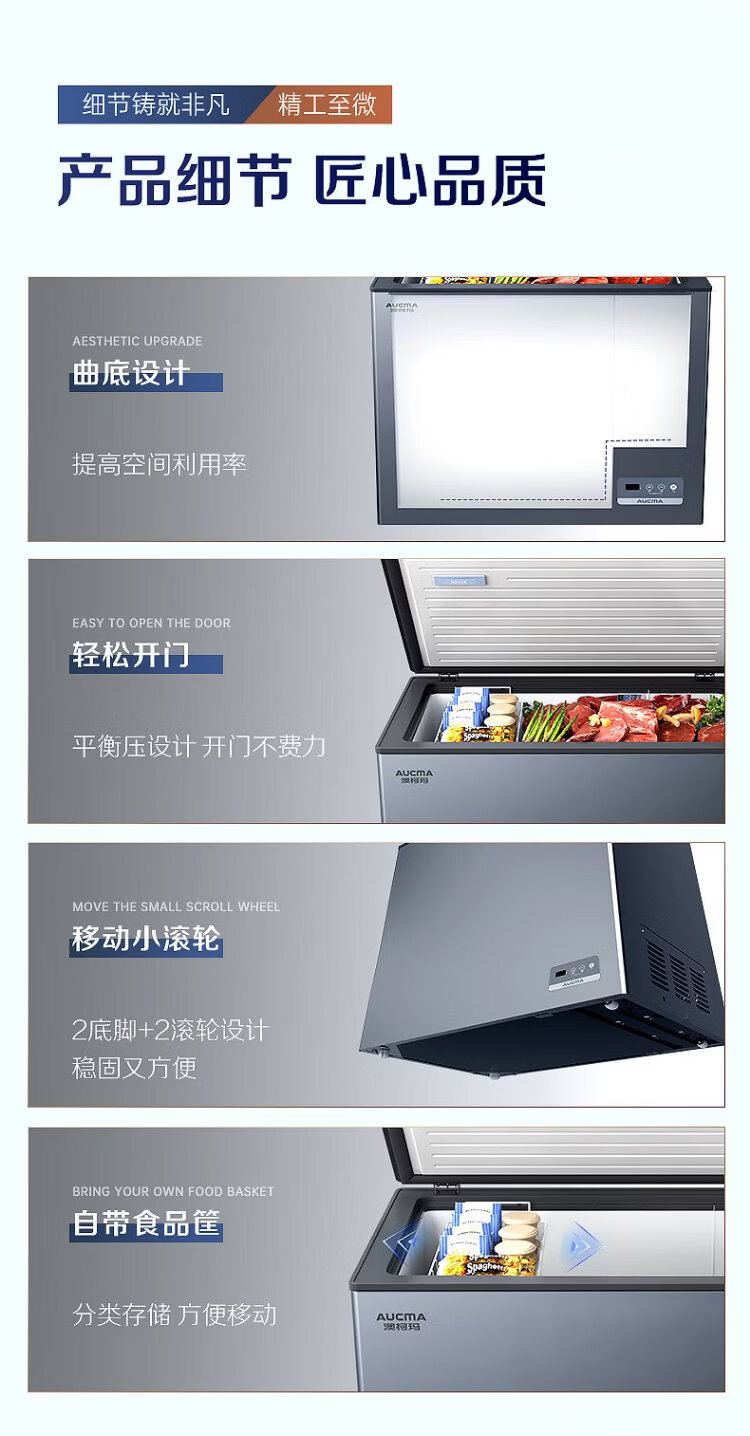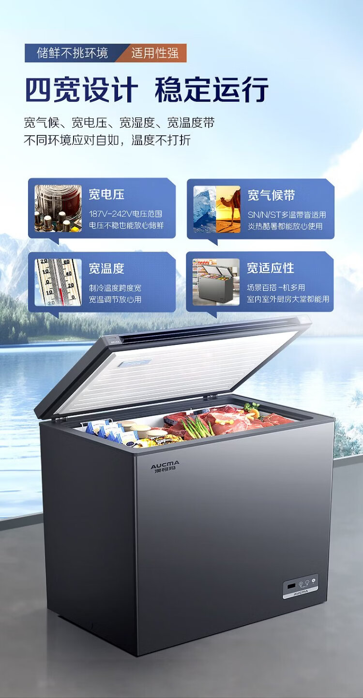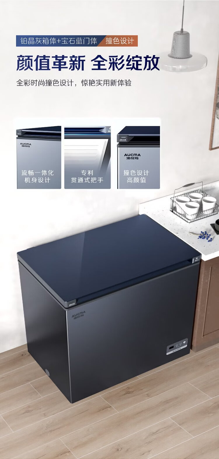 AUCMA Lanqing series 312 liter single temperature household frost-reducing small freezer refrigerator freezer ultra-low temperature electronically controlled horizontal refrigerator first-class energy efficiency BC/BD-312DHX trade-in