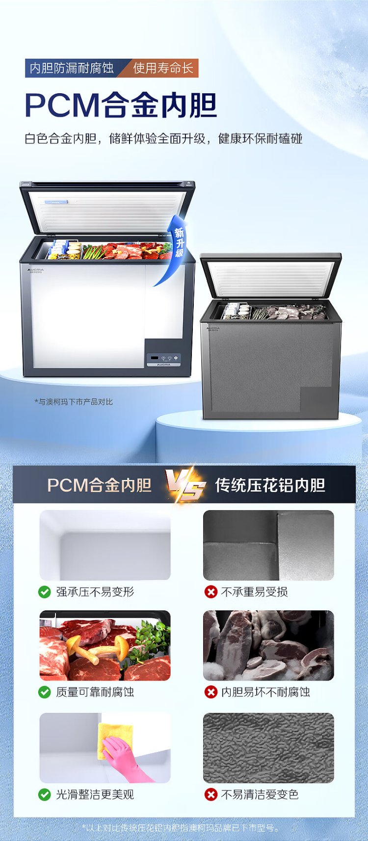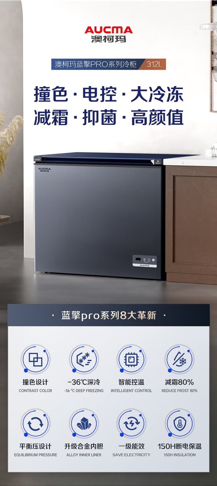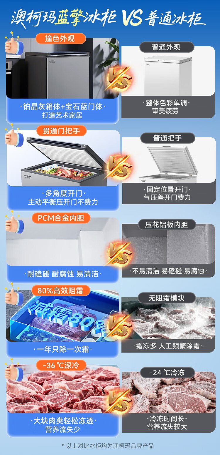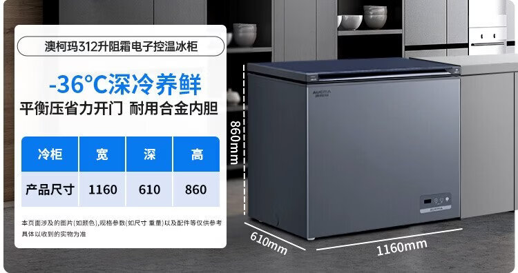 AUCMA Lanqing series 312 liter single temperature household frost-reducing small freezer refrigerator freezer ultra-low temperature electronically controlled horizontal refrigerator first-class energy efficiency BC/BD-312DHX trade-in