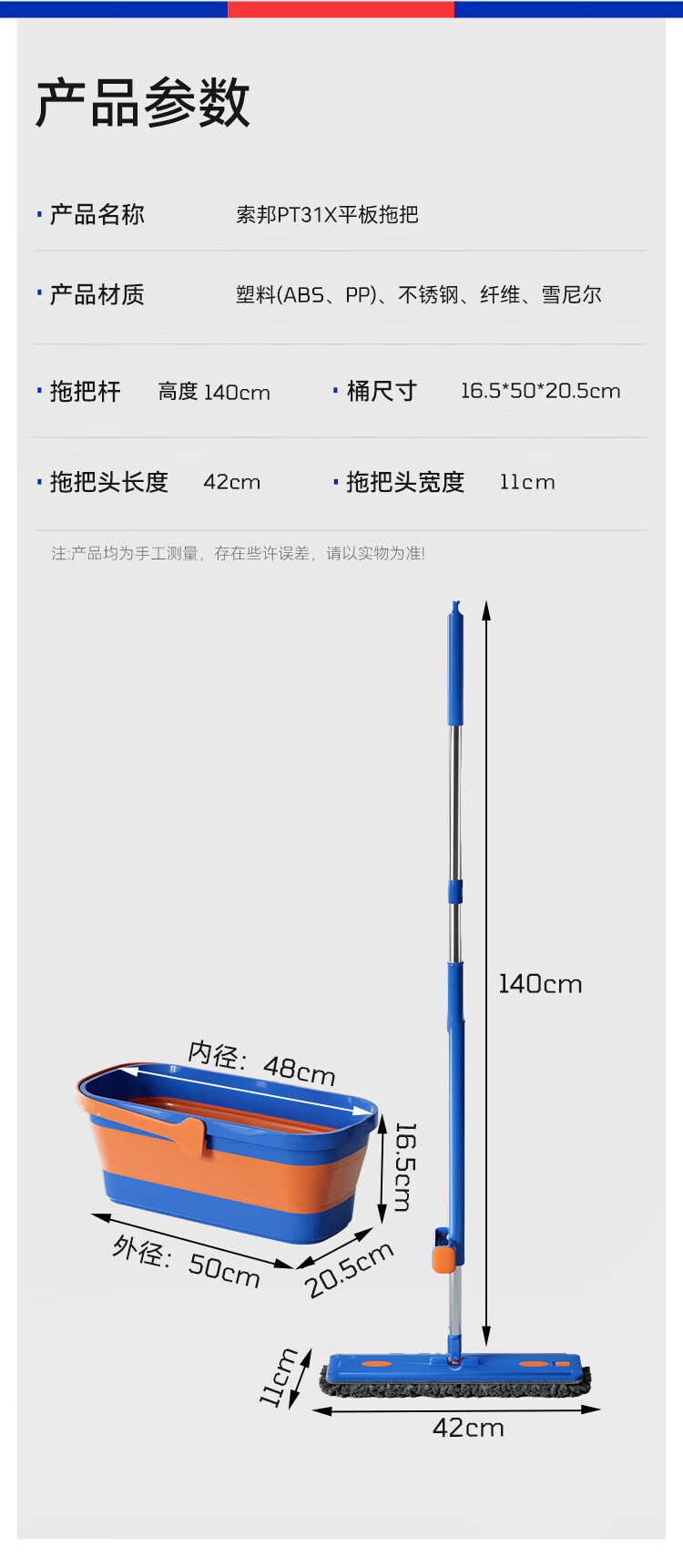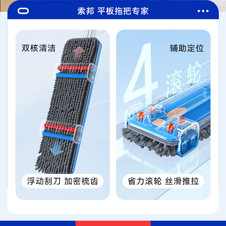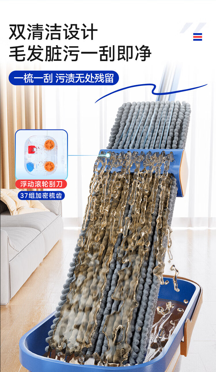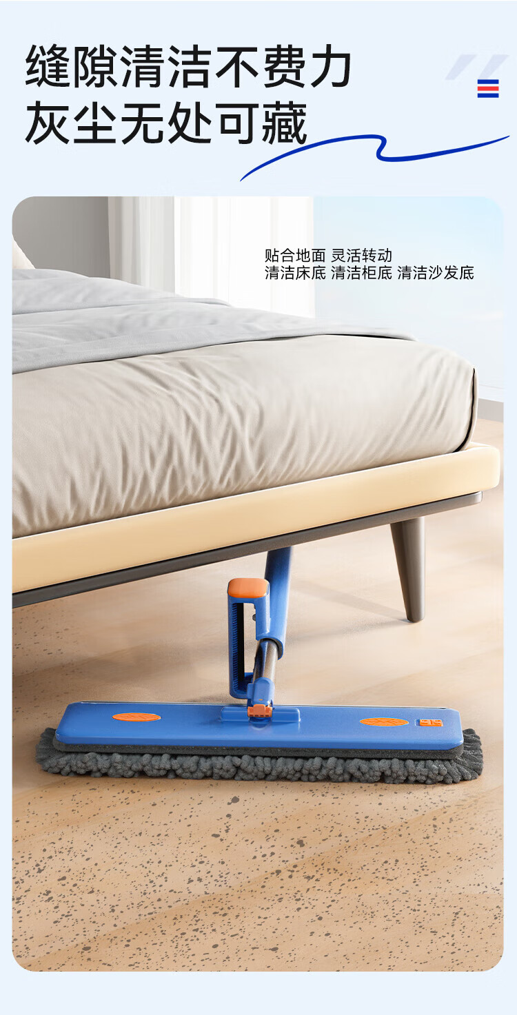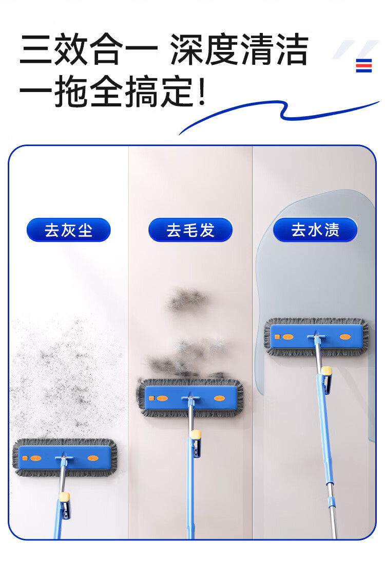 Sorbonne flat mop 42cm 4 cloth household one-mop hand-free chenille mop mopping artifact with bucket set