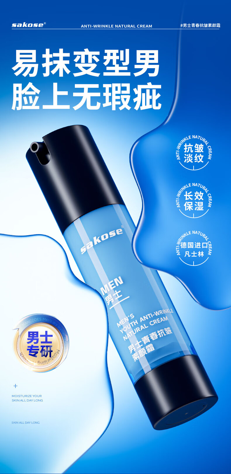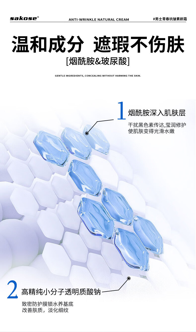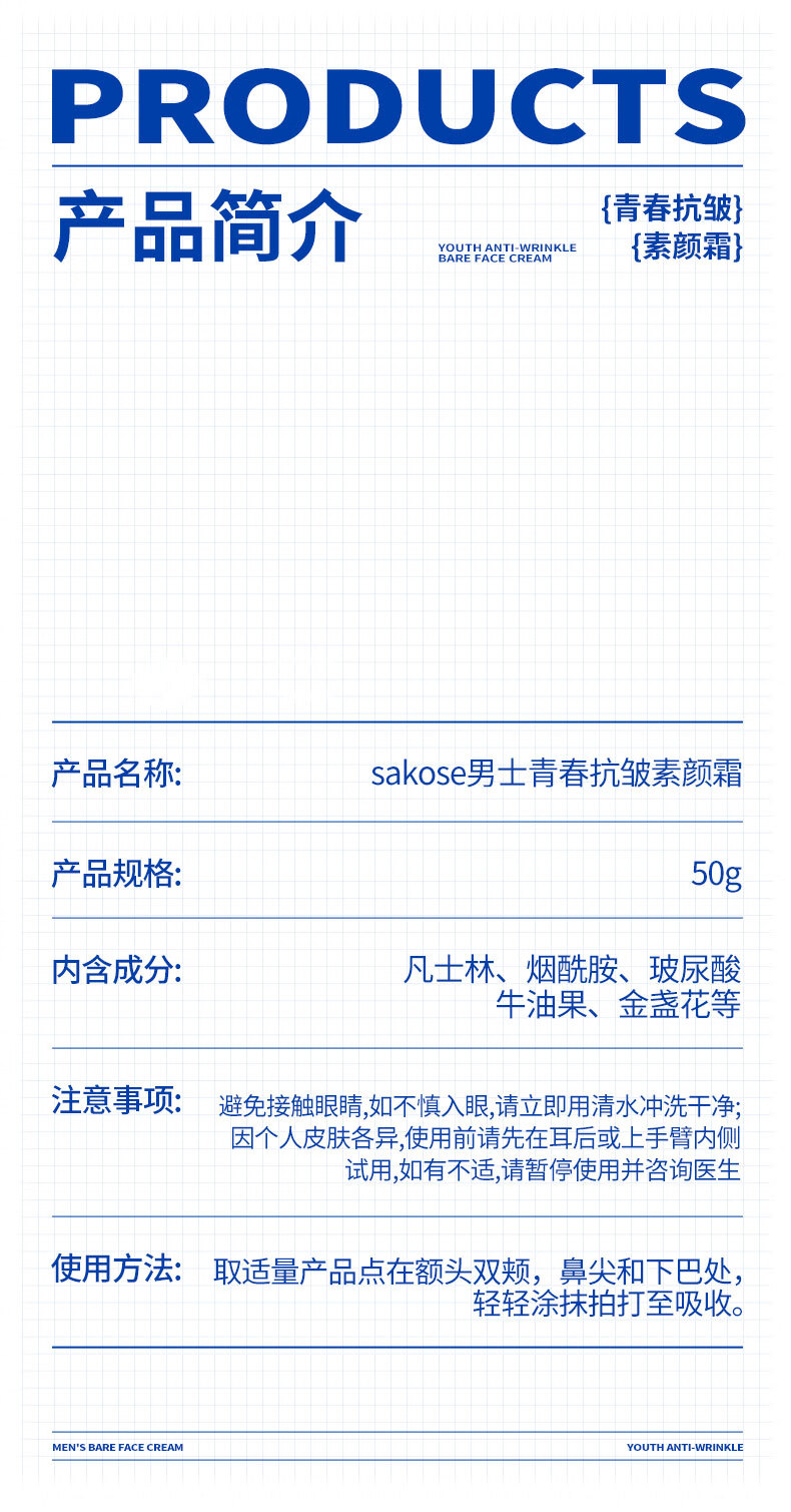 Sakose men's youthful anti-wrinkle moisturizing cream 50g concealer concealer acne marks brighten skin tone repair isolation face cream bb cream