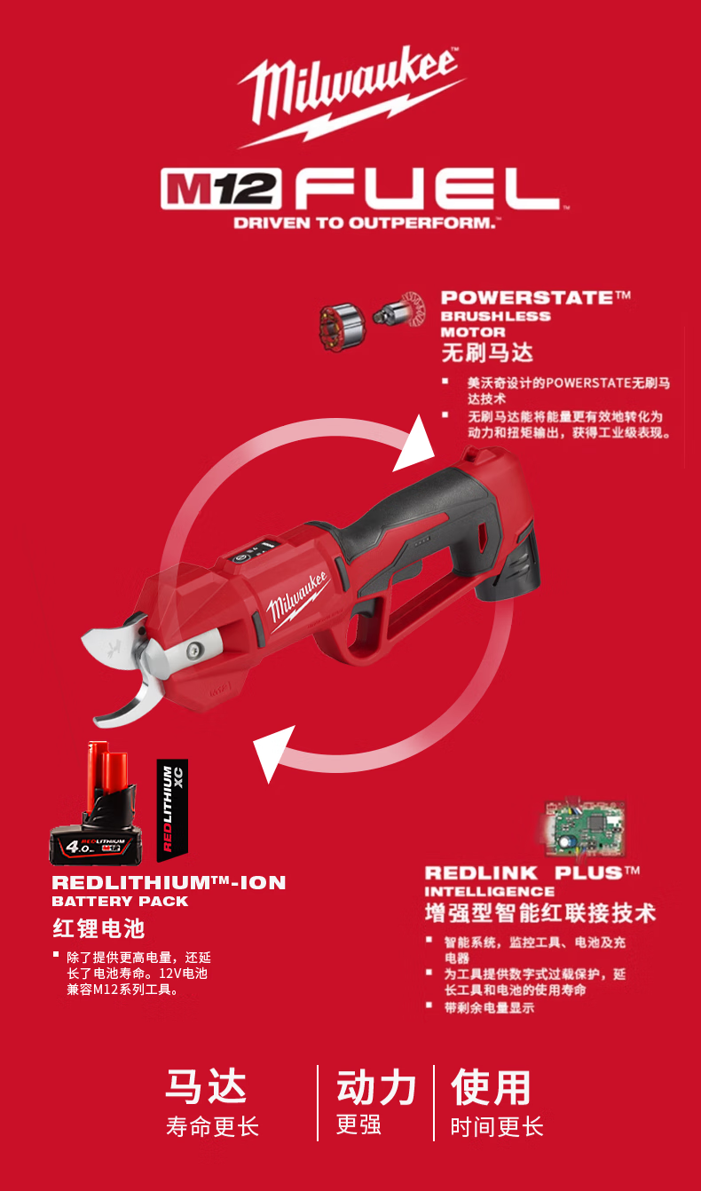 Miwaki rechargeable pruning shears electric scissors for cutting branches rechargeable garden pruning shears M12 BLPRS-402B