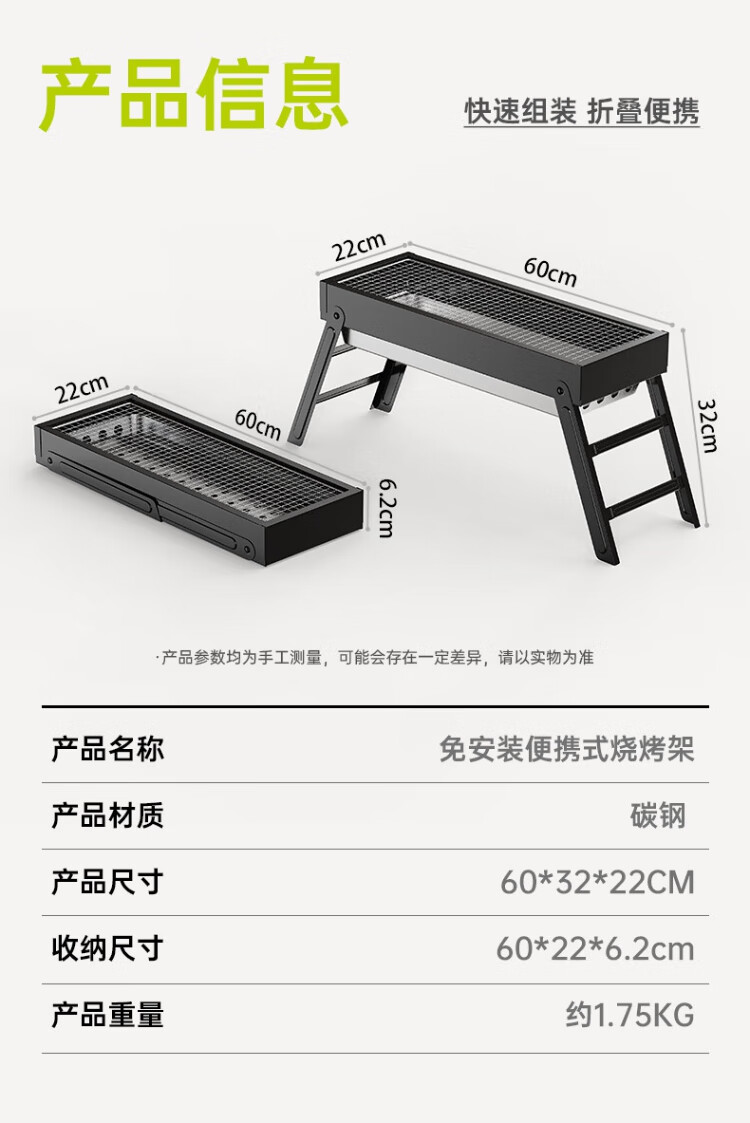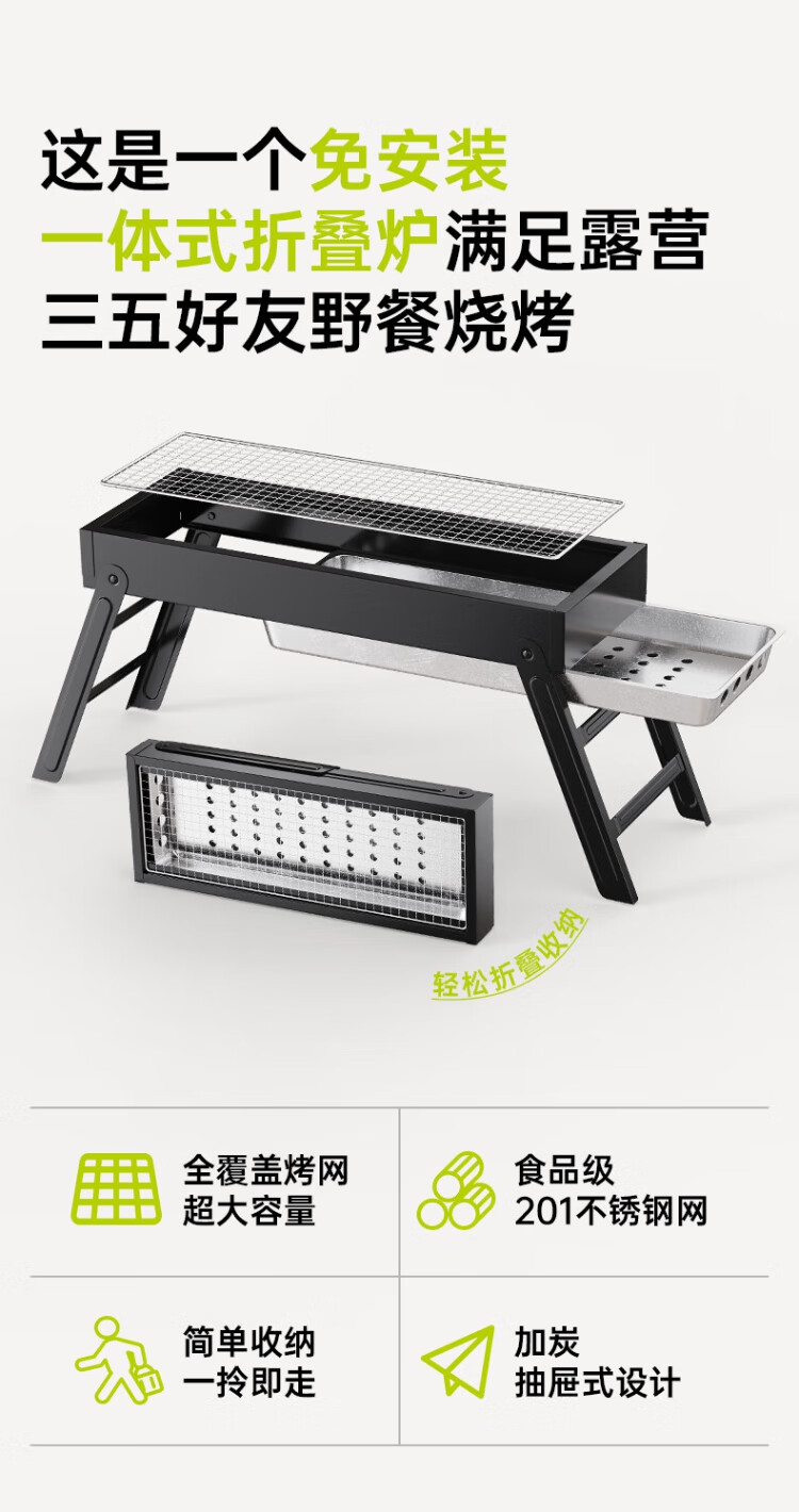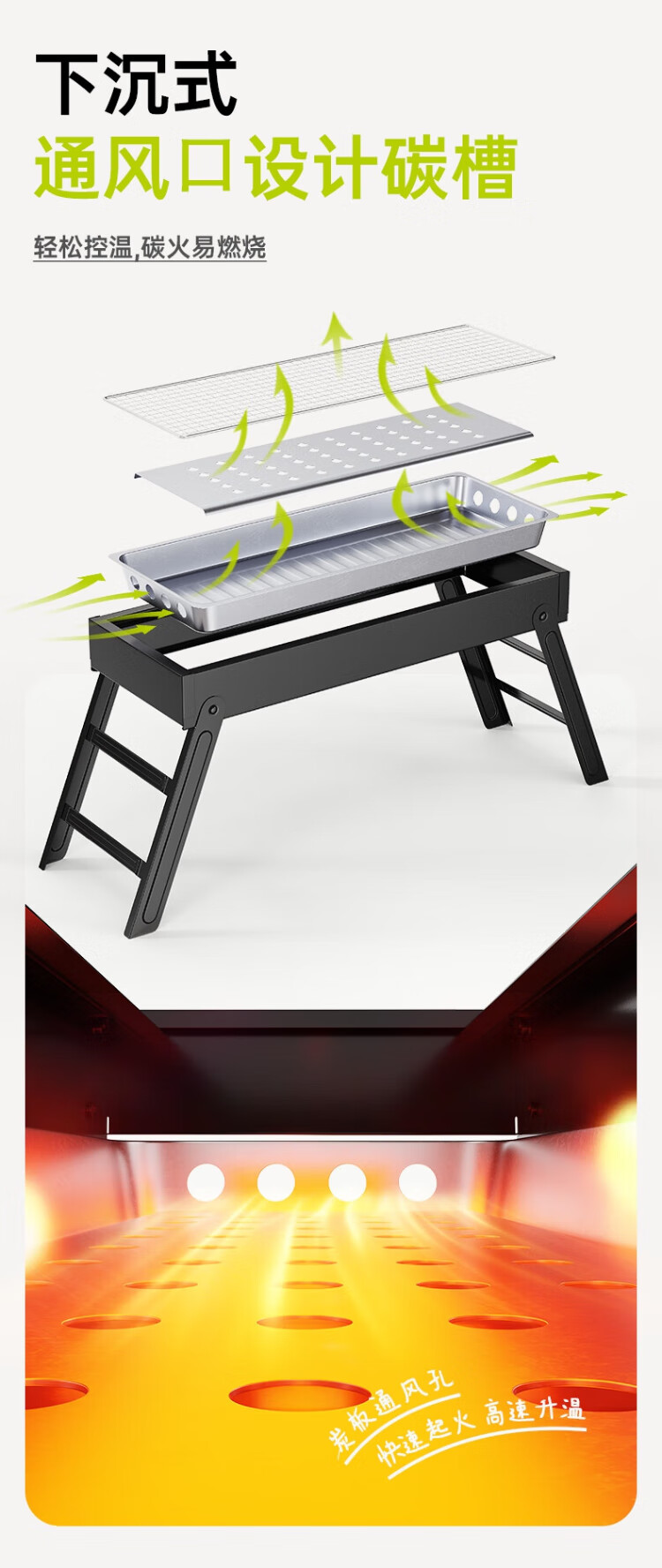 Huangchi outdoor barbecue grill camping portable foldable charcoal grill household barbecue all-in-one storage charcoal barbecue rack
