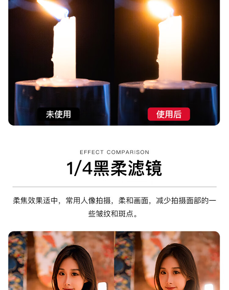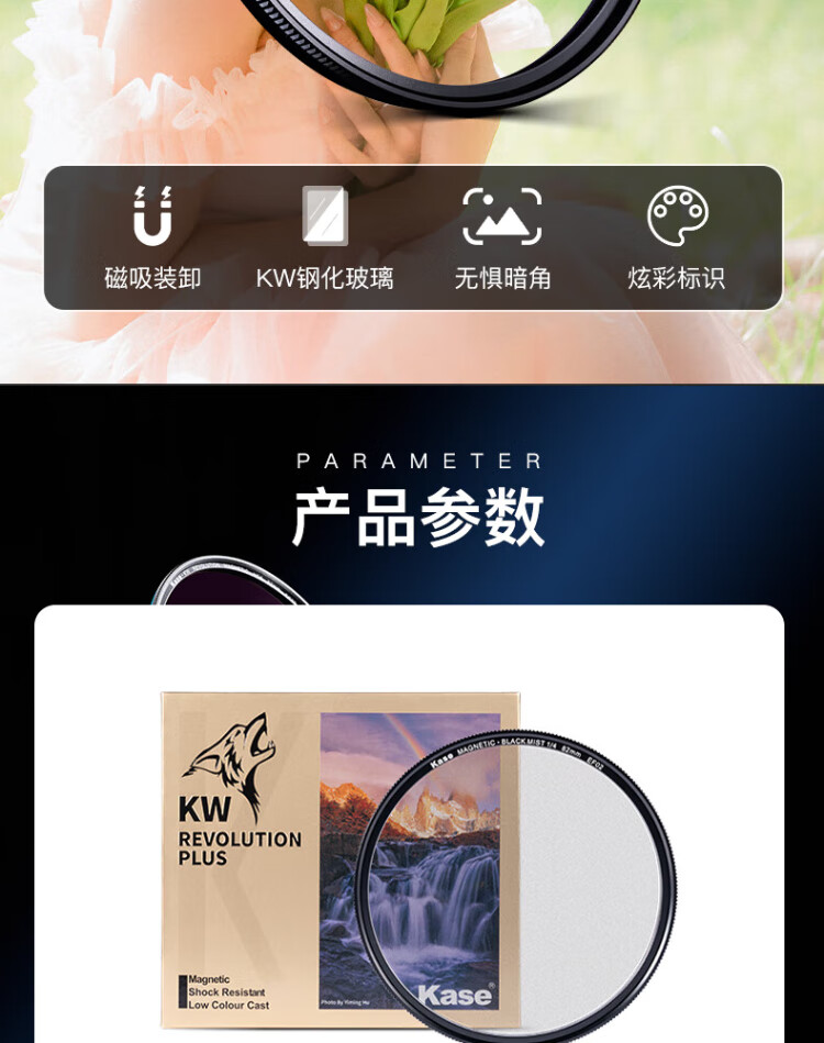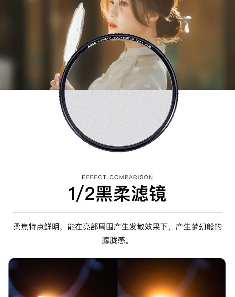 Kase black soft one-eighth 1/8 77mm Wolverine II magnetic filter soft focus lens hazy mirror camera black soft filter portrait character light softening matte creative