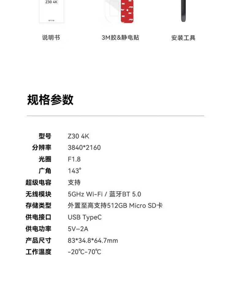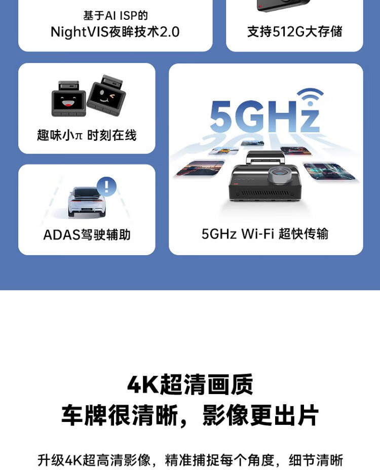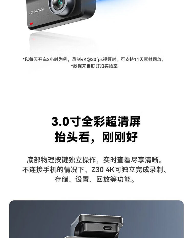 Dadapai AI driving recorder Z30 4K version, ultra-clear black light night vision, 5G WiFi Bluetooth flash connection + 128G card package