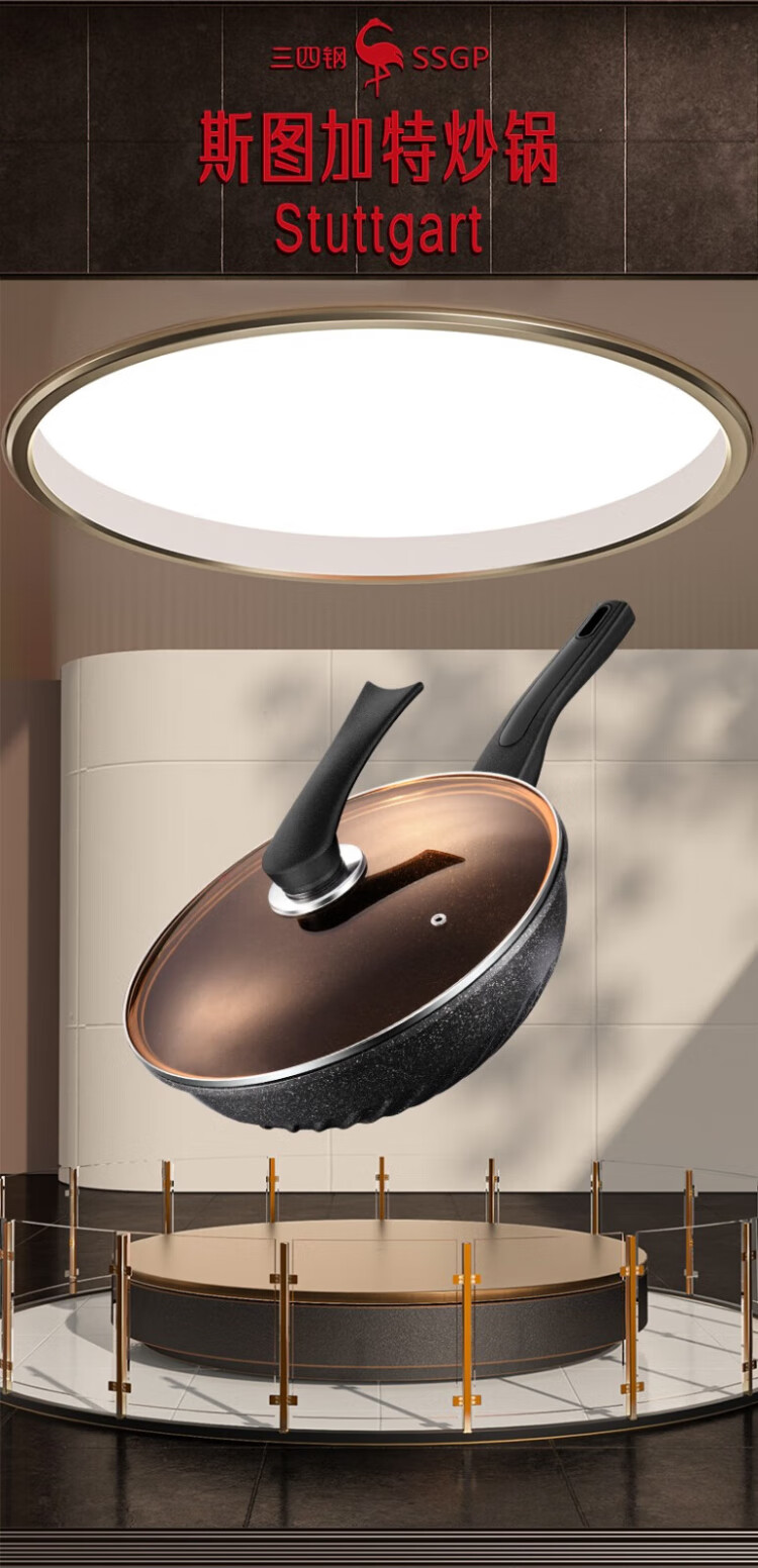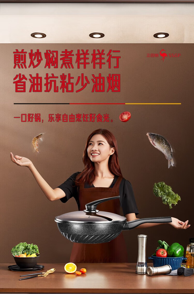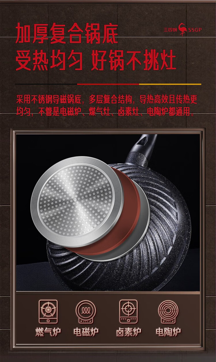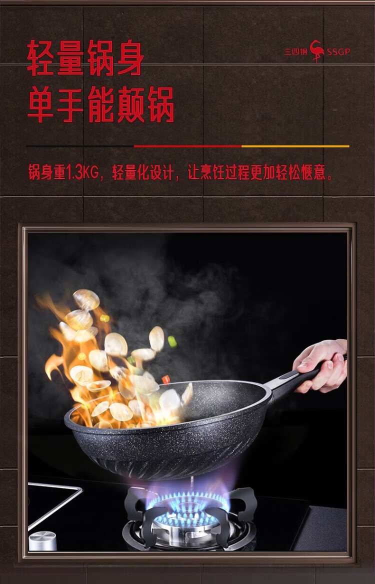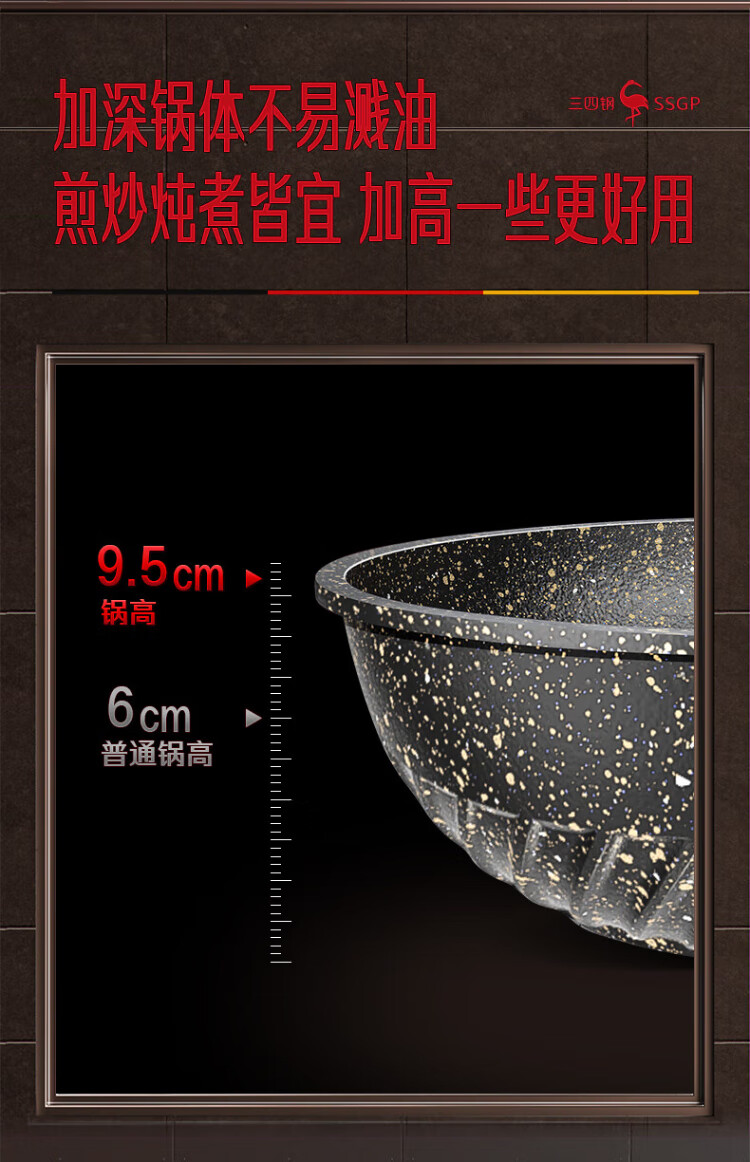 Sansi Steel Non-stick Maifan Stone Color Wok Oil-free Fume Wok Induction Cooker Gas Stove Special 32cm 24608