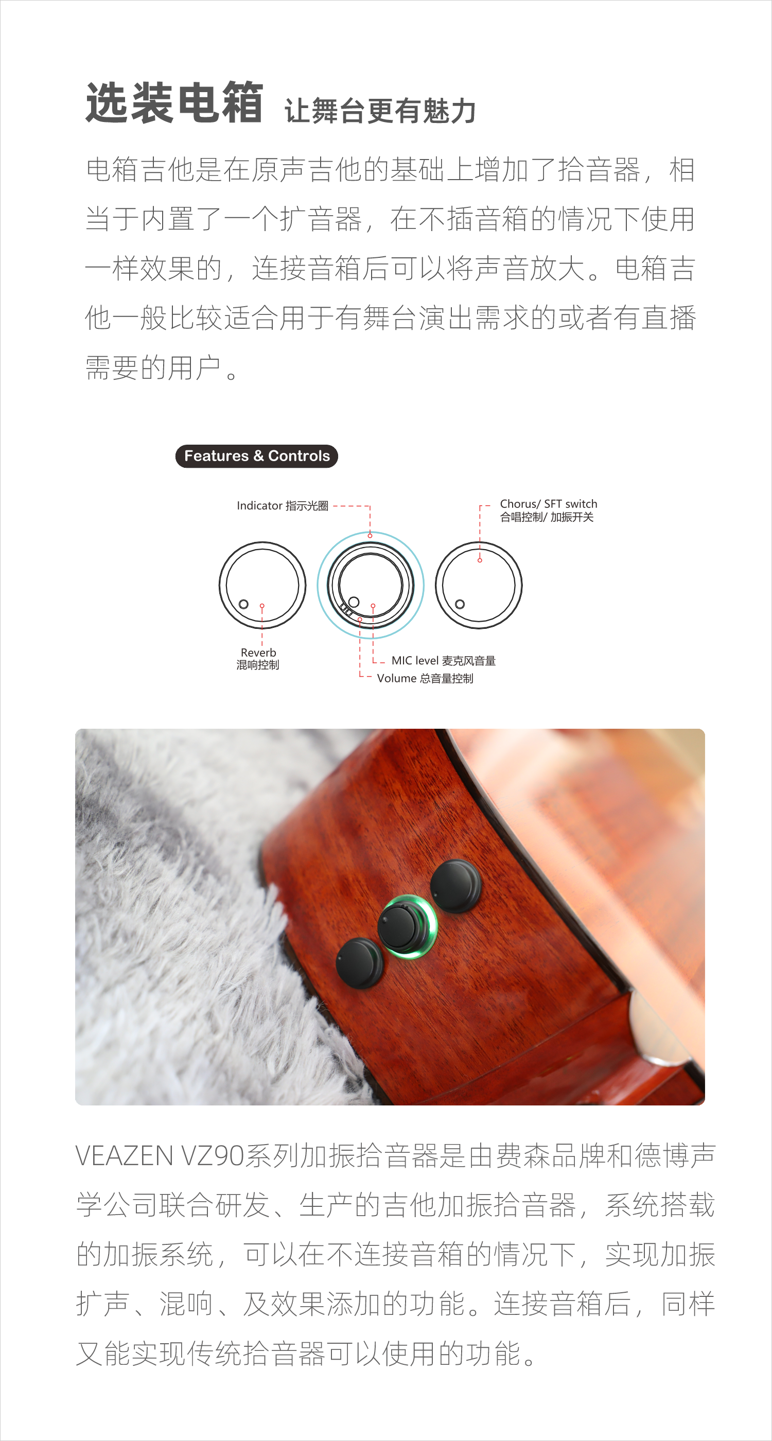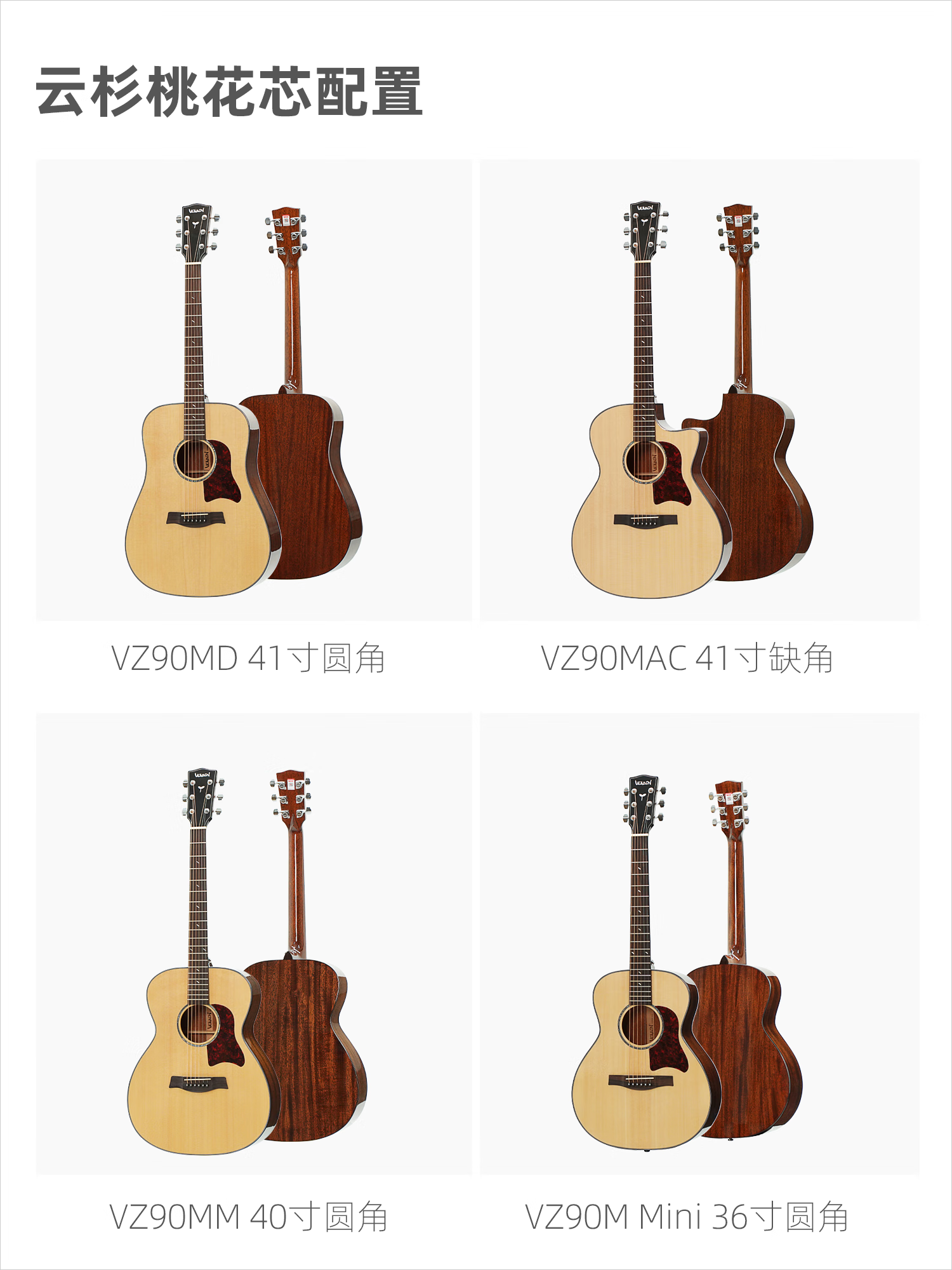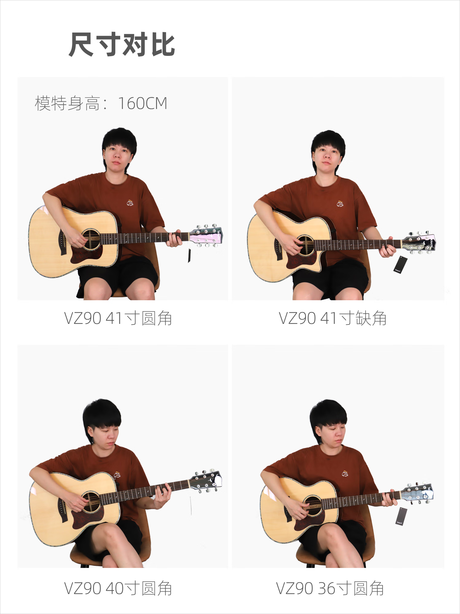 VEAZEN Feisen VZ90 series beginner single-board folk guitar student male and female vibration electric box top single acoustic guitar 41 inches VZ90MD rounded acoustic model