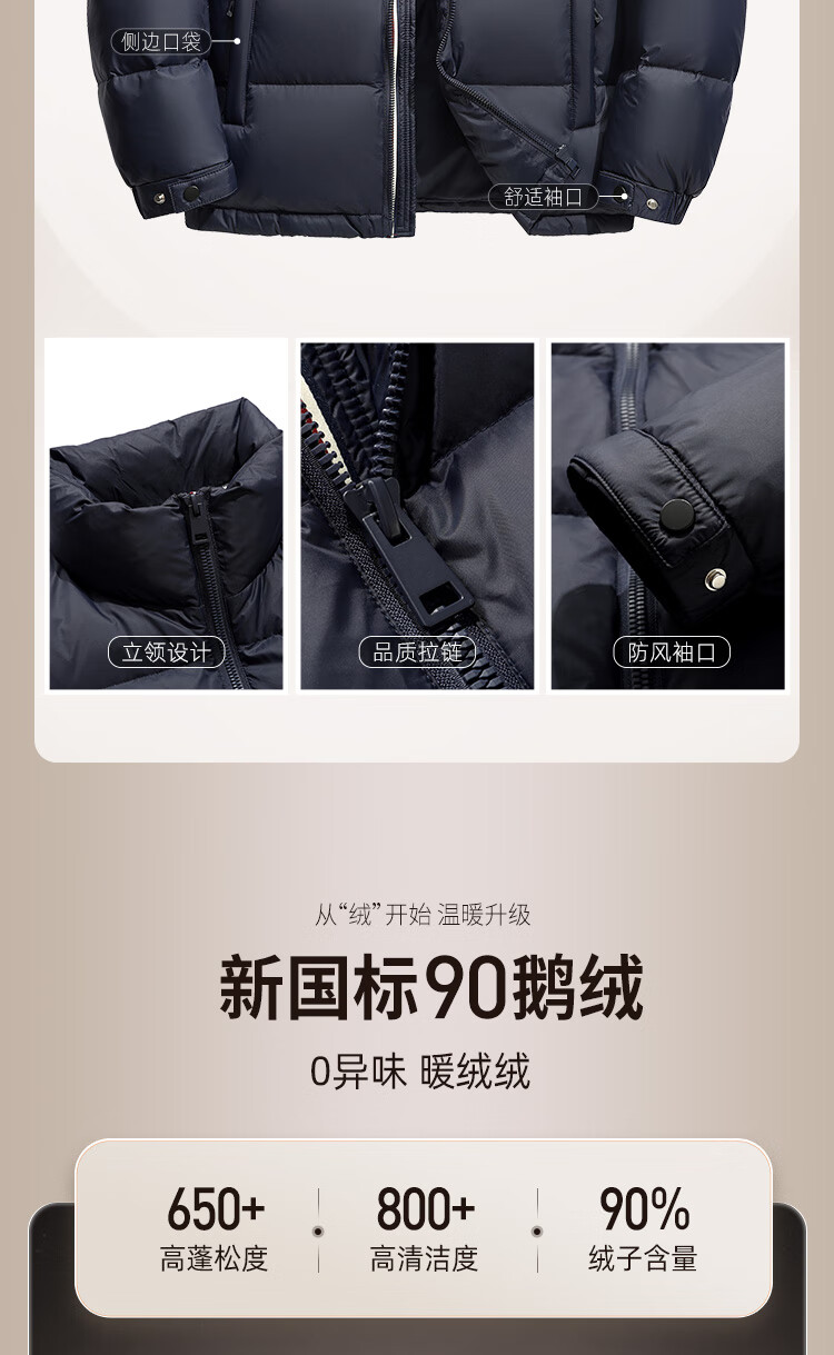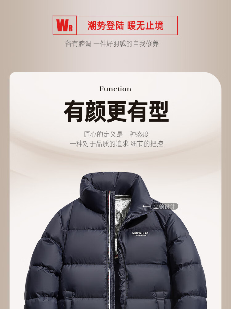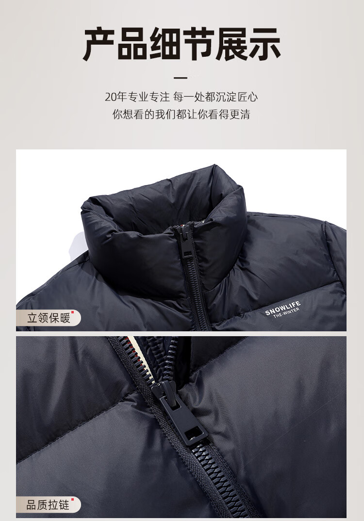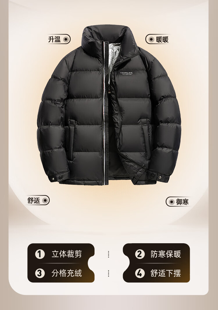 Flying in the Snow High Puff Goose Down Down Jacket Men's Short Stand Collar New Fashion Trend 90 Velvet Thickened Warm Simple Jacket