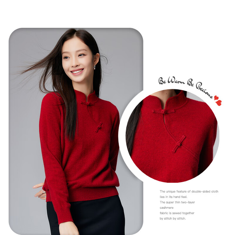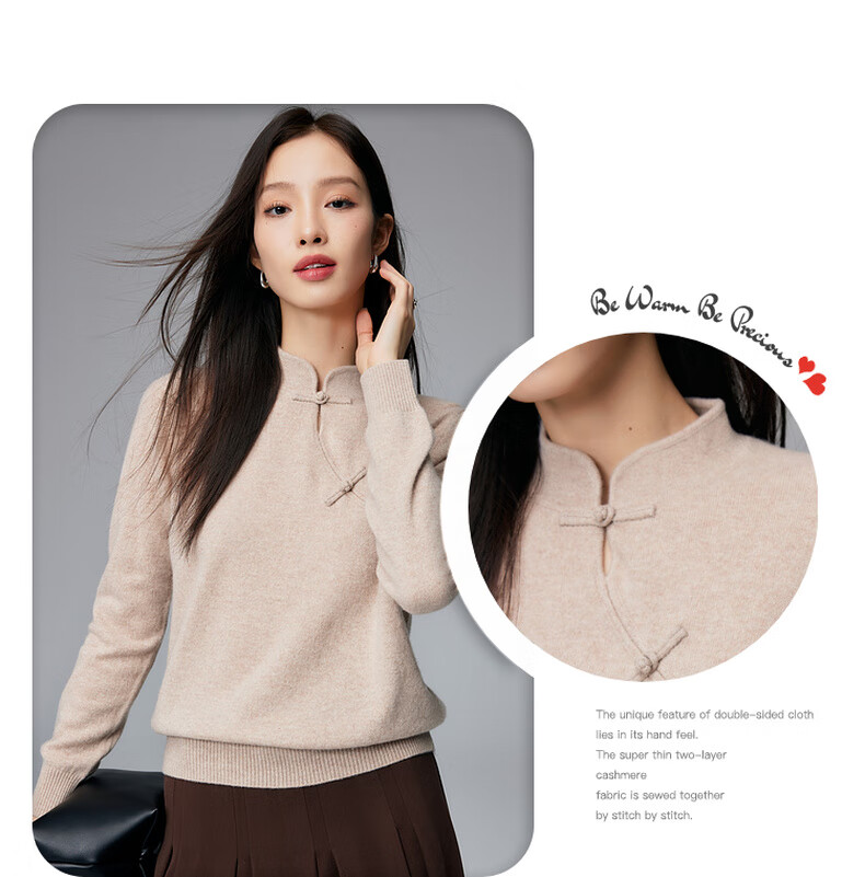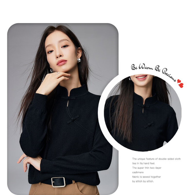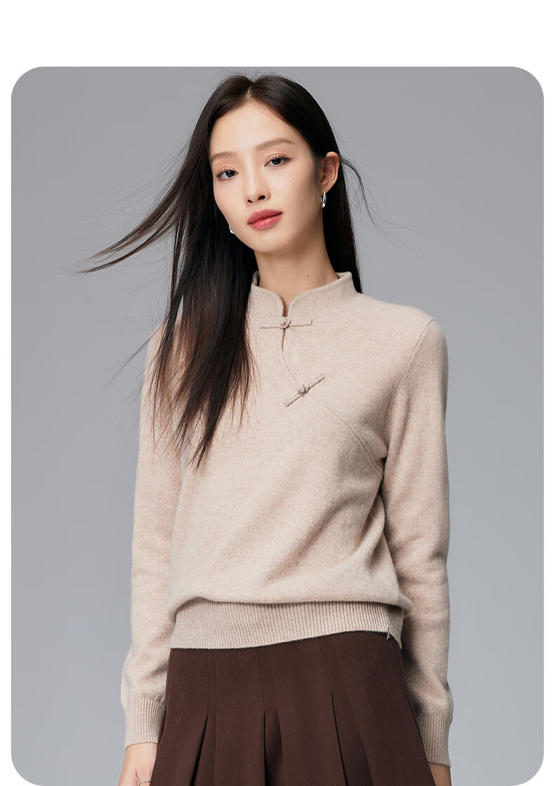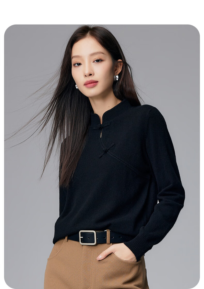 Paro new Chinese style disc button stand collar cashmere sweater Paro 25 autumn and winter new 100% cashmere women's knitted sweater