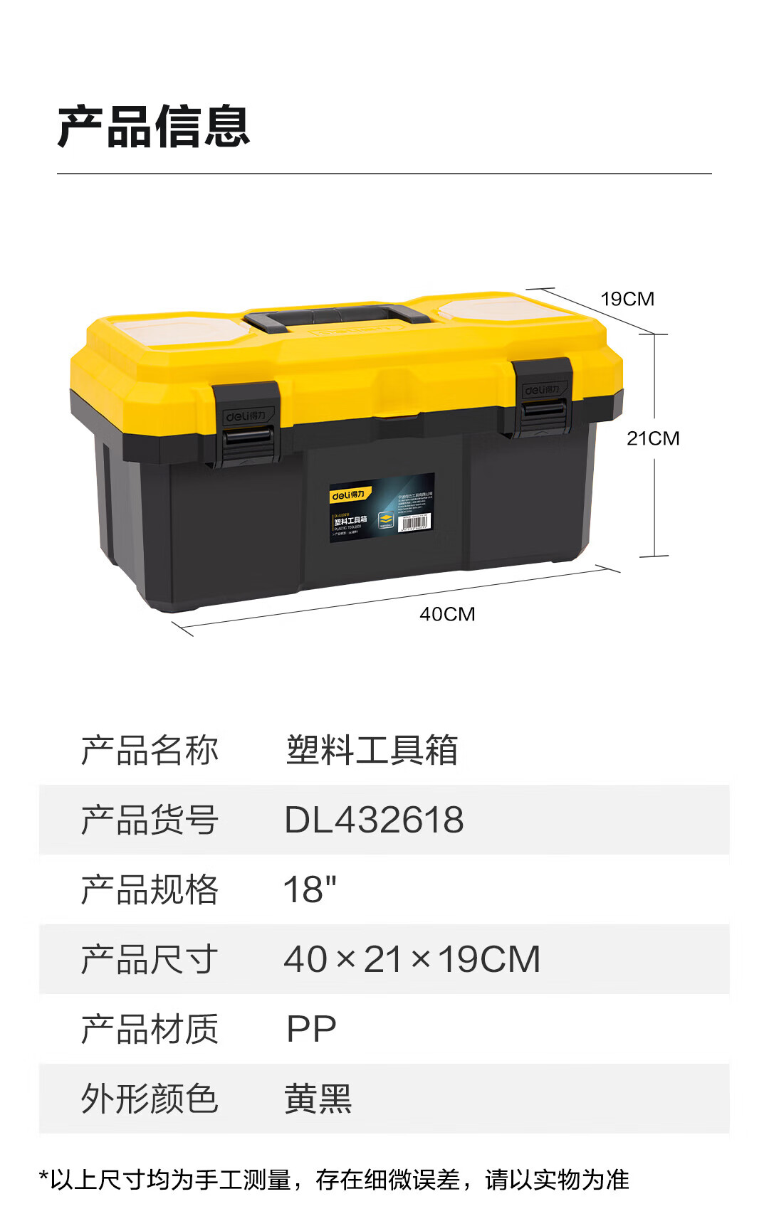 Deli tool box multifunctional portable storage box tool box portable plastic box large size 18 inches DL432618