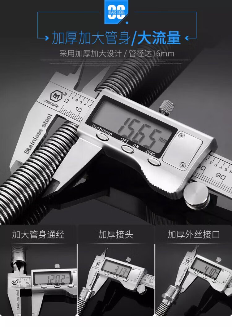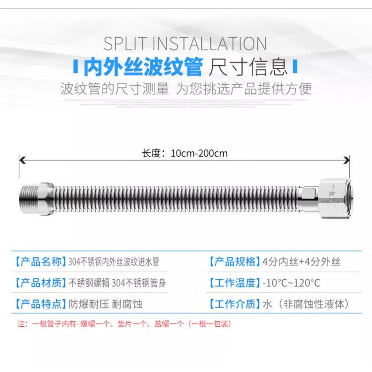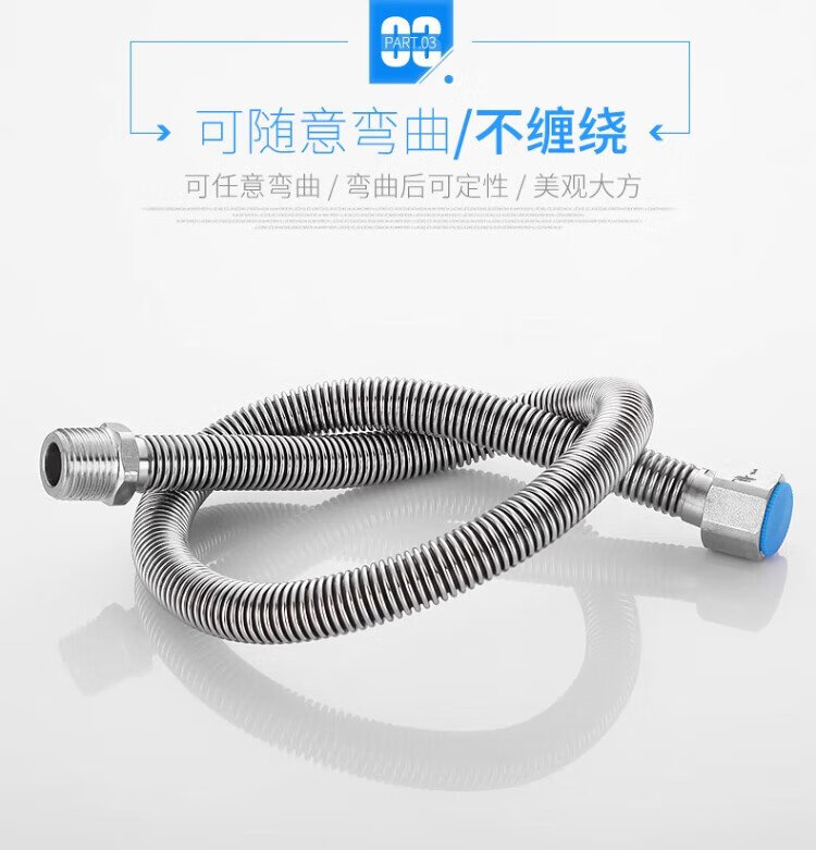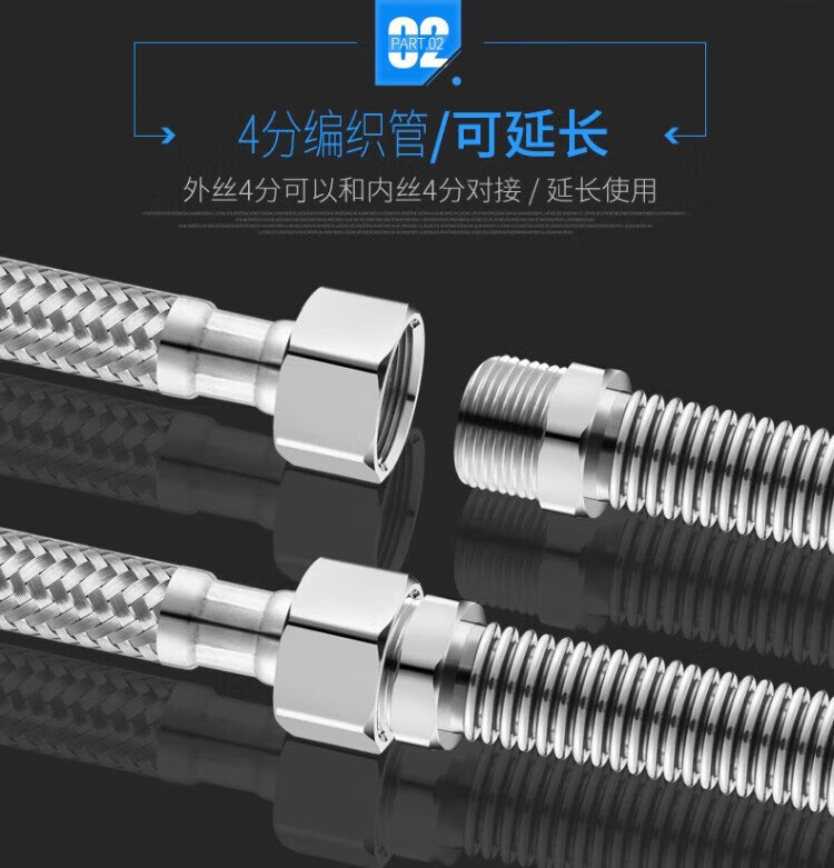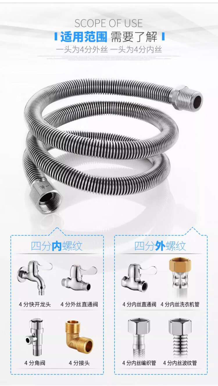 A beautiful 4-minute inner and outer wire extension tube stainless steel water supply hose extension angle valve hot and cold faucet bellows water inlet pipe 50cm