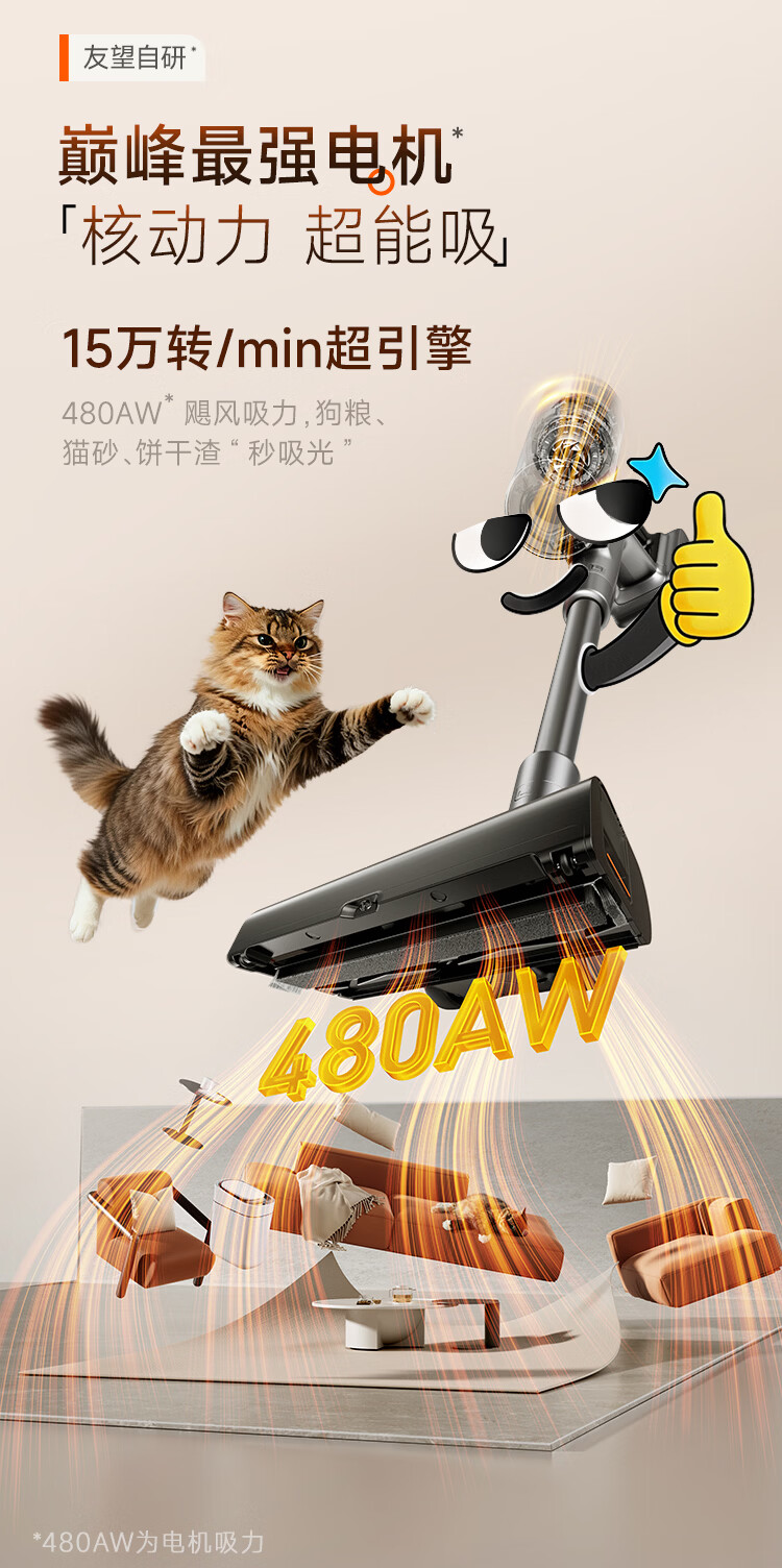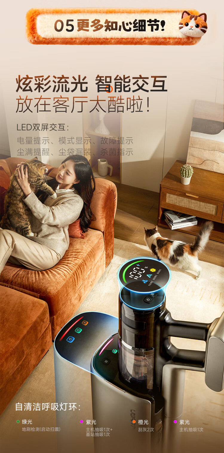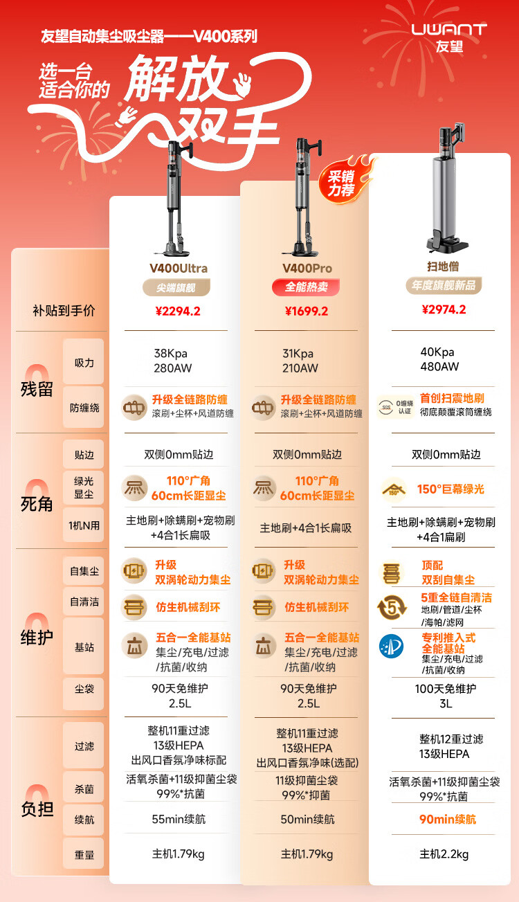 UWANT Vacuum Cleaner Sweeping Monk, same model as Vega, super powerful suction, self-cleaning, self-dust collection, full-chain anti-tangle, home wireless handheld sweeper without hair tangles