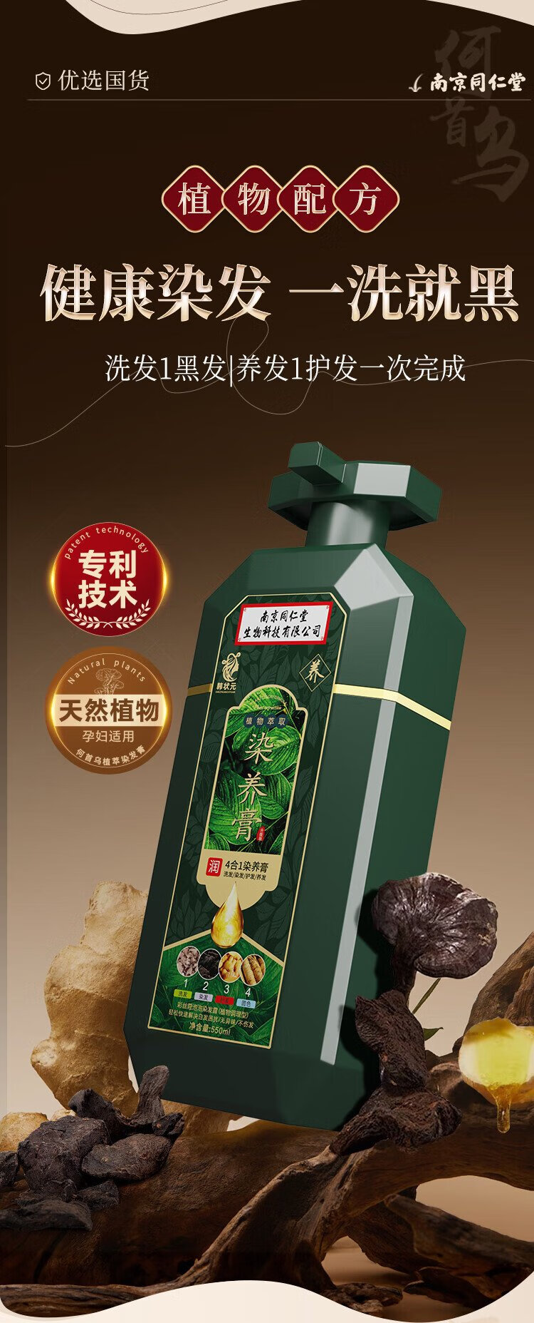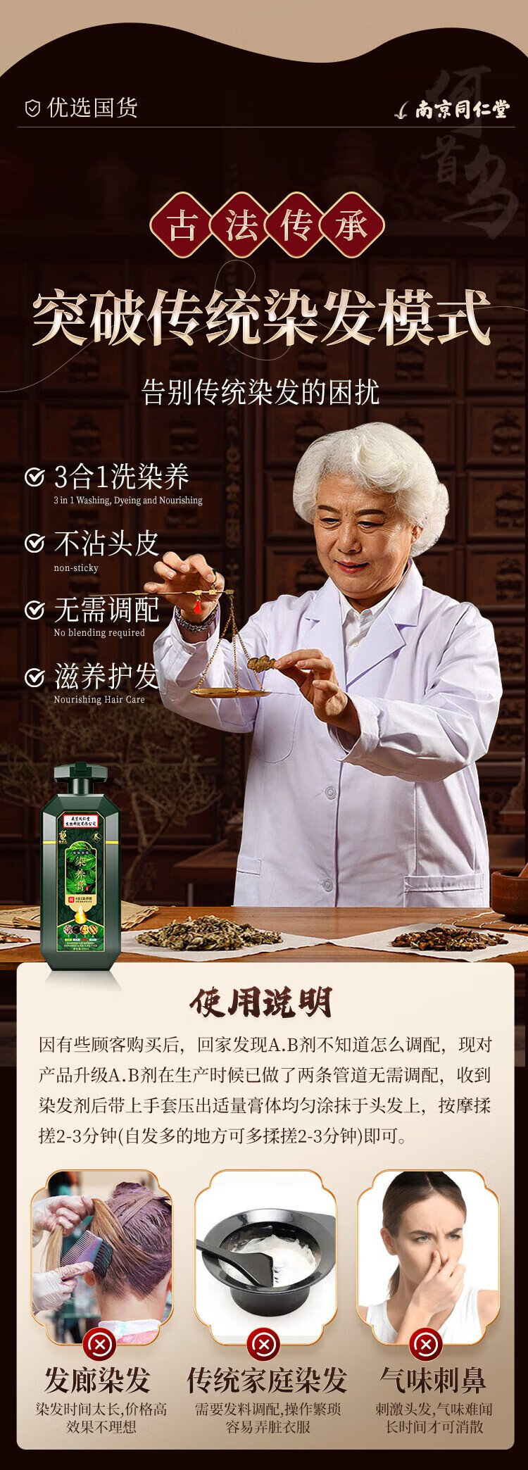 Korean Zhuangyuan hair dye, pure natural plant hair dye, covers white hair, does not fade, does not irritate, does not stick to the scalp, chestnut brown