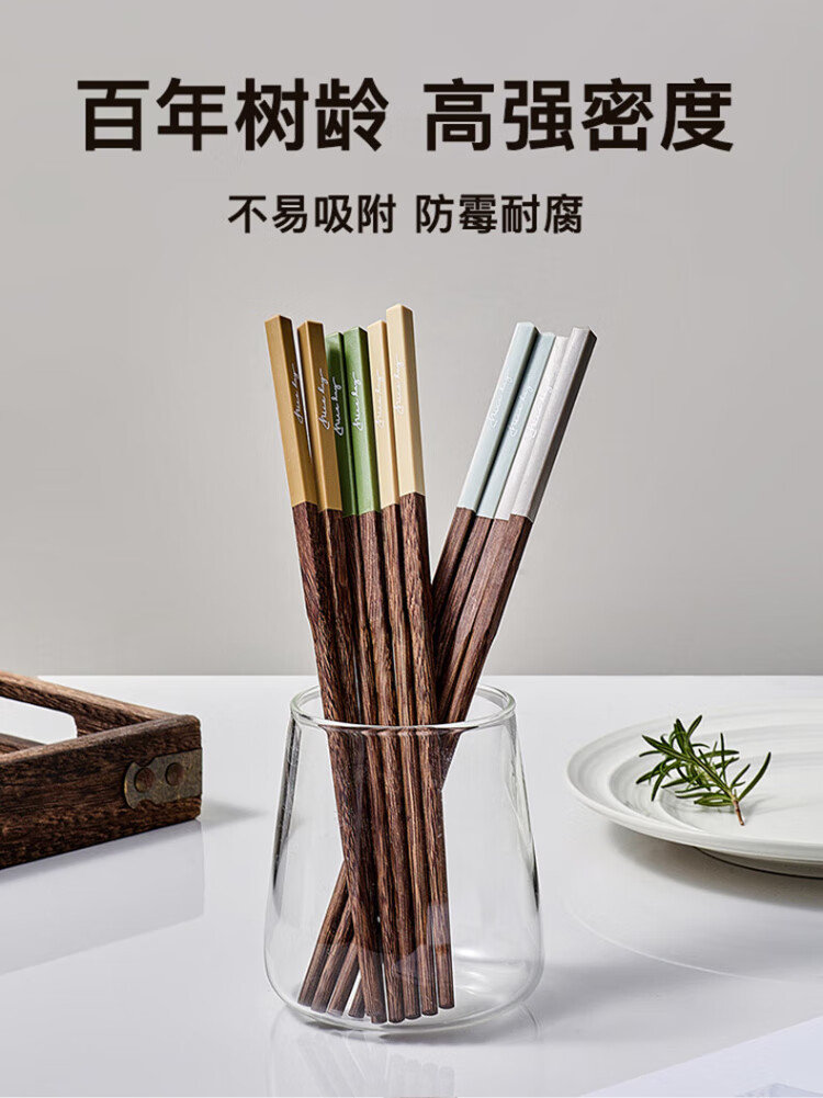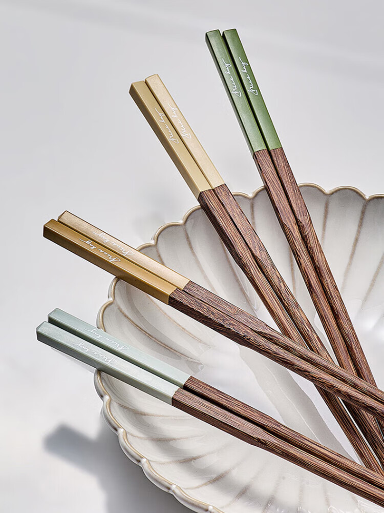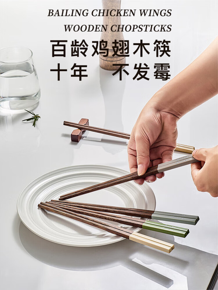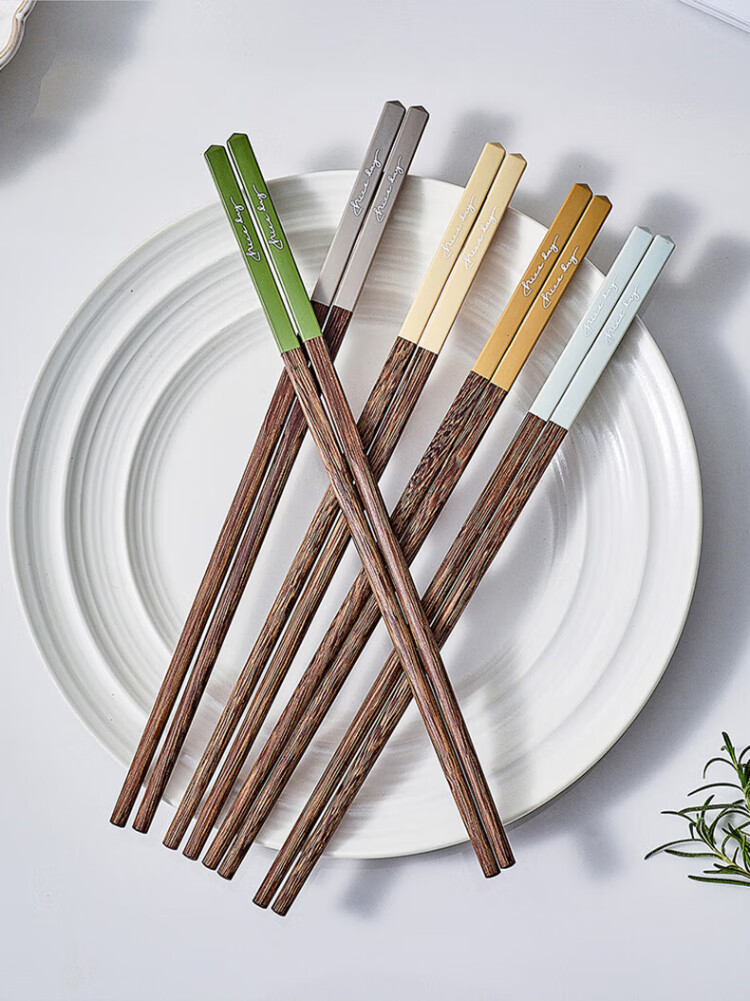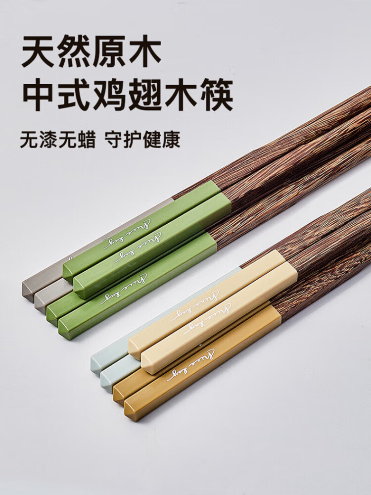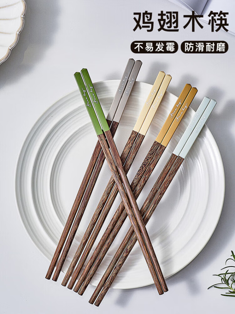 TREEJACK chicken wing solid wood inlaid chopsticks for restaurants, home paint-free, wax-free, anti-slip, anti-scalding, mildew-proof, one person, one chopstick, serving serving chopsticks