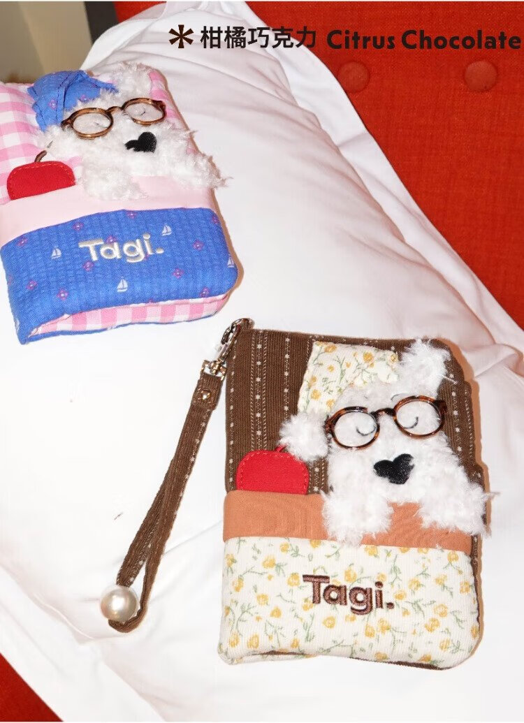 Tagi.Puppy Passport Holder Good Night Cute Card Holder ID Bag Portable Christmas Gift-Citrus Chocolate