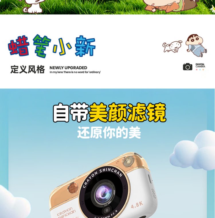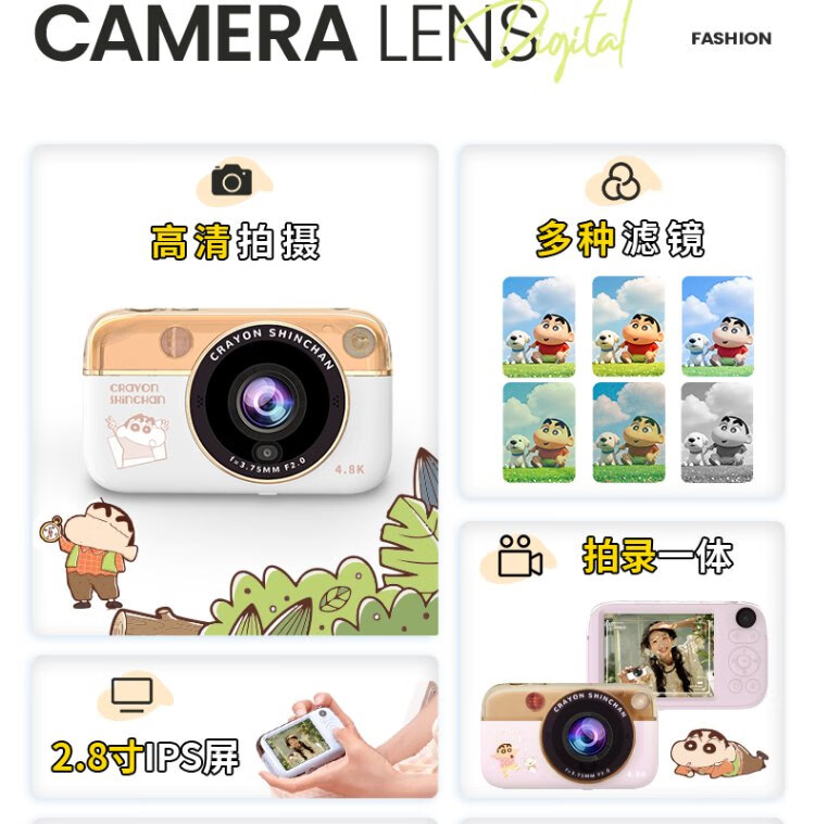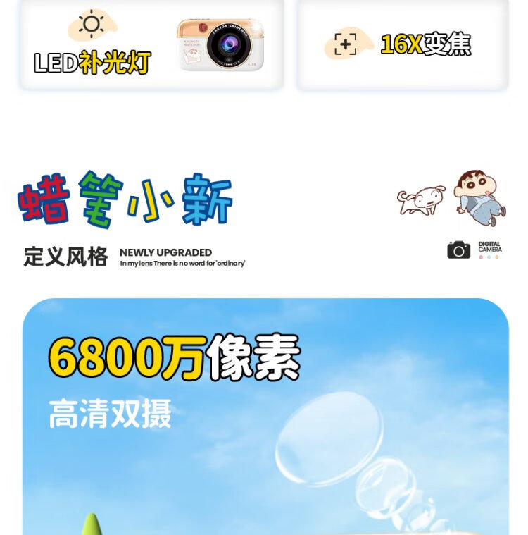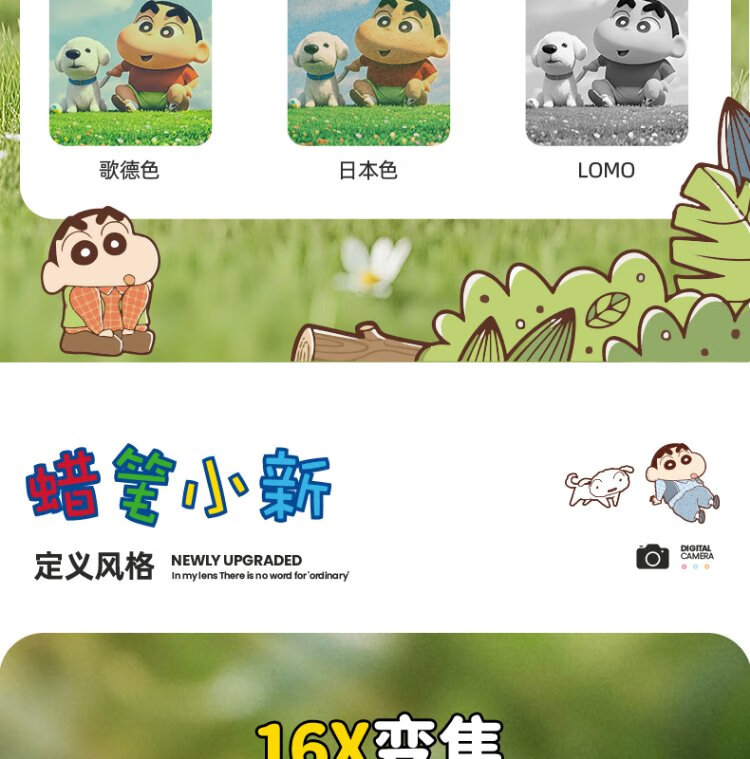 Black Cat Diary Crayon Shin-chan LB16 joint digital camera ccd student retro campus small camera vlog entry-level shooting cute children's card portable polaroid gift blue 128G