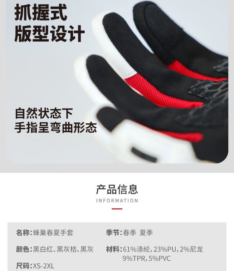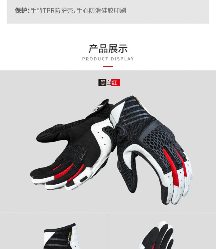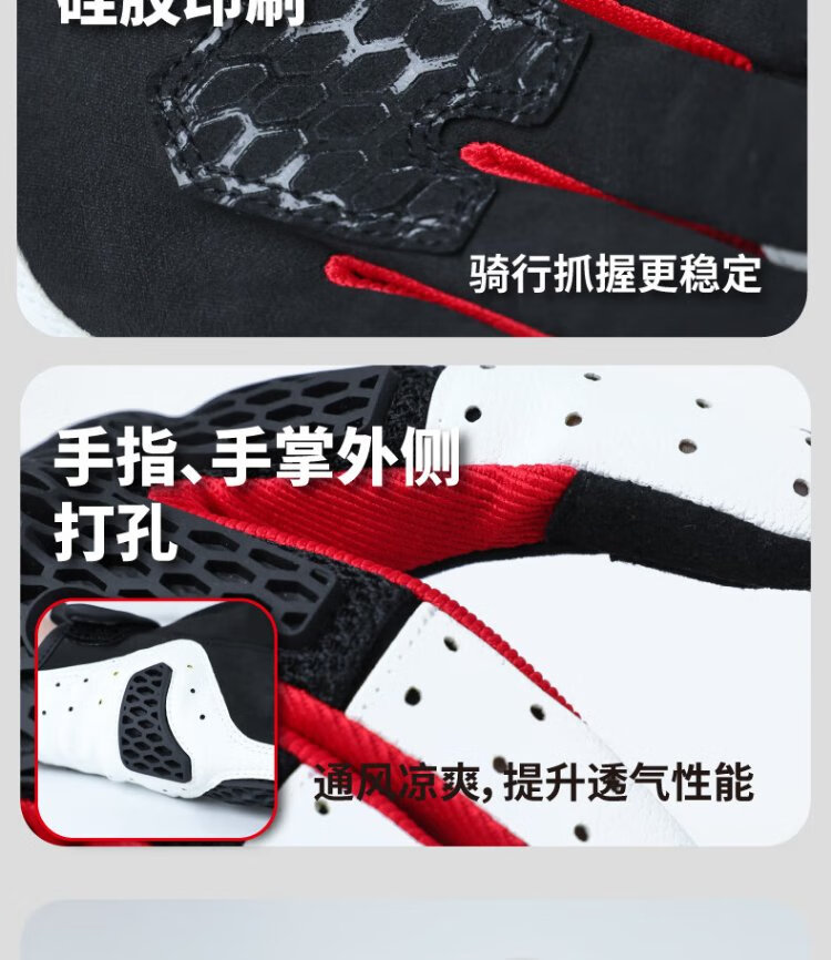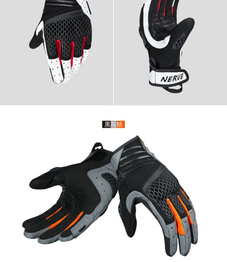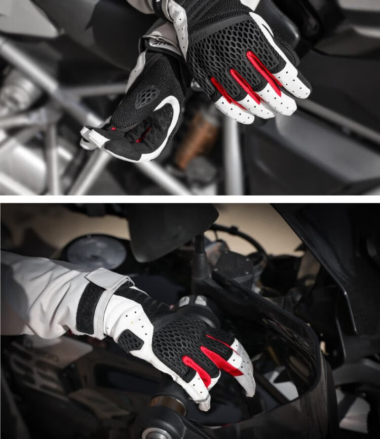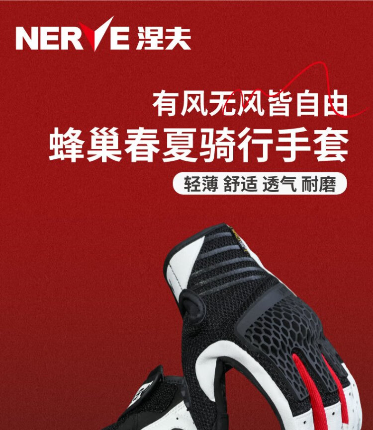 NERVE Motorcycle Riding Gloves for Men and Women Summer Protective Ventilation Breathable Touch Screen Black/White/Red L