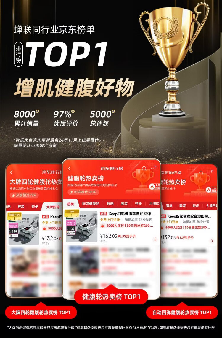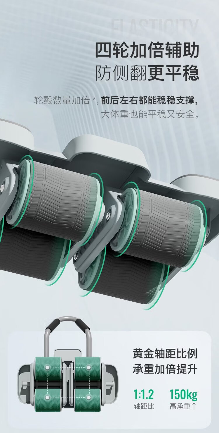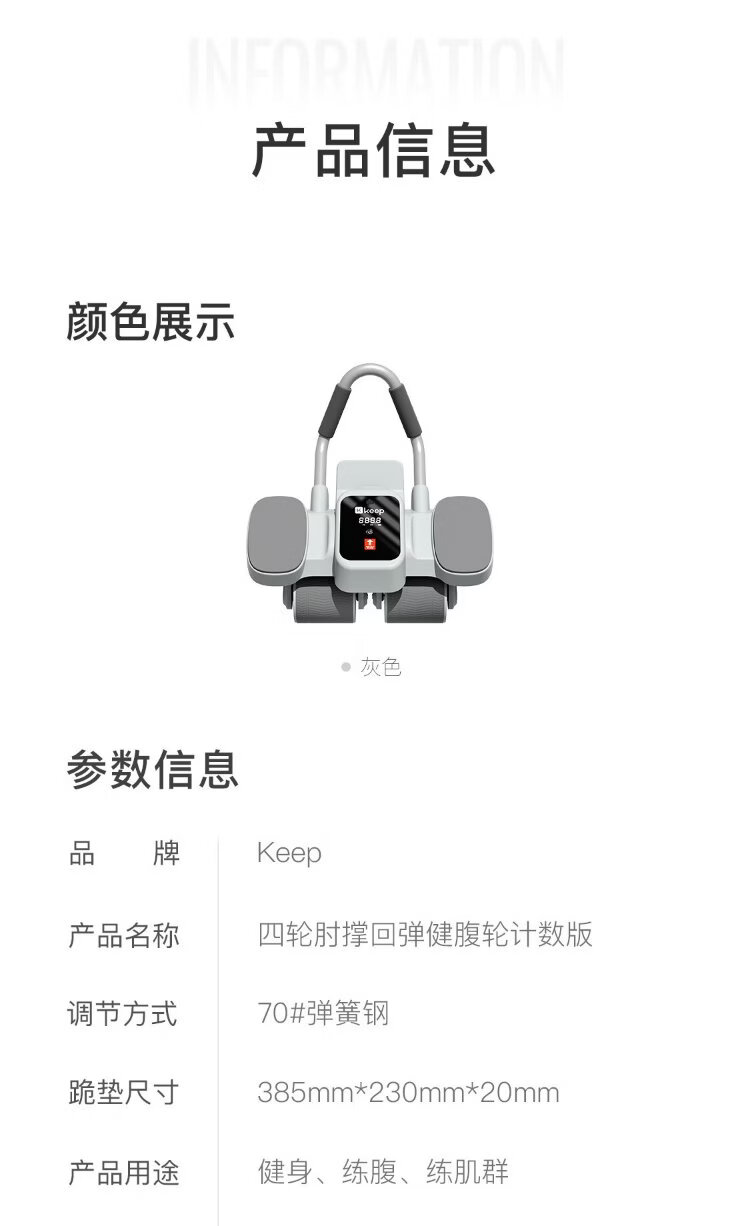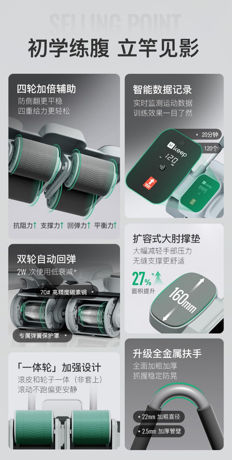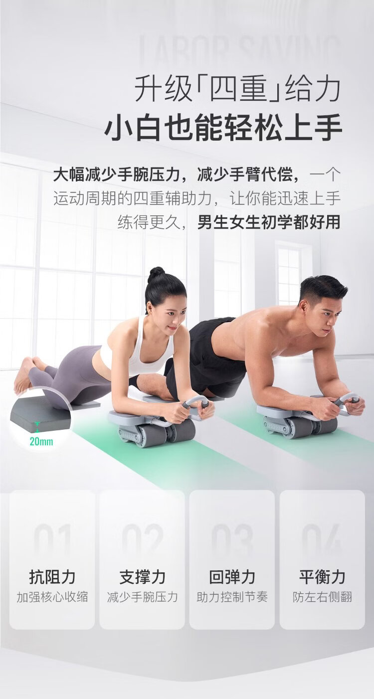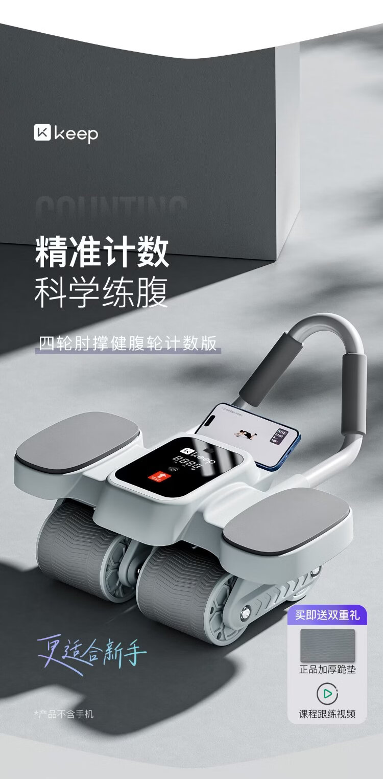 Keep Abdominal Wheel Abdominal Muscle Wheel Intelligent Counting Four-Wheel Automatic Rebound Belt-Assisted Abdominal Roll Abdominal Muscle Trainer Fitness Device