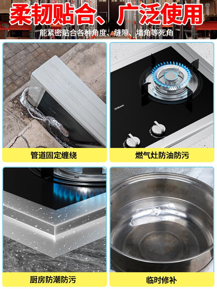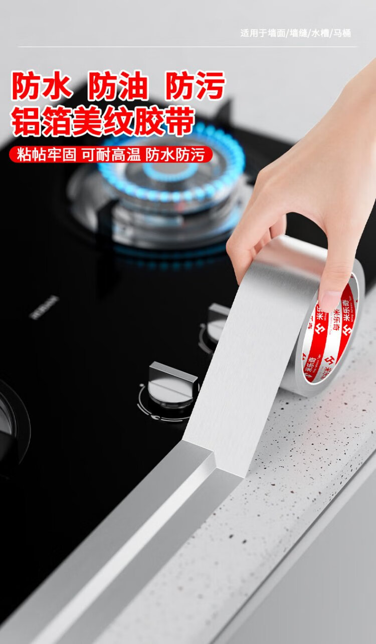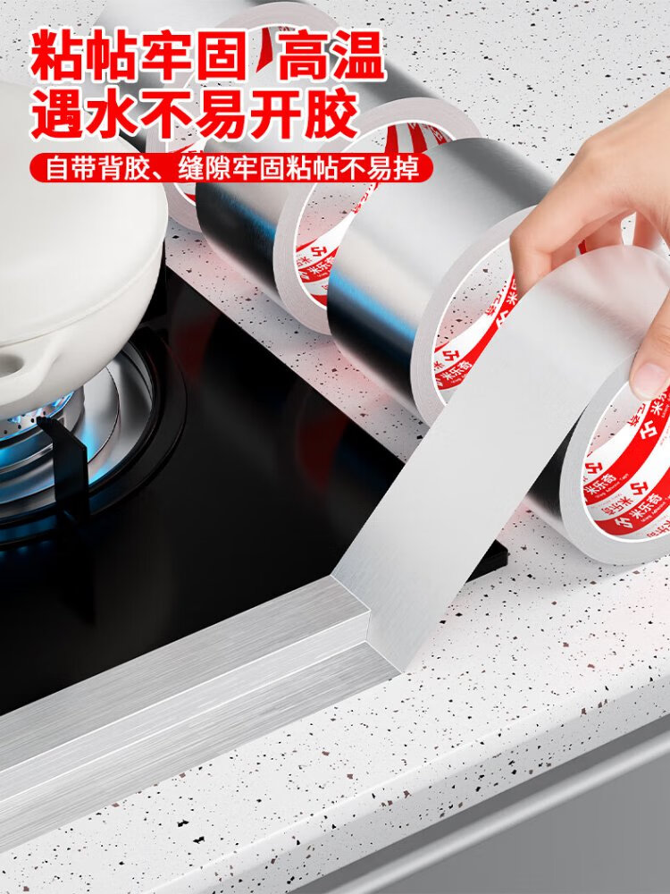 Milechi aluminum foil tape 4.8cm*20m silver sink waterproof pipe insulation sealing kitchen high temperature resistant tin foil tape kitchen stove waterproof and oil-proof sticker