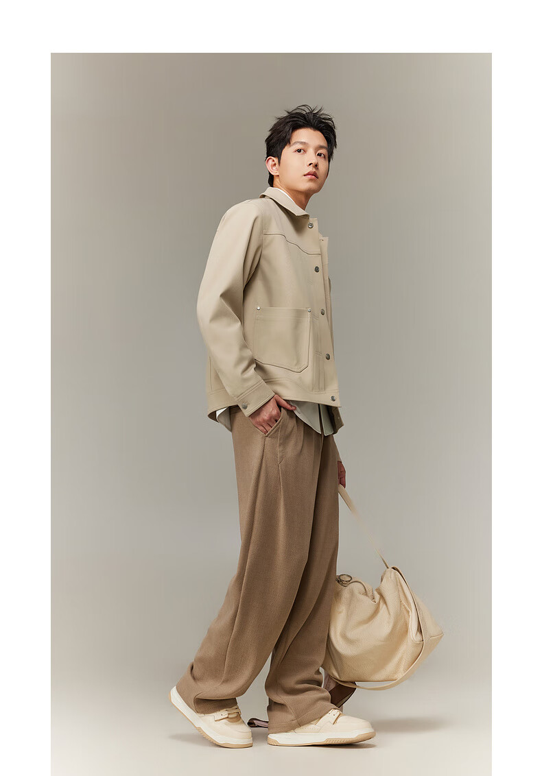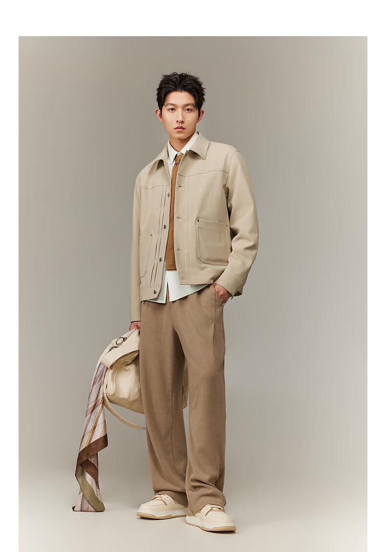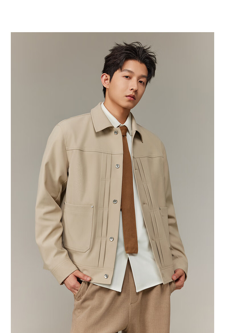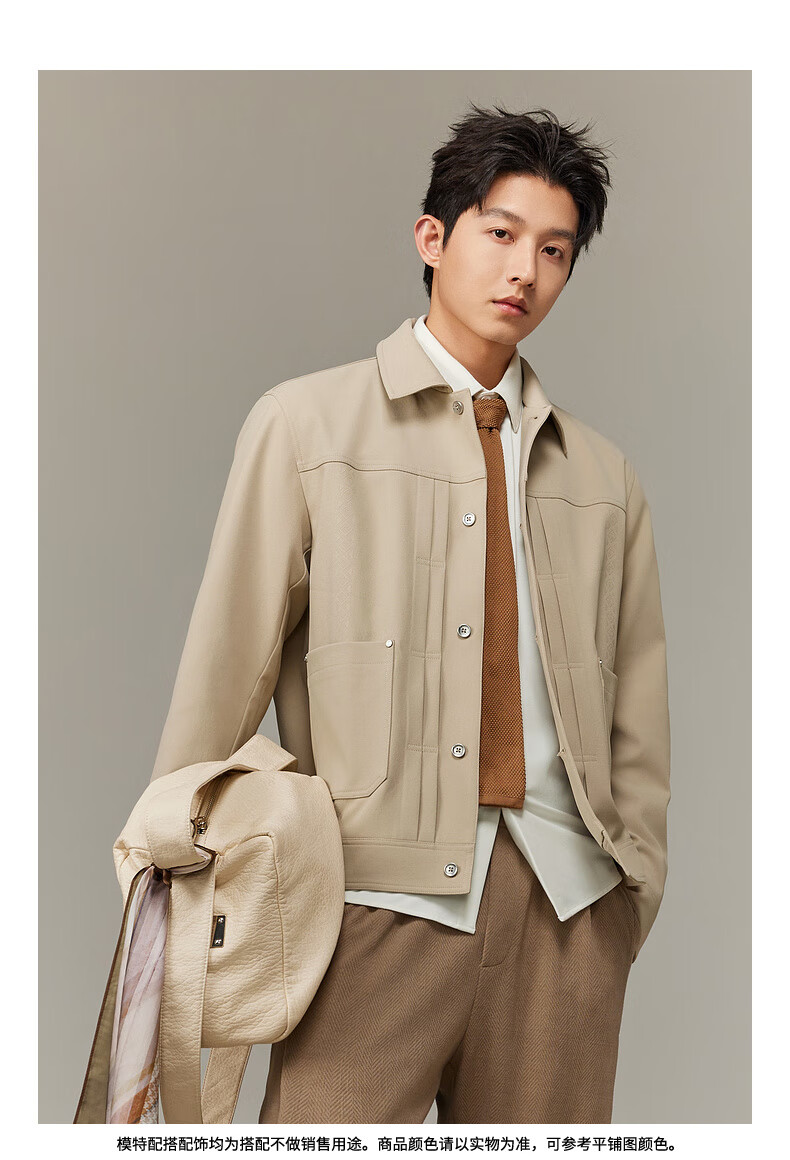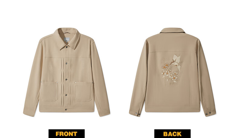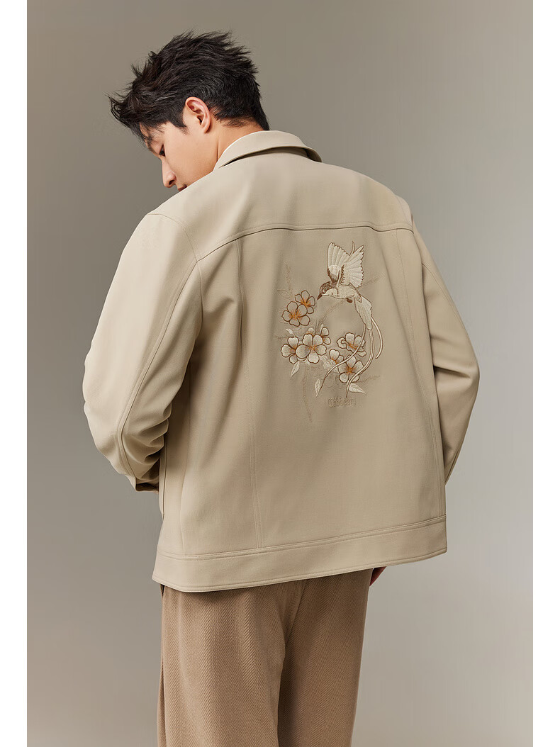 CABBEEN polyester concealed jacket men's back heavy industry flower and bird embroidery craft daily casual winter lapel jacket