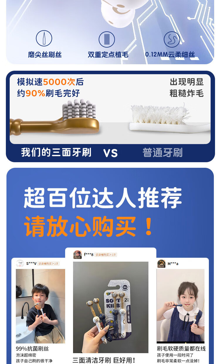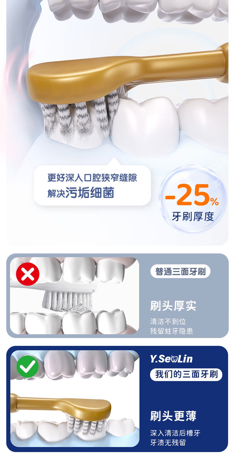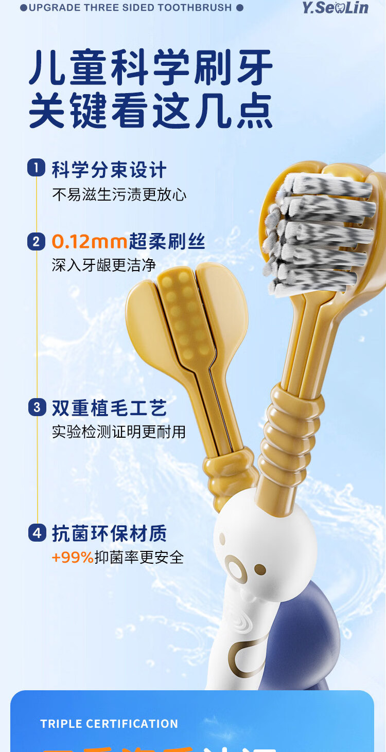 Yinyan forest children's toothbrush with soft bristles for 6-12 years old, special three-sided soft bristles for teenagers 12-15 years old, Sam's same style