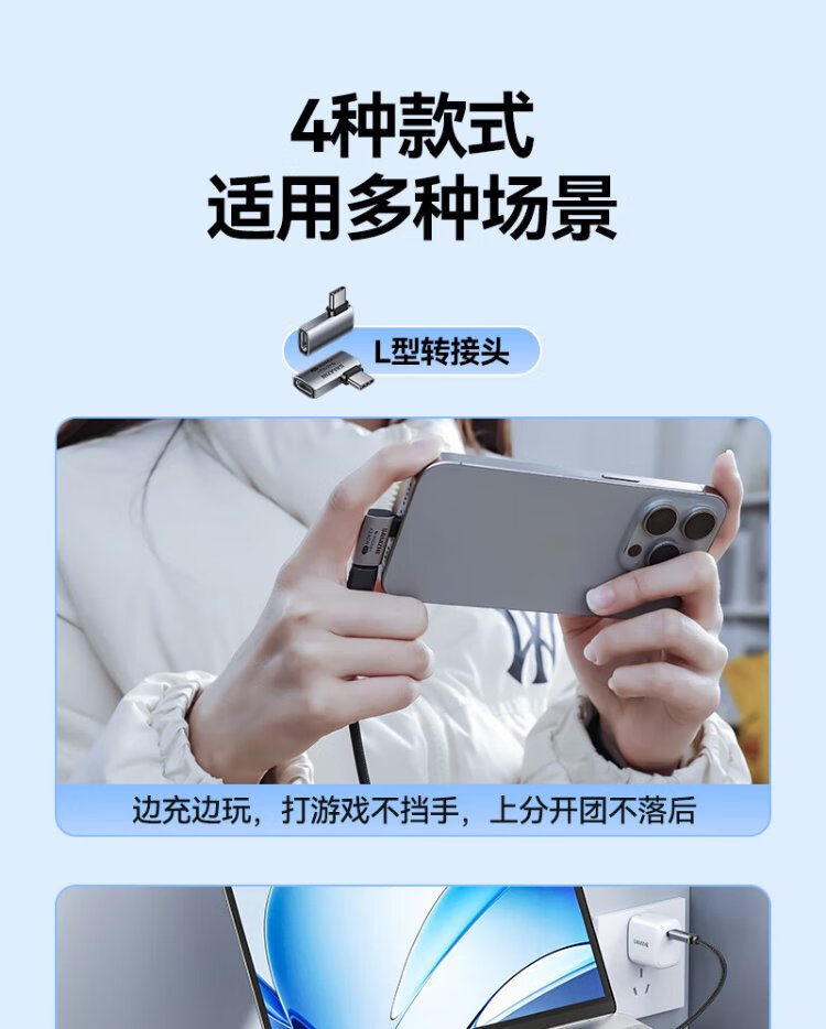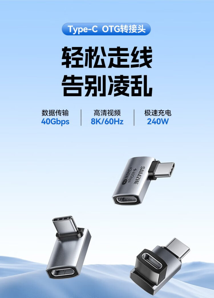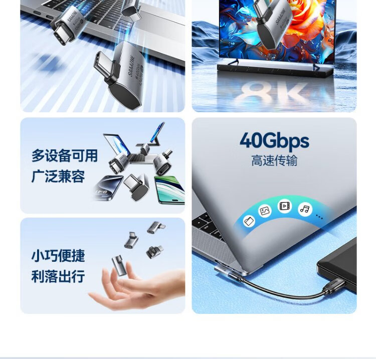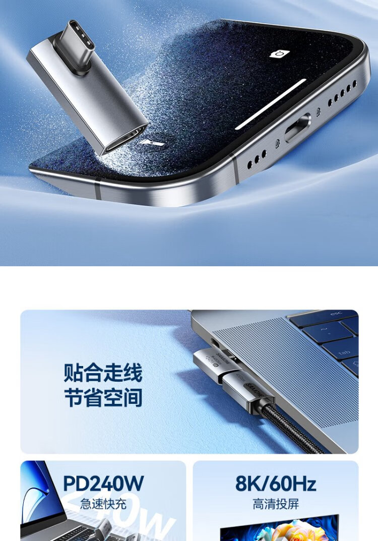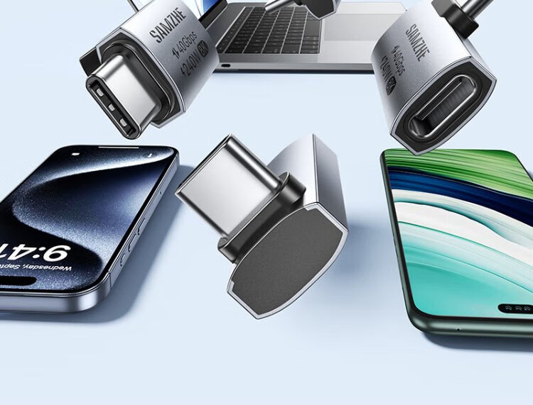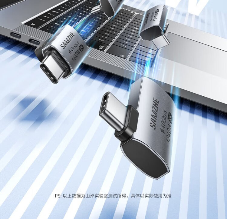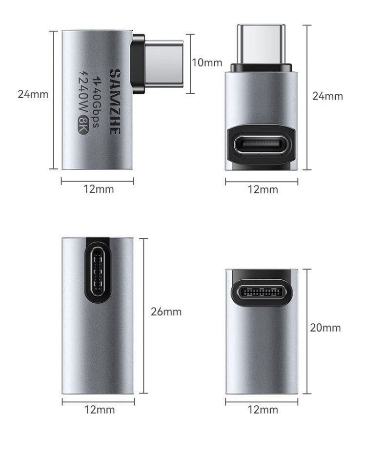 Shanze Type-C Elbow Adapter Compatible with Thunderbolt 4 Full-Function USB4 Data Cable Male to Female L-Type 90 Degree Suitable for Android and Apple 17/16/15 Mobile Phones and Computers UC41-Z2