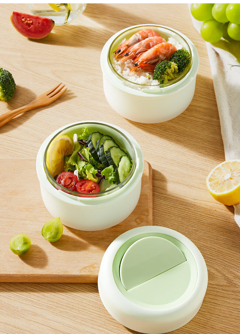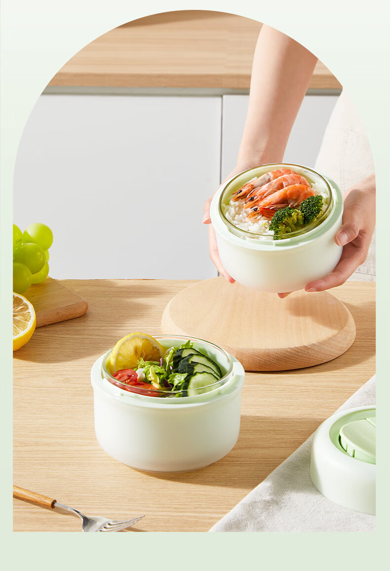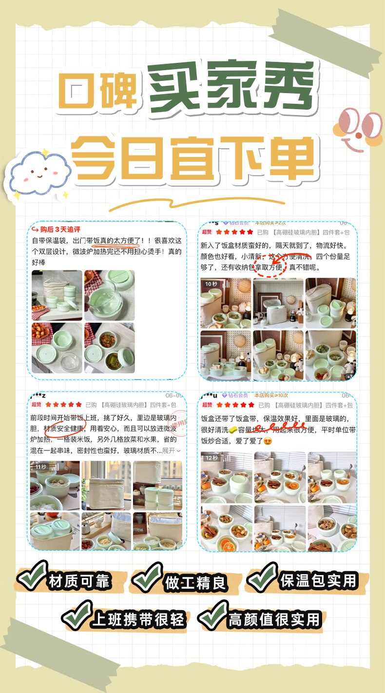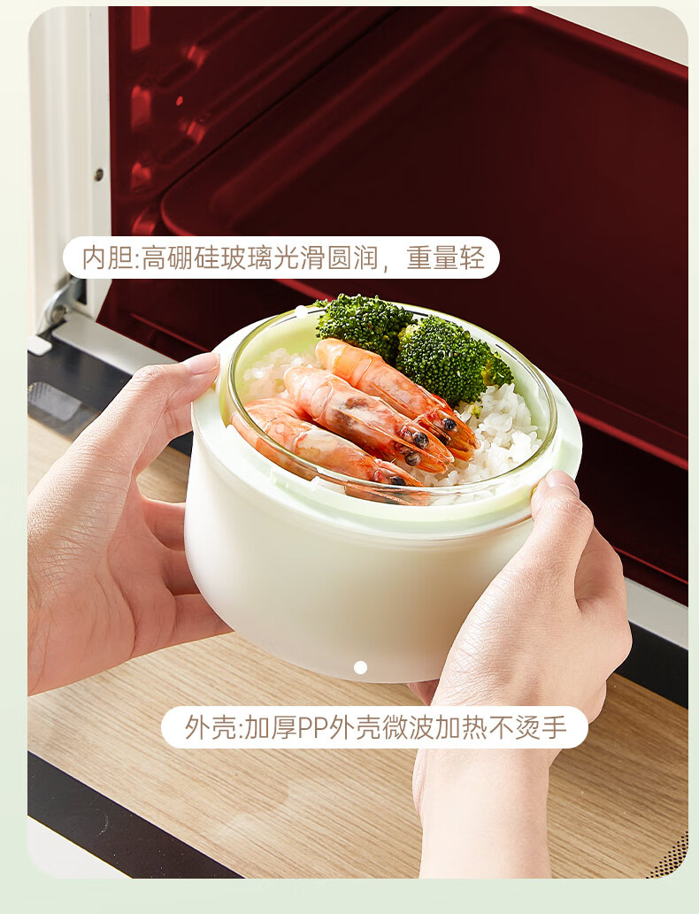 Double-gun insulated lunch box with high borosilicate glass liner that can be heated in a microwave oven, a four-piece set of portable lunch boxes for office workers and students