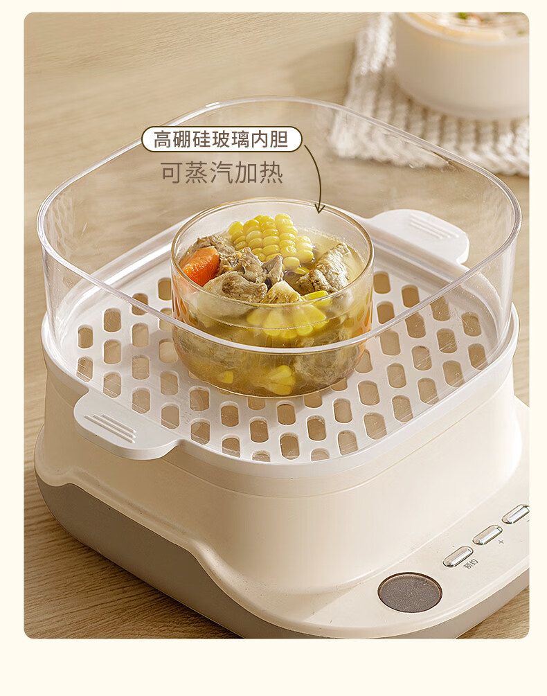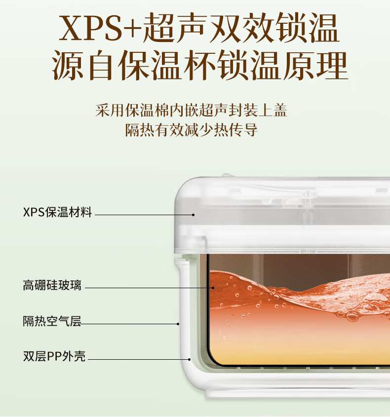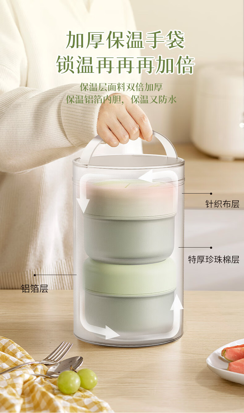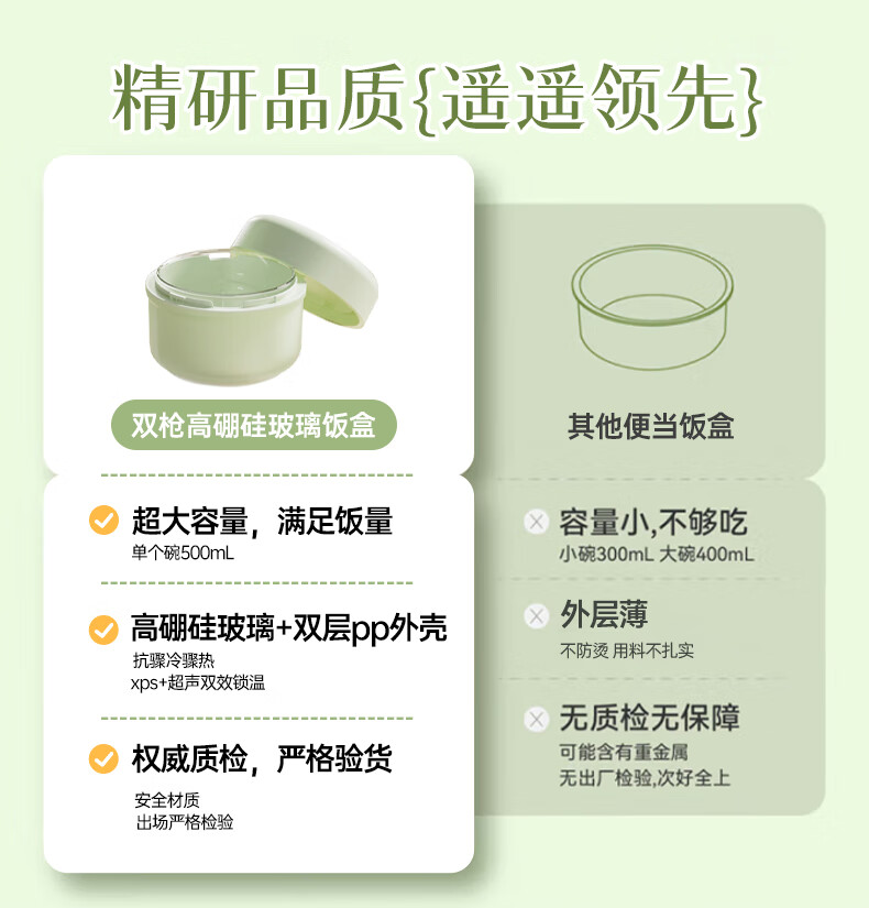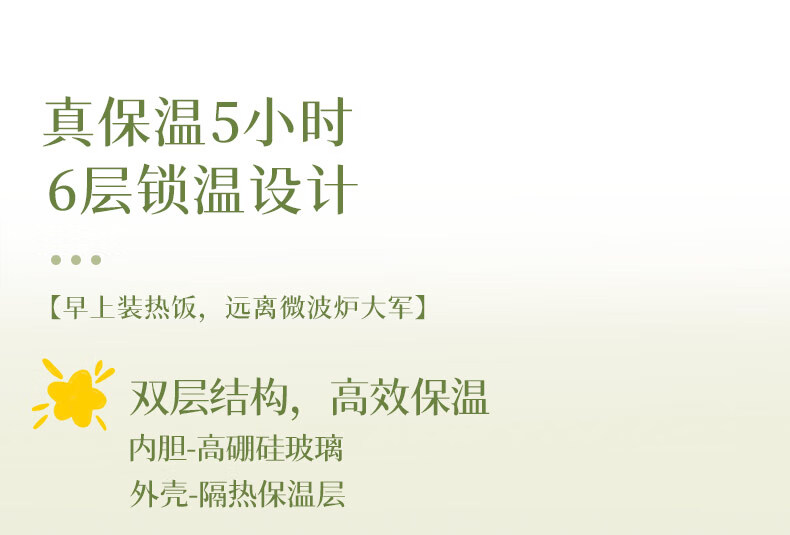 Double-gun insulated lunch box with high borosilicate glass liner that can be heated in a microwave oven, a four-piece set of portable lunch boxes for office workers and students