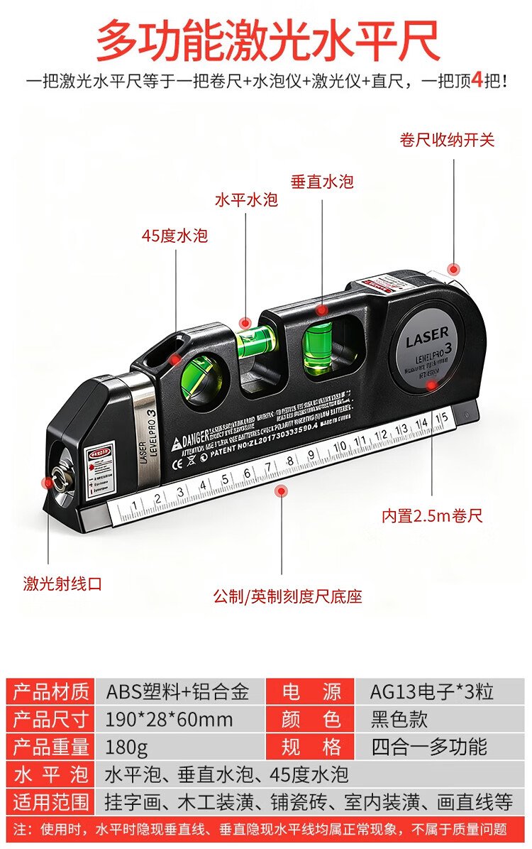 Padilin laser level multifunctional infrared level high precision with tape measure four-in-one laser line meter