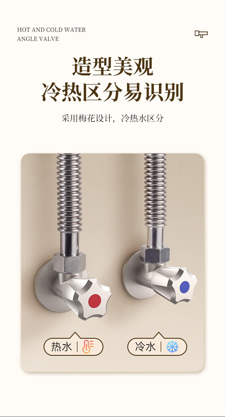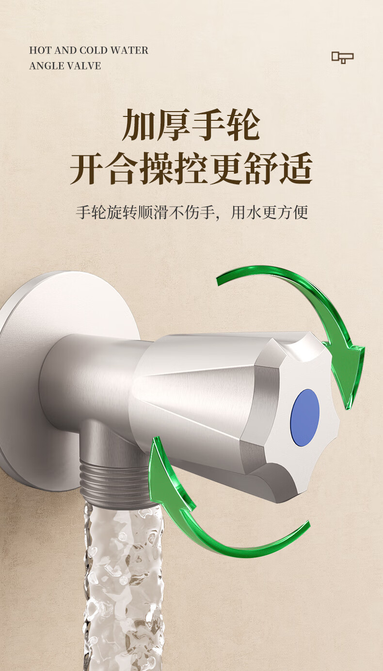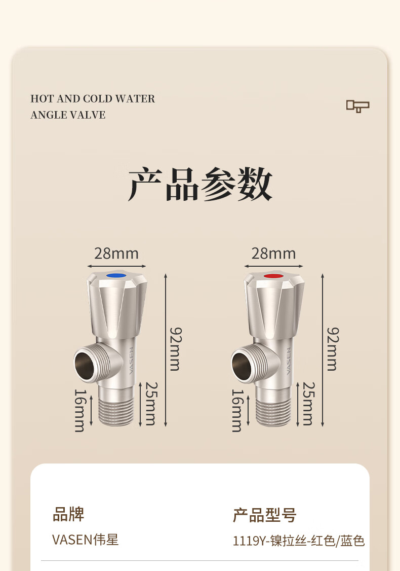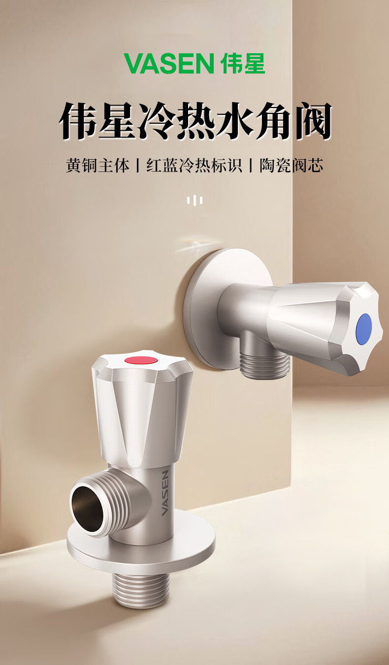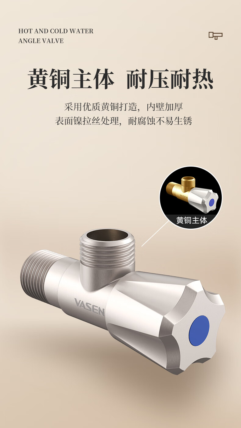 Weixing Brass Triangle Valve 4 Points Cream Air Cold Hot Water Washbasin Sink Washing Machine Ceramic Valve Core 1119Y-Nickel Brushed-Blue