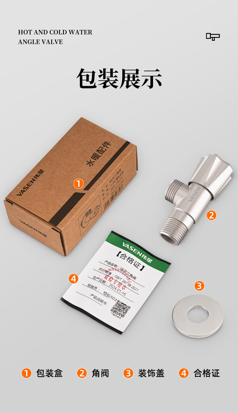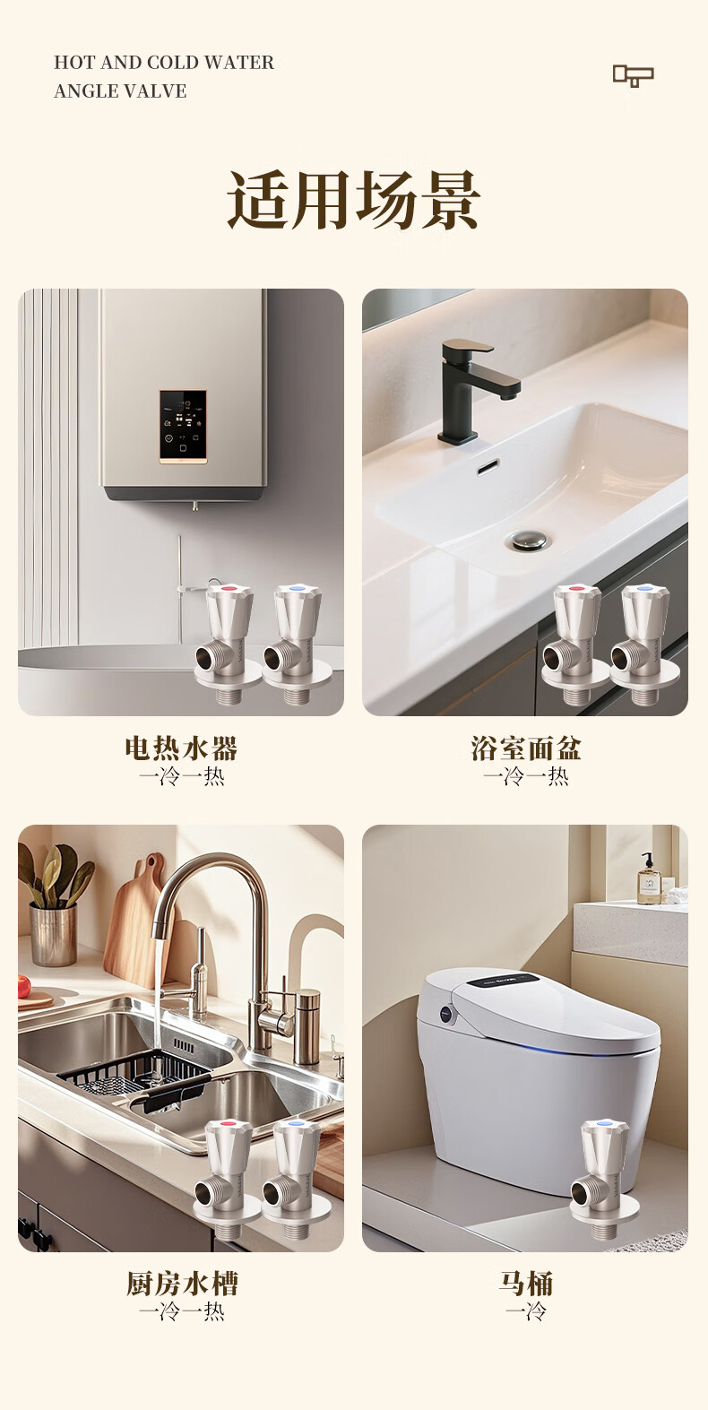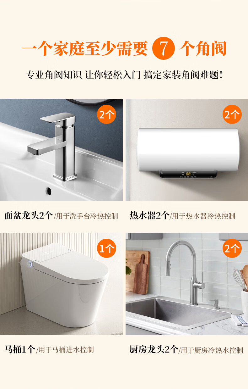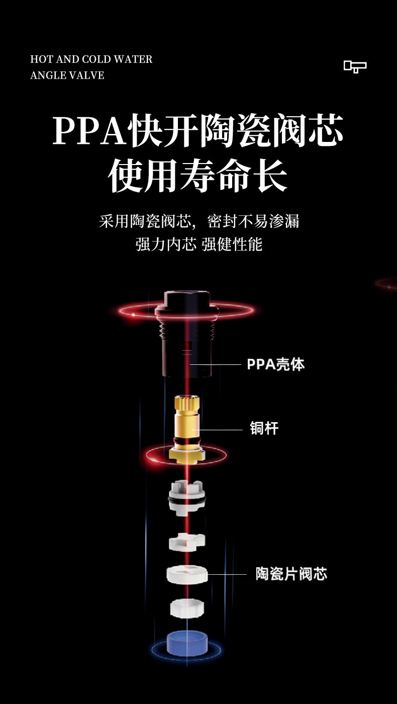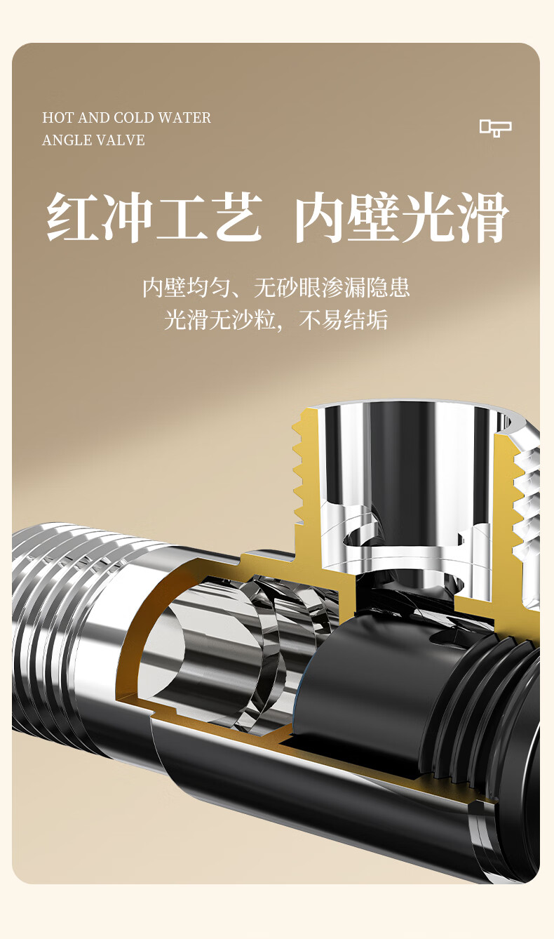 Weixing Brass Triangle Valve 4 Points Cream Air Cold Hot Water Washbasin Sink Washing Machine Ceramic Valve Core 1119Y-Nickel Brushed-Blue