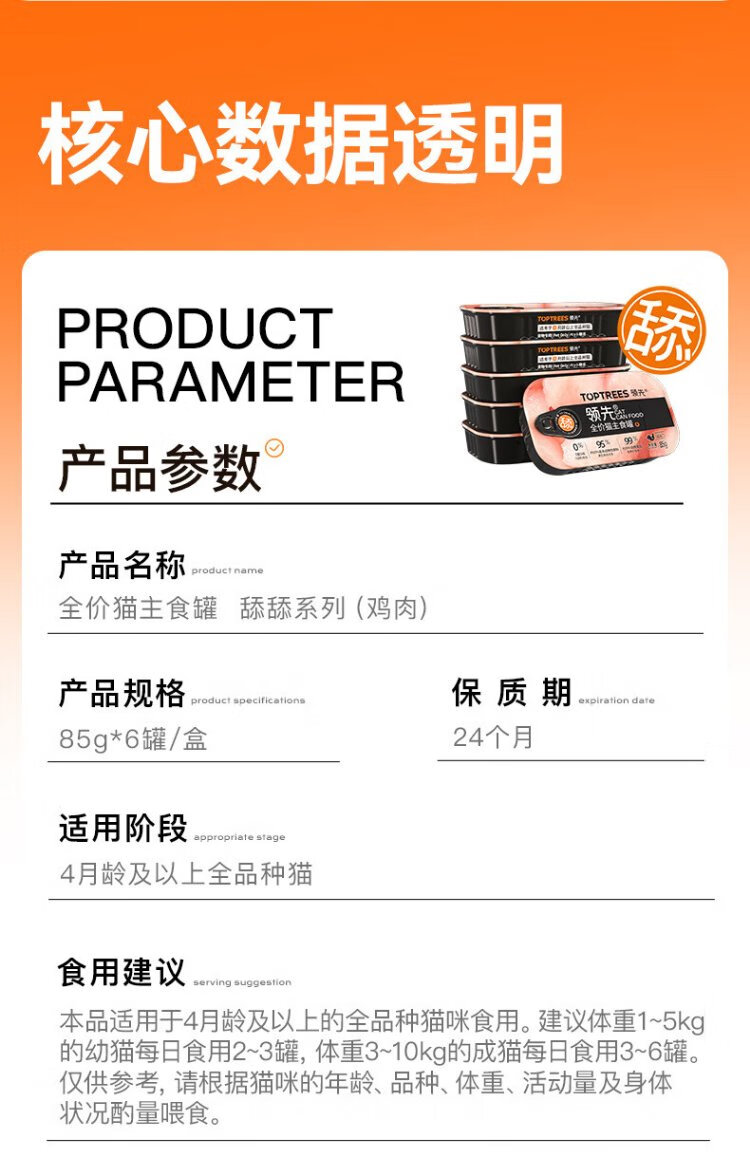 Leading staple cat food canned cat snacks wet food grain-free and glue-free ice cream licking texture chicken flavor 85g*6 cans