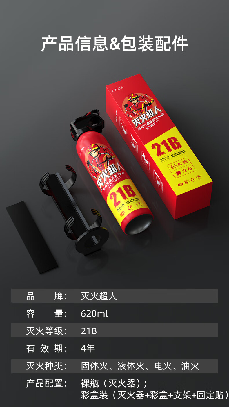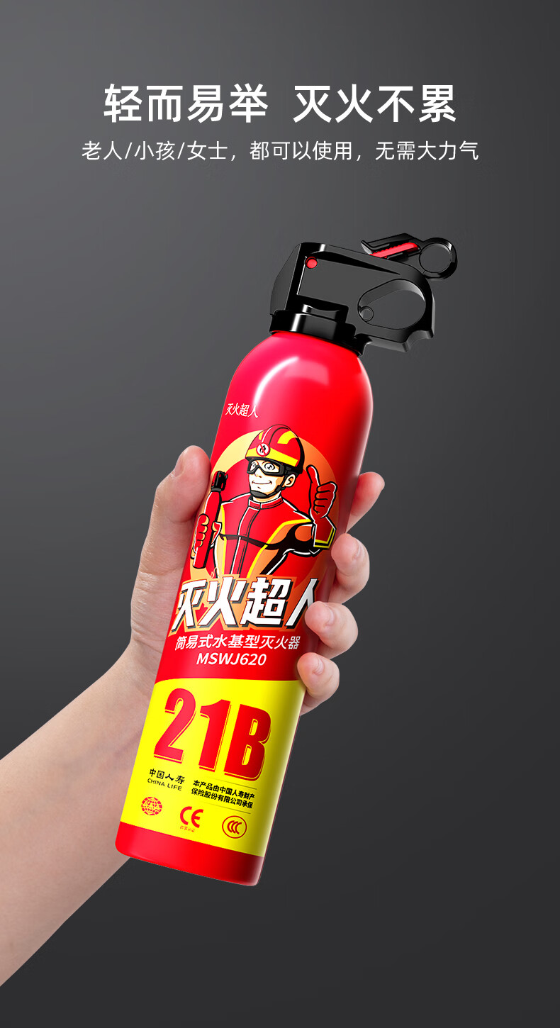 Fire-fighting Superman vehicle-mounted fire extinguisher water-based household small car dealer-specific portable fire extinguisher national fire 3c certification