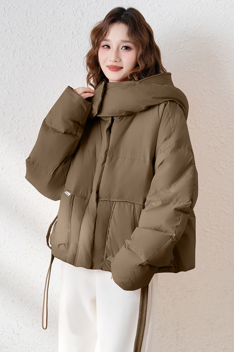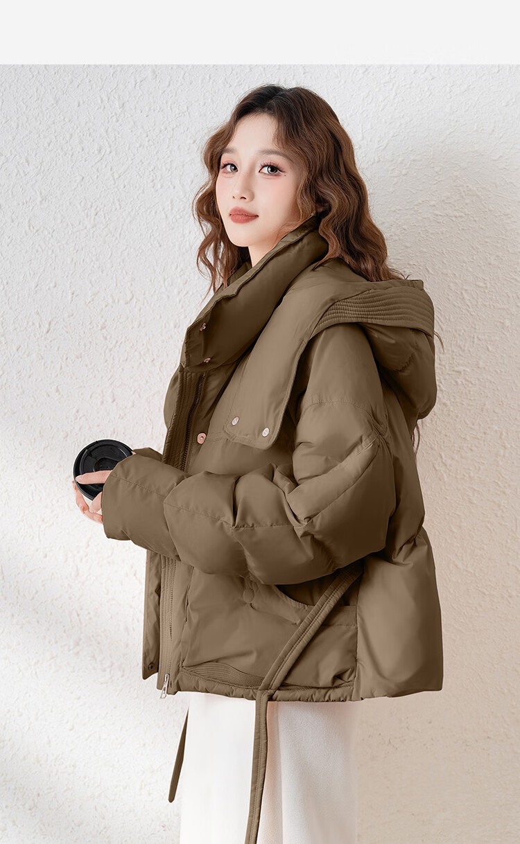 TonLion 2025 Winter Women's Short Labeled Hooded Down Jacket