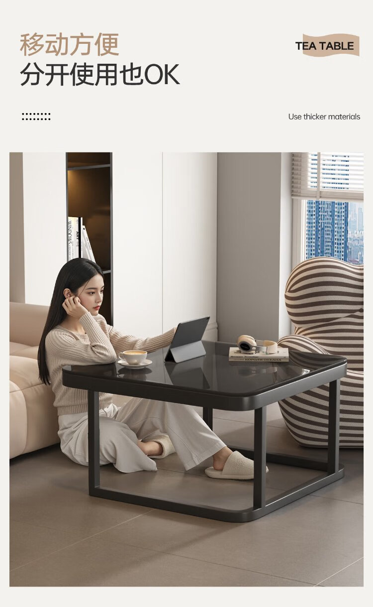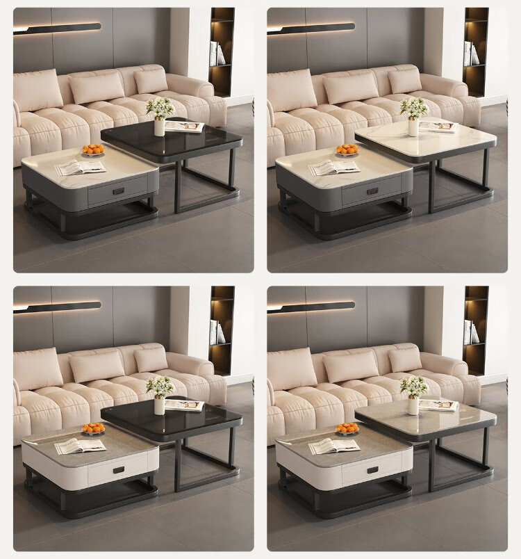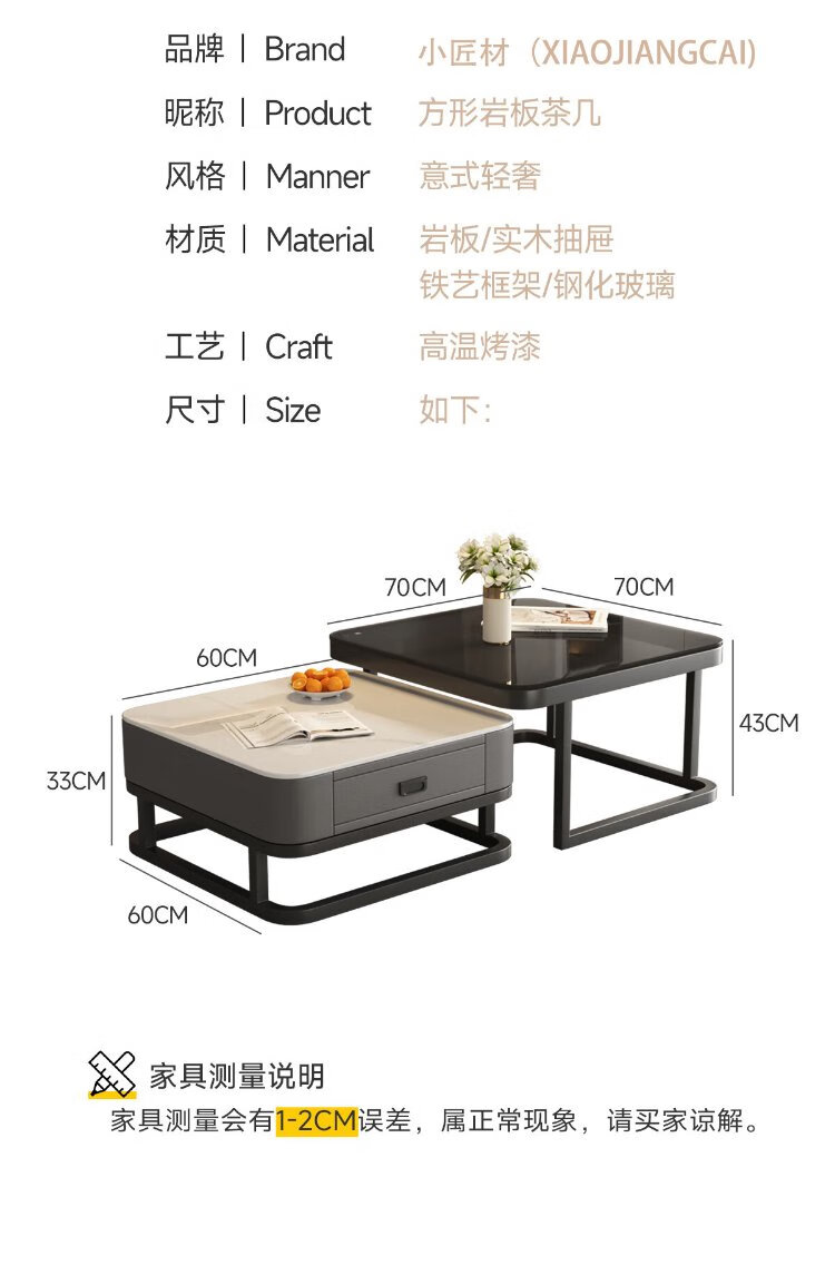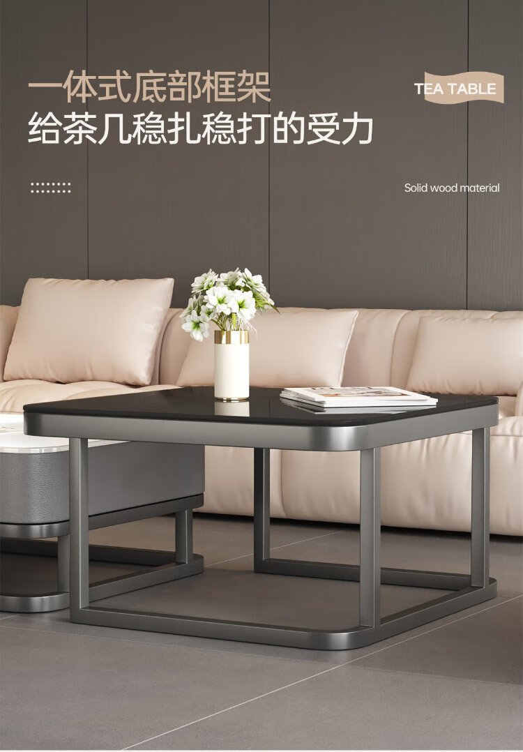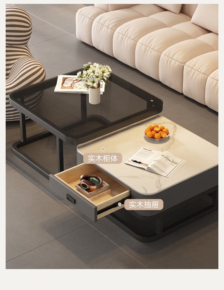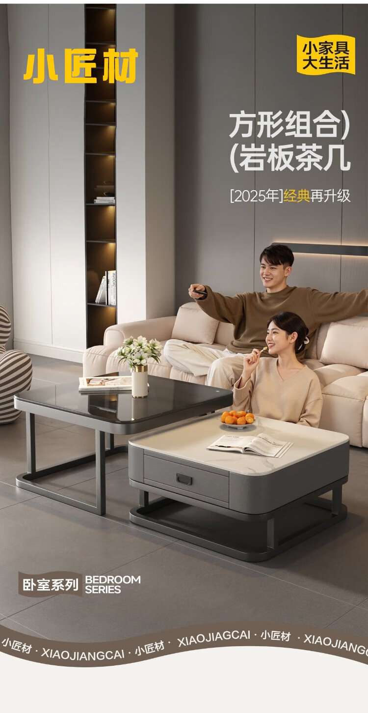 Small craftsman material slate coffee table small apartment living room home light luxury high-end 2025 new simple square combination coffee table gray and white