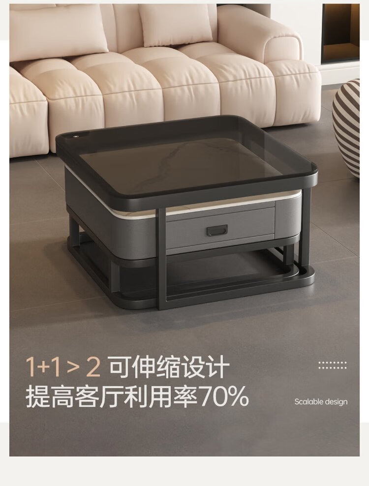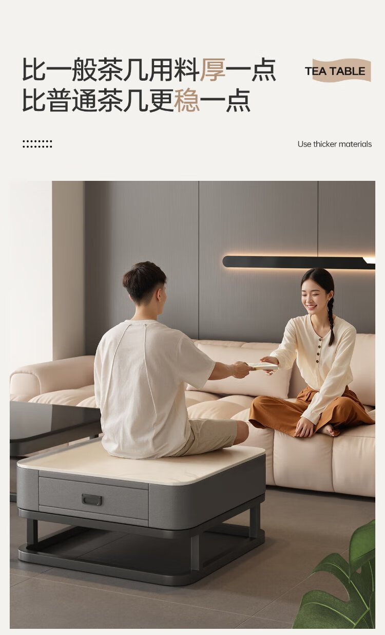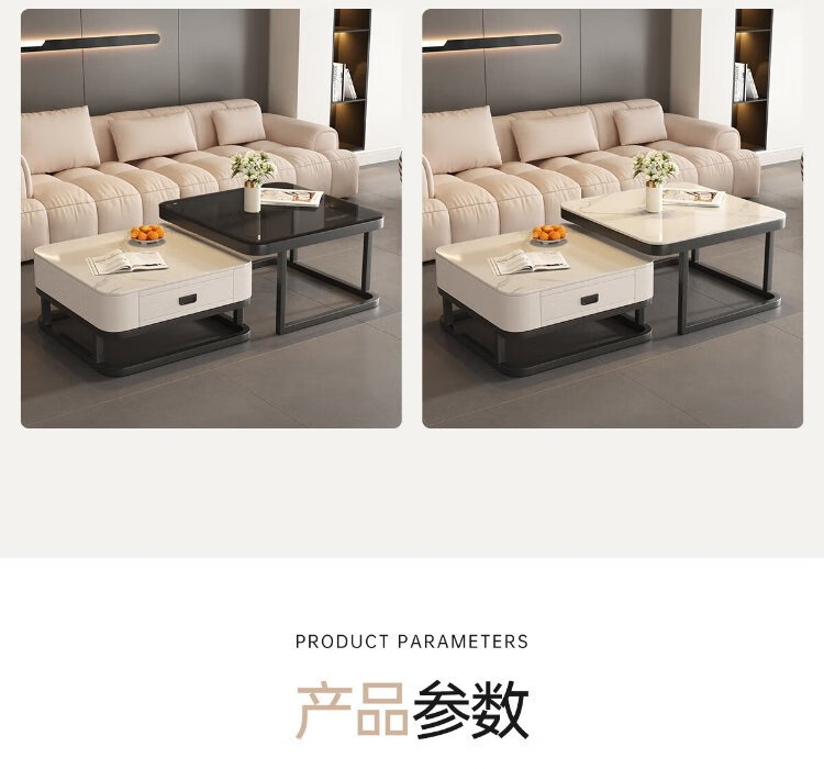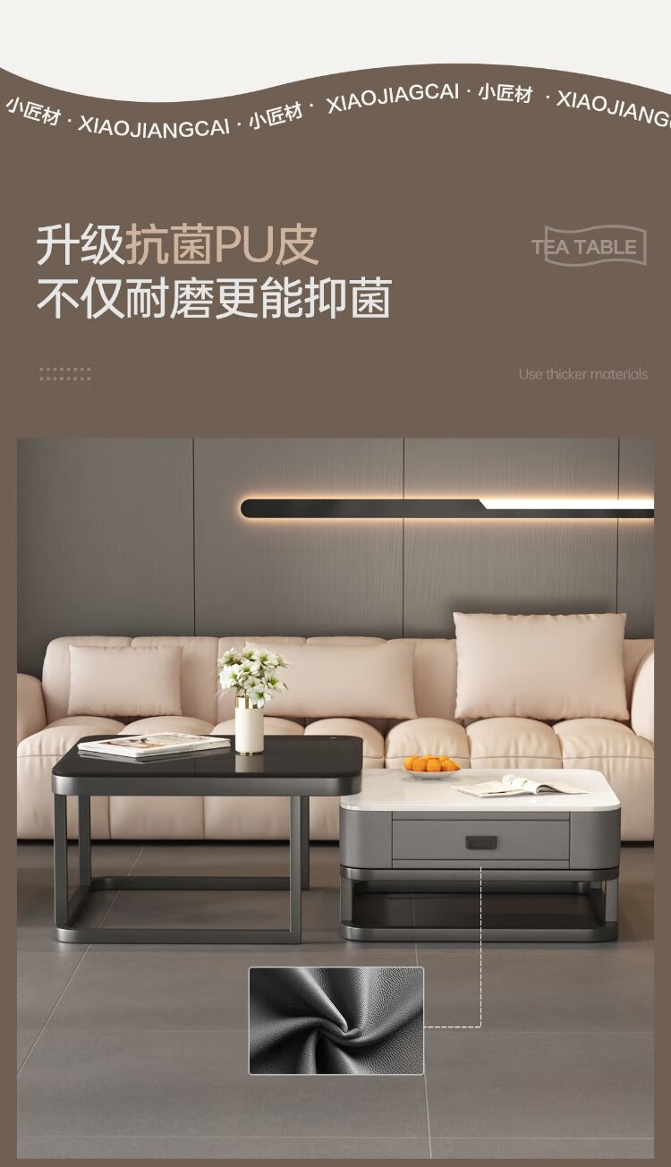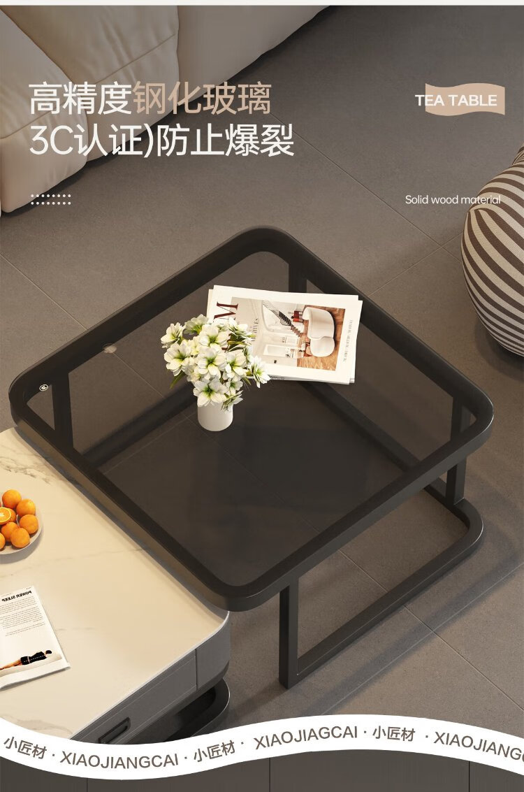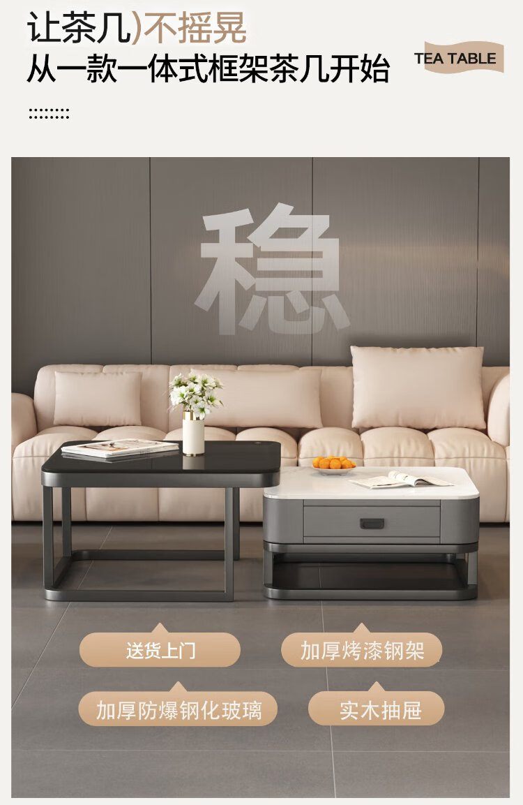Small craftsman material slate coffee table small apartment living room home light luxury high-end 2025 new simple square combination coffee table gray and white