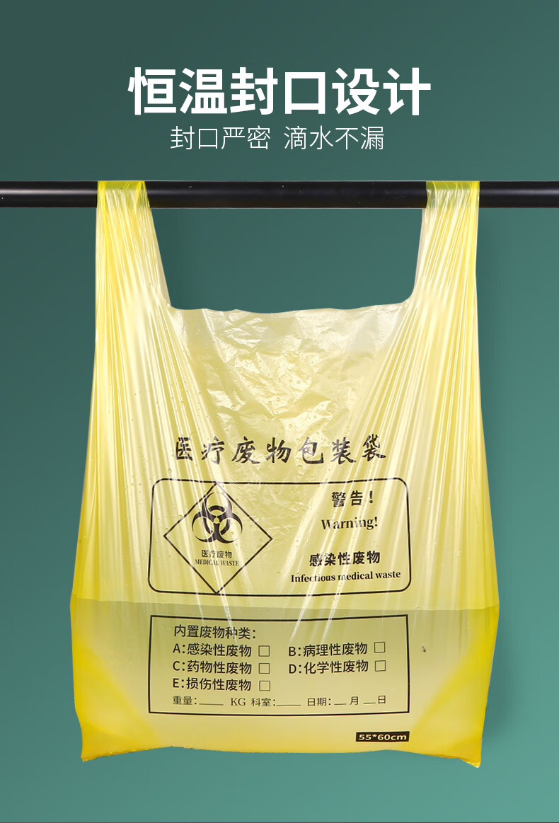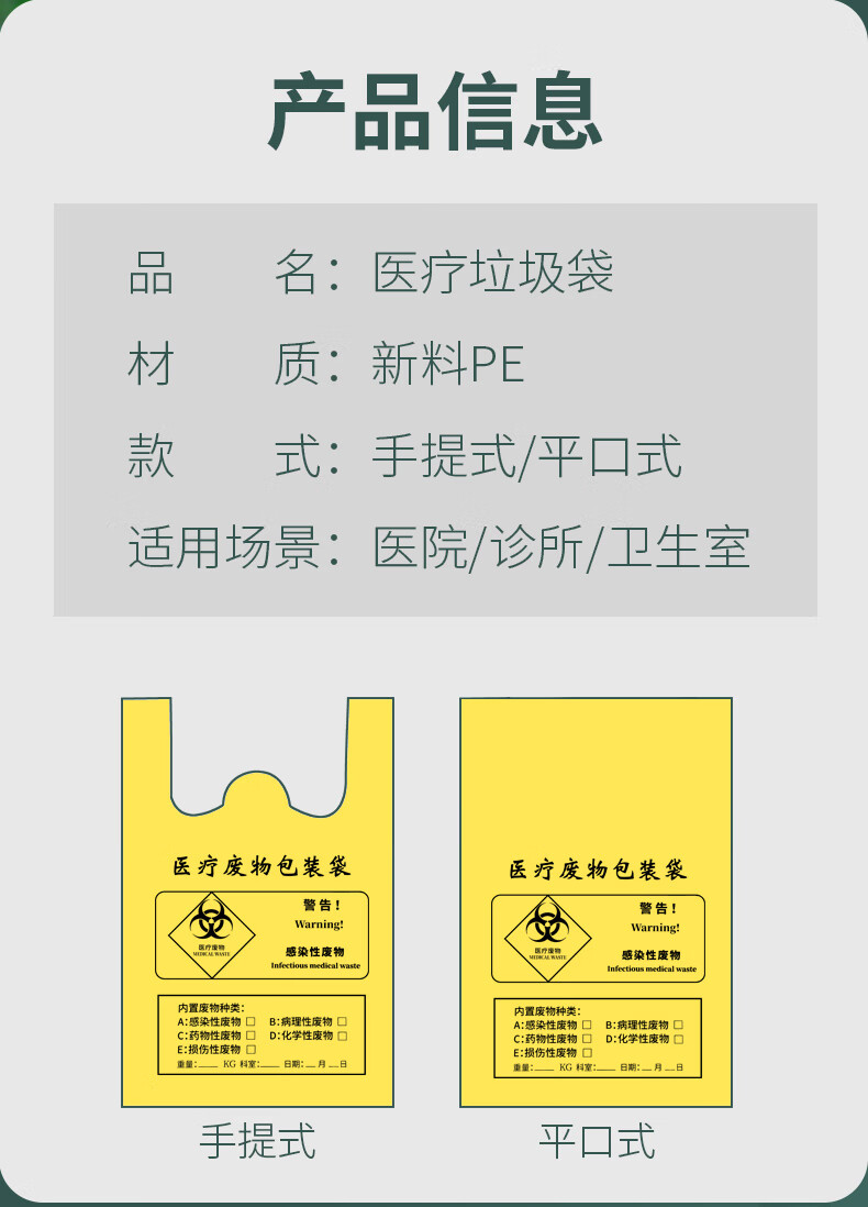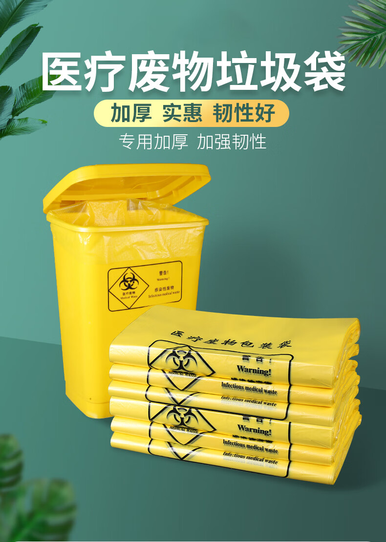 Jingbaodun medical waste bag yellow clinic large size waste medical waste bag thickened portable waste medical waste bag portable 32*38-5L bucket 100 pieces