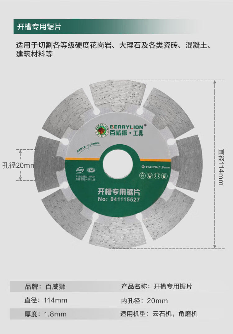BERRYLION diamond saw blade angle grinder cutting piece concrete stone marble saw blade special saw blade for wall grooving