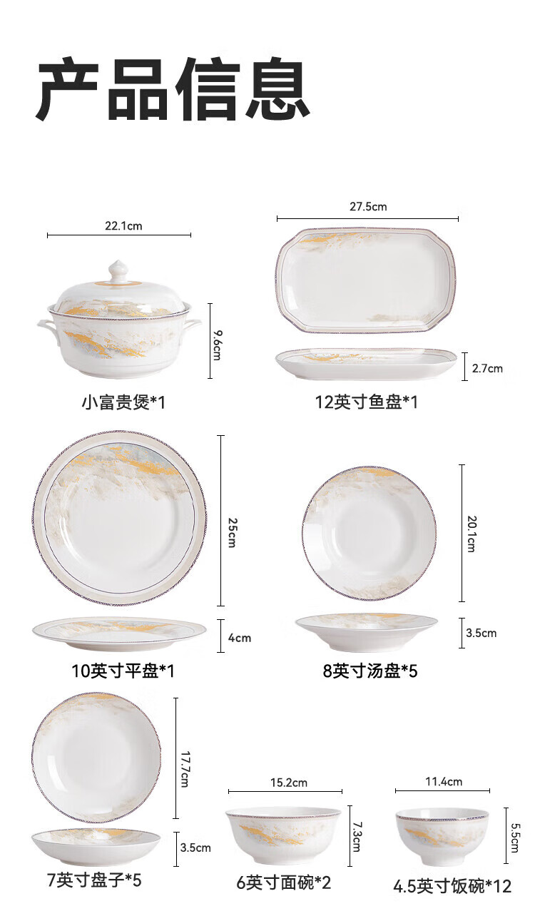 Made in Tokyo, a complete set of dishes and tableware, a set of dishes and dishes for household housewarming, in a ceramic gift box, Jiangshan Ruhua 88 heads