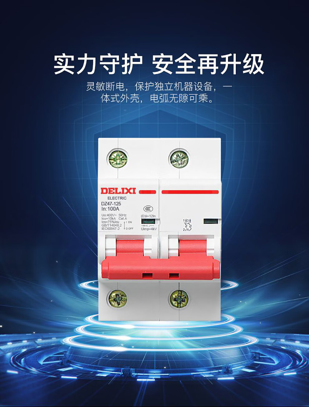 Delixi Electric DZ47-125 high current circuit breaker DZ471253D80 3P 80A D type 10kA 400VAC