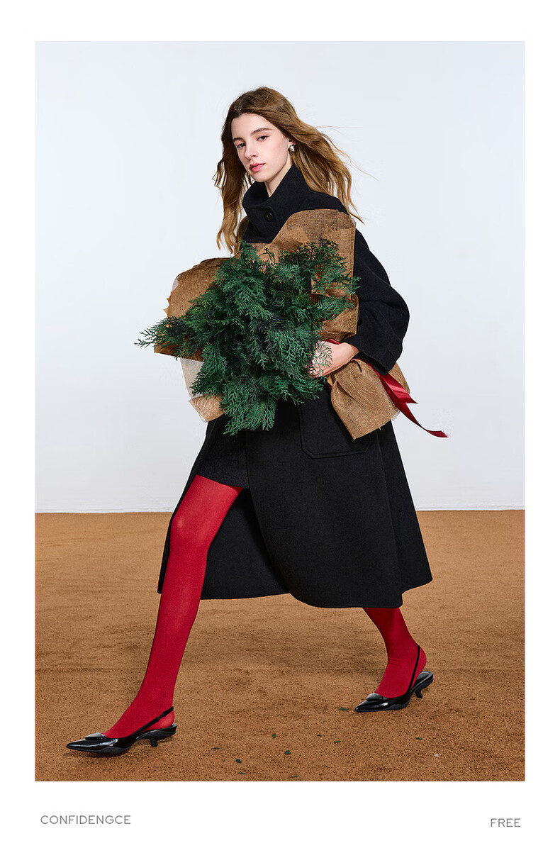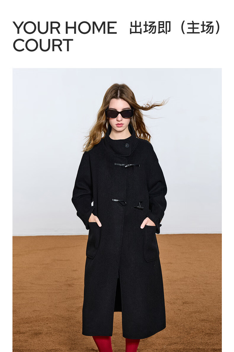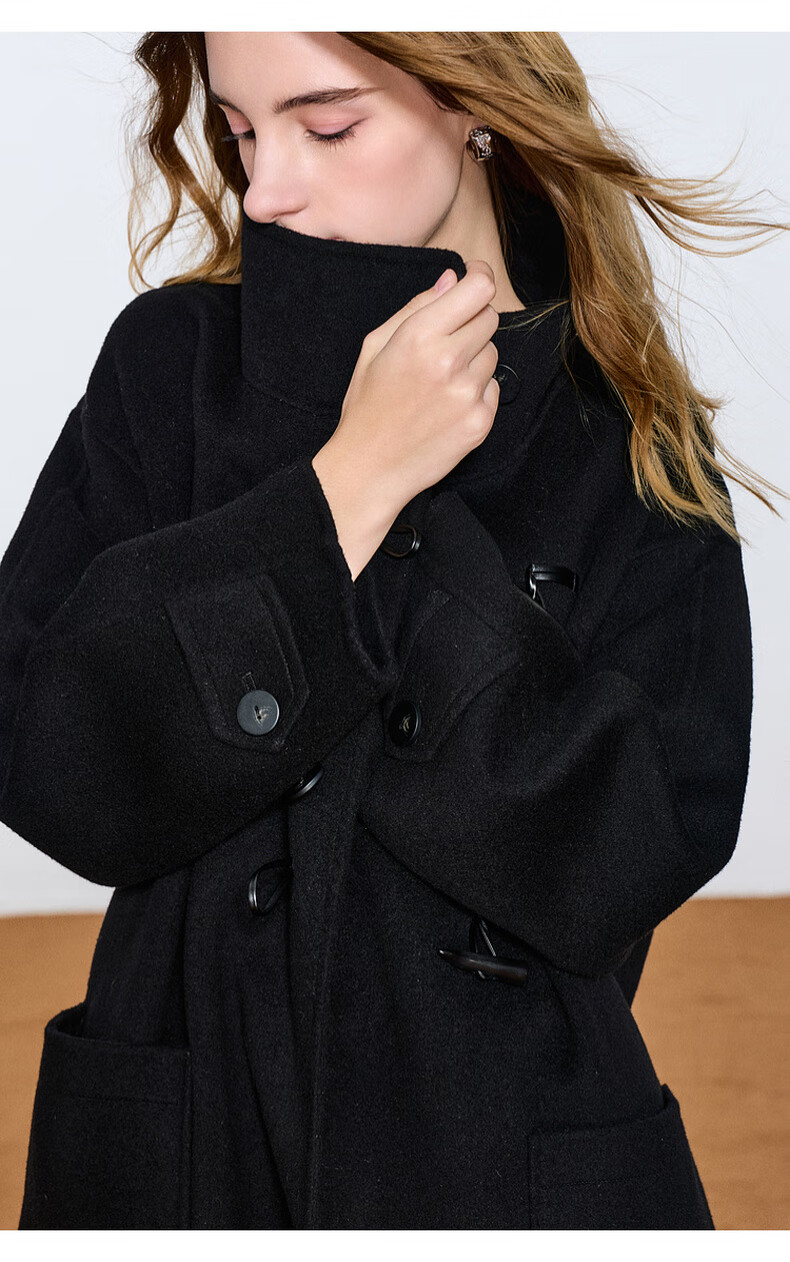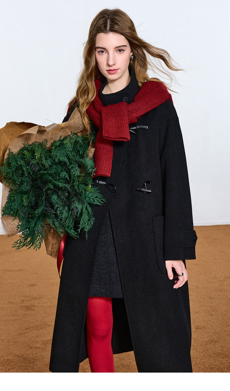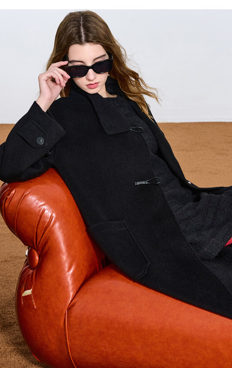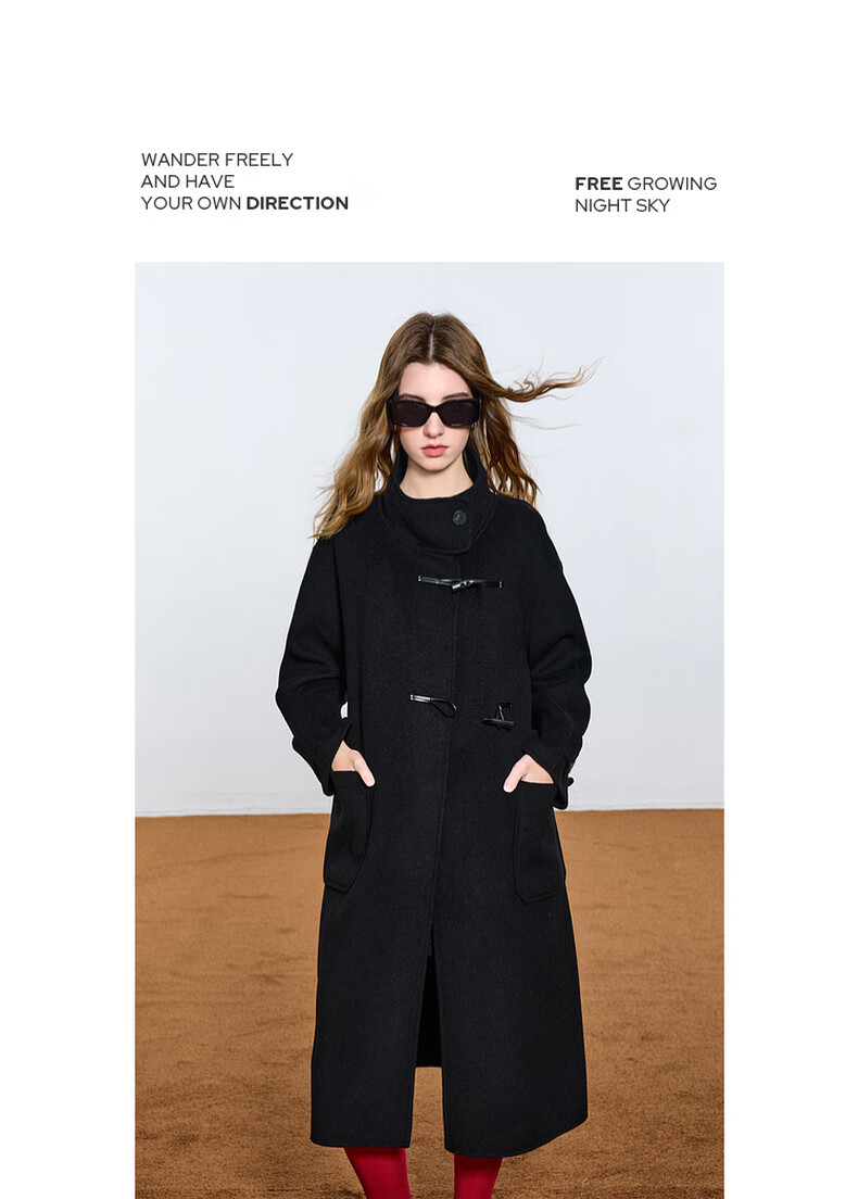 Sancai 2025 winter new style double-sided woolen coat long horn button for women
