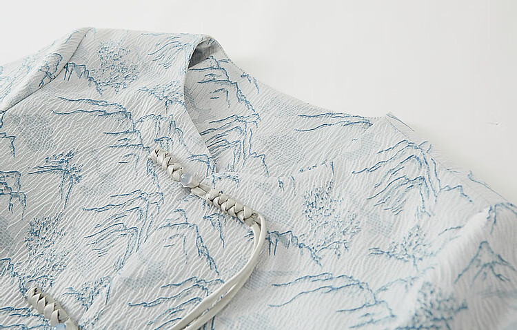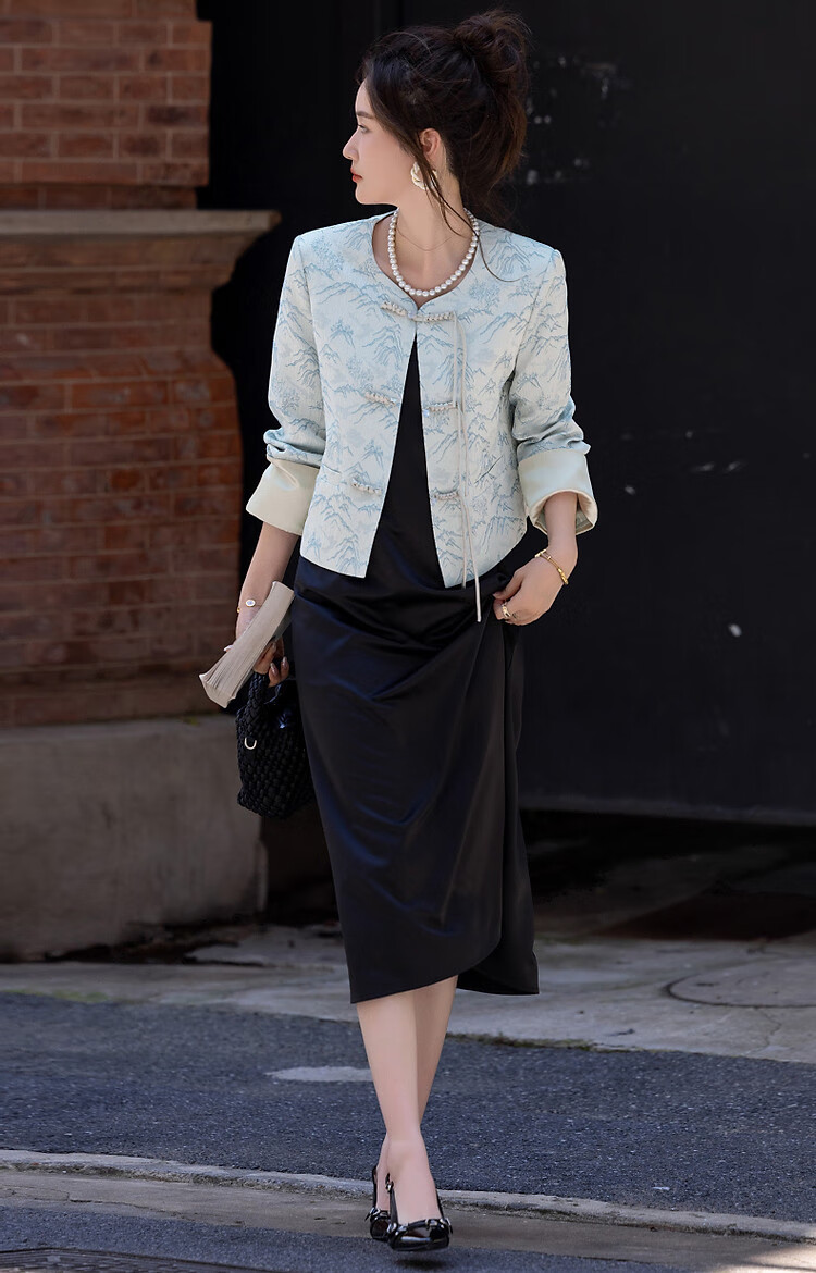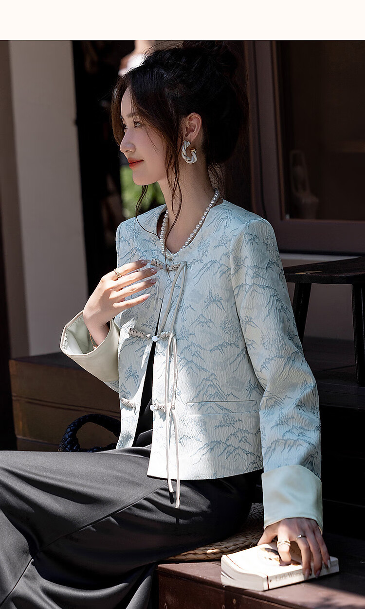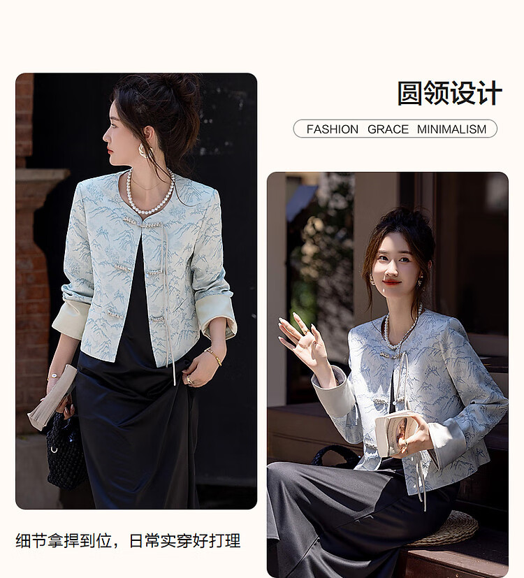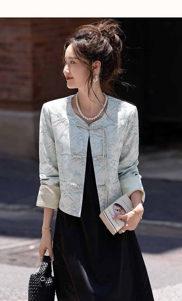 De Mana (dme) Cool White Tea Spring and Autumn Chinese Style New Chinese Style Round Neck Jacquard Double Placket Tassel Button Hidden Meat Jacket Women's Short Style