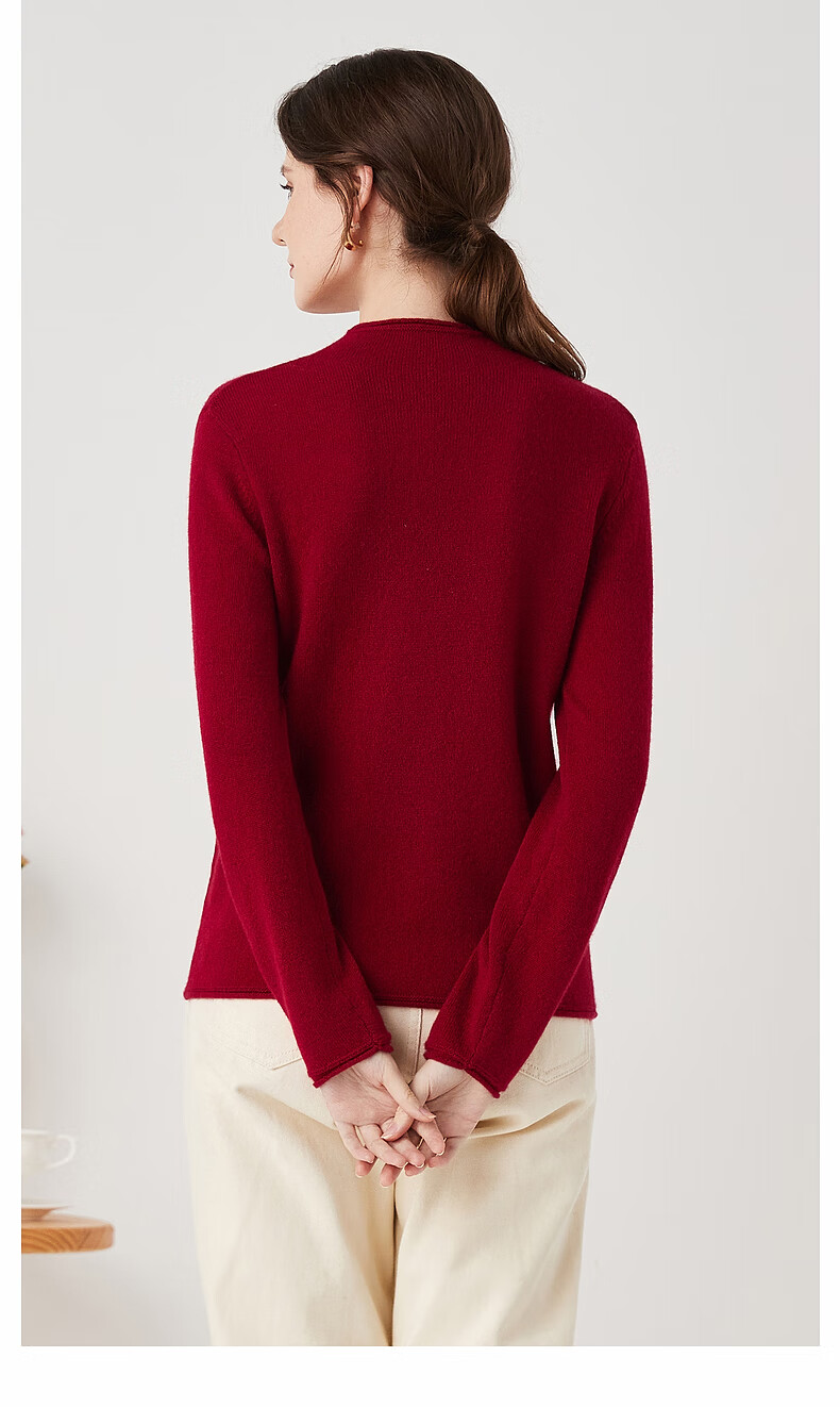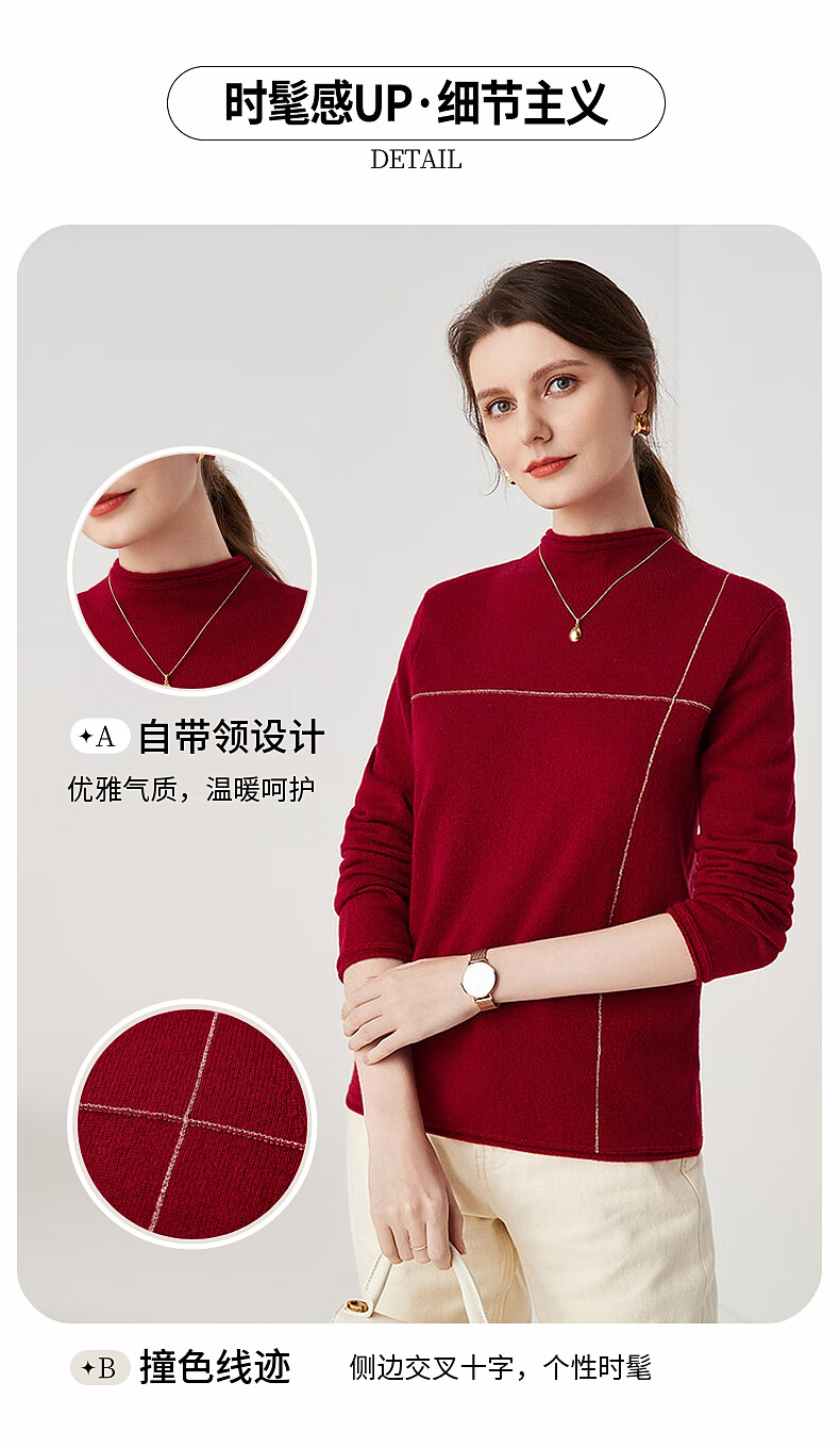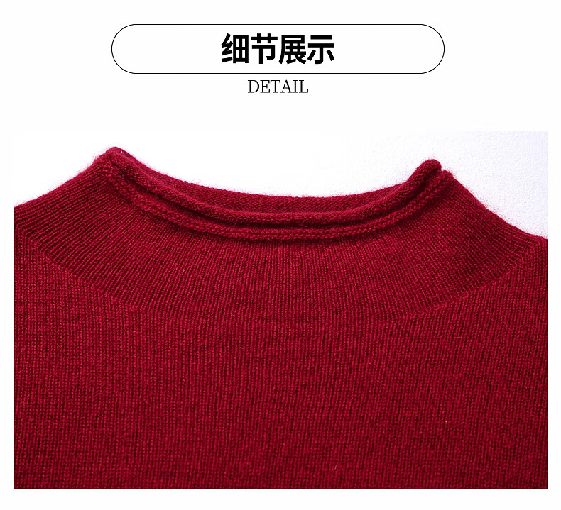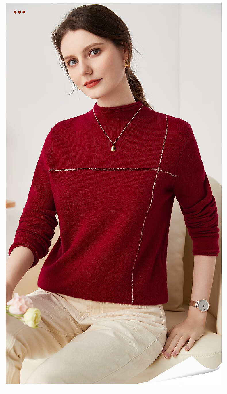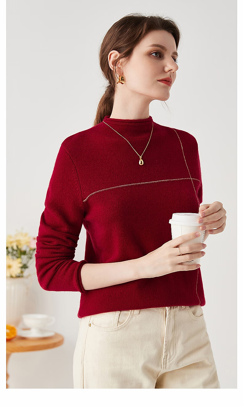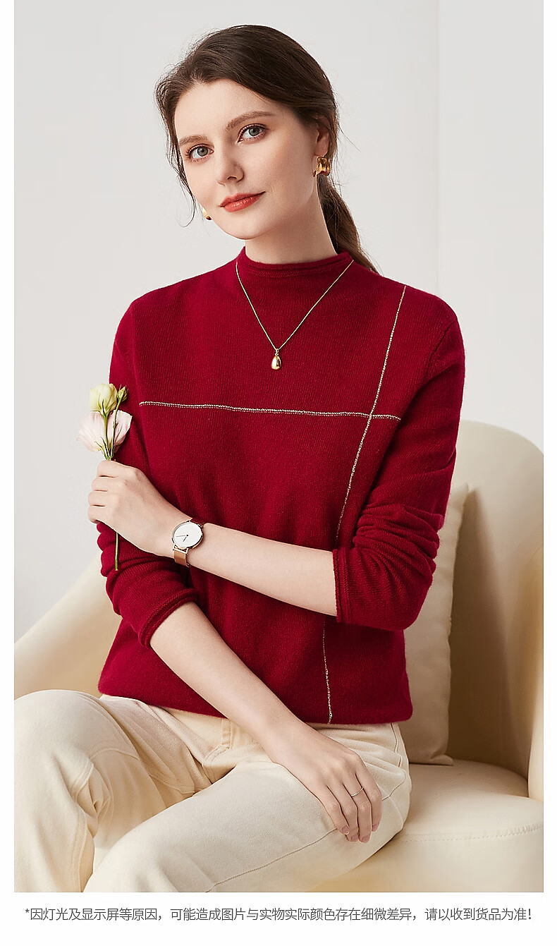 Zhaojun Autumn and Winter Versatile Half Turtleneck Cashmere Sweater Women's Zodiac Year Red Knitted Bottoming Sweater Pomegranate Red L