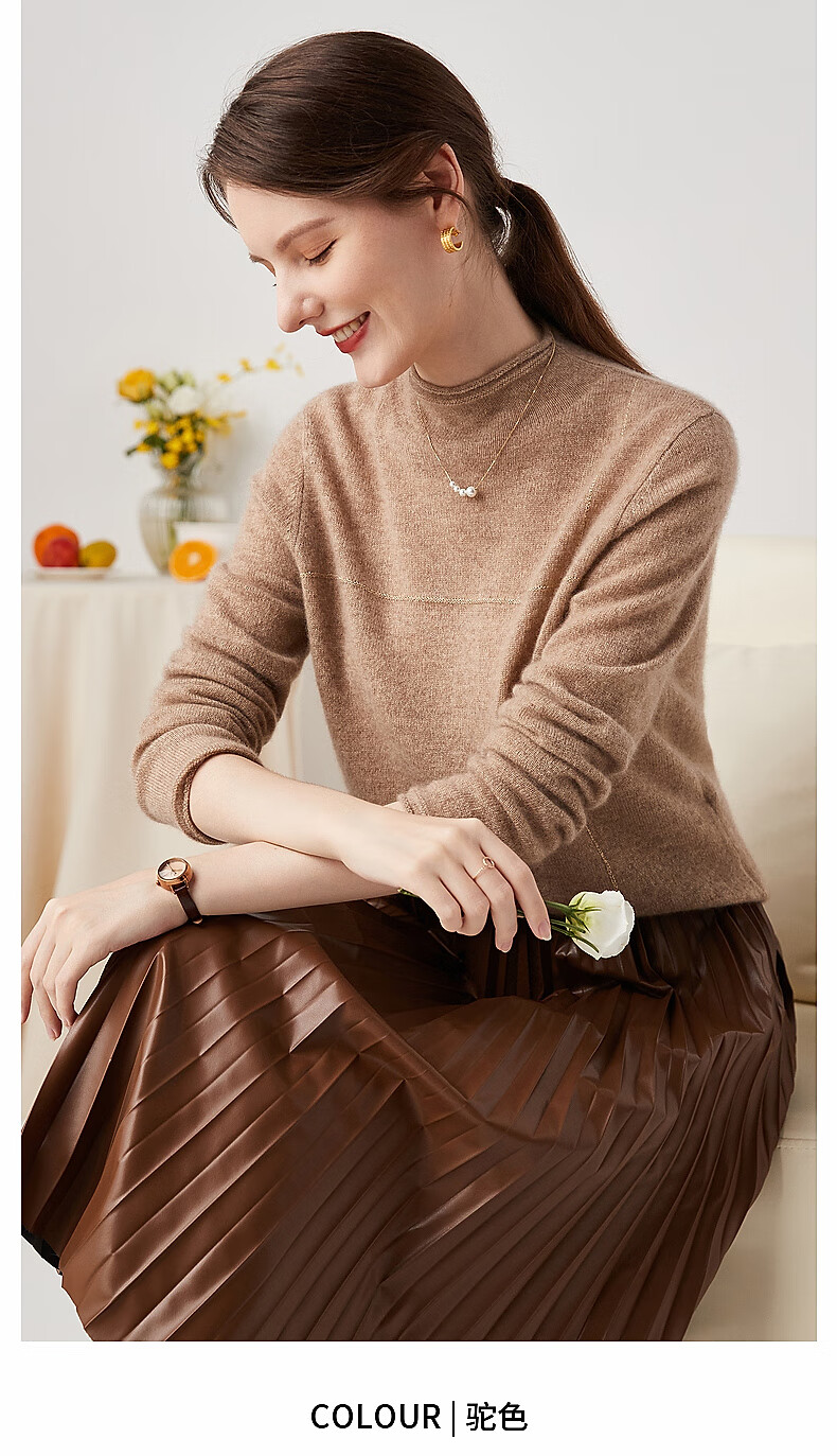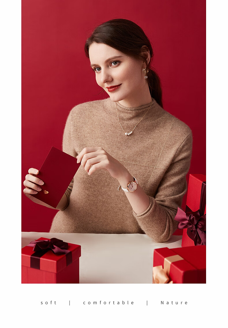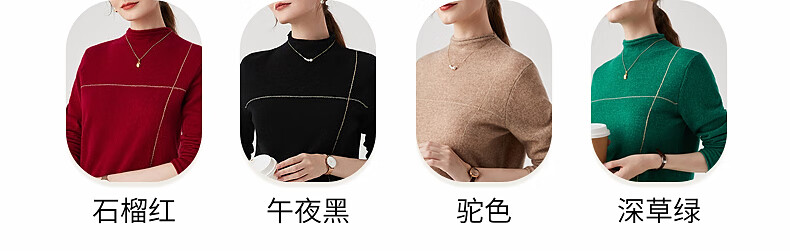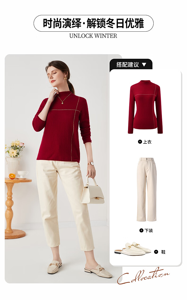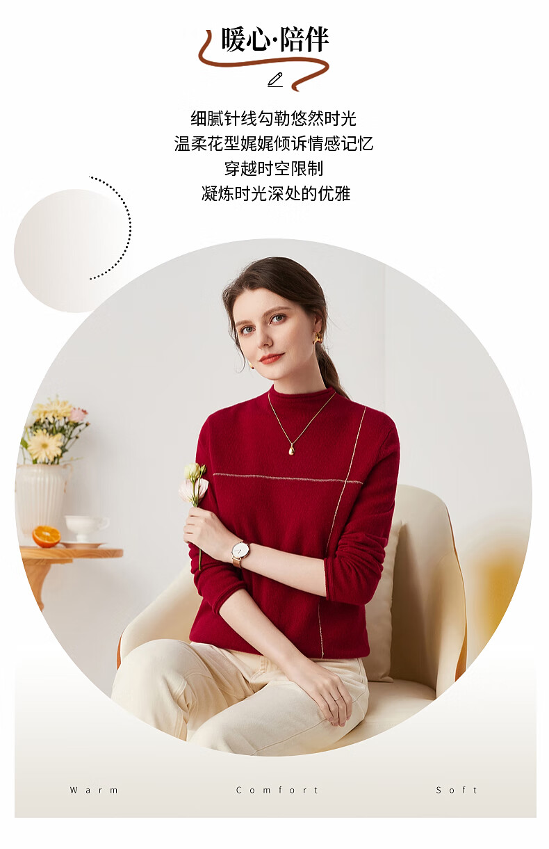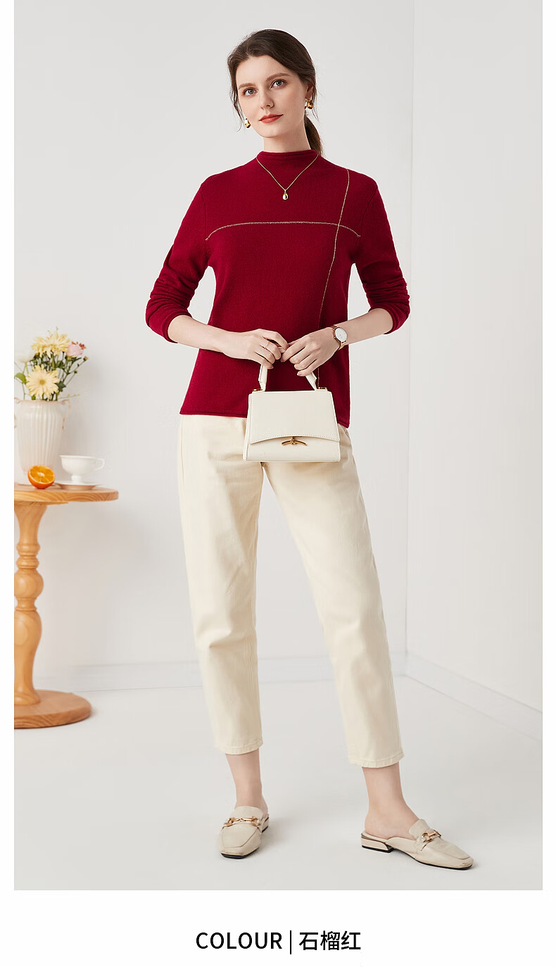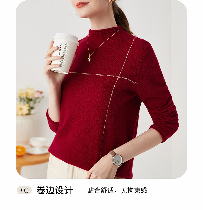 Zhaojun Autumn and Winter Versatile Half Turtleneck Cashmere Sweater Women's Zodiac Year Red Knitted Bottoming Sweater Pomegranate Red L