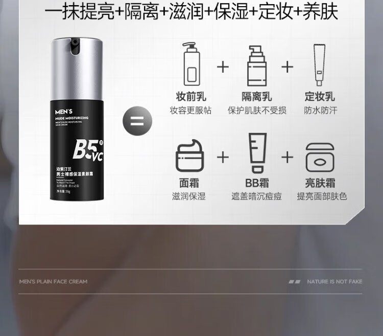Pozitinlan Men's Moisturizing Face Cream Concealer Repairs Acne Marks Naturally Brightening Foundation Isolation BB Cream Hydrating Skin Care Products